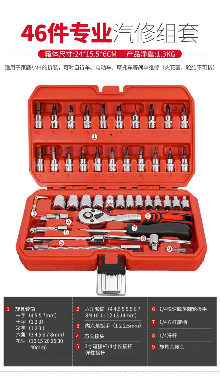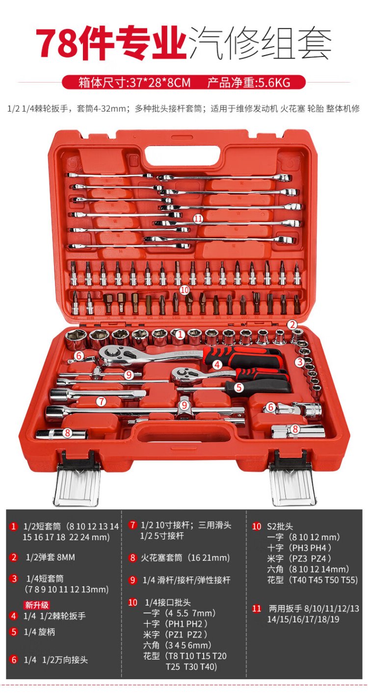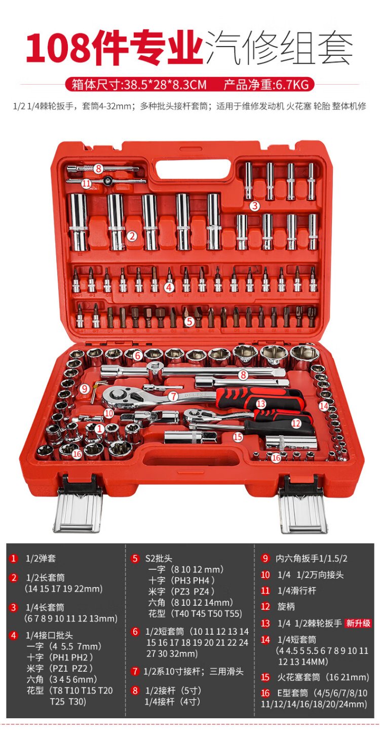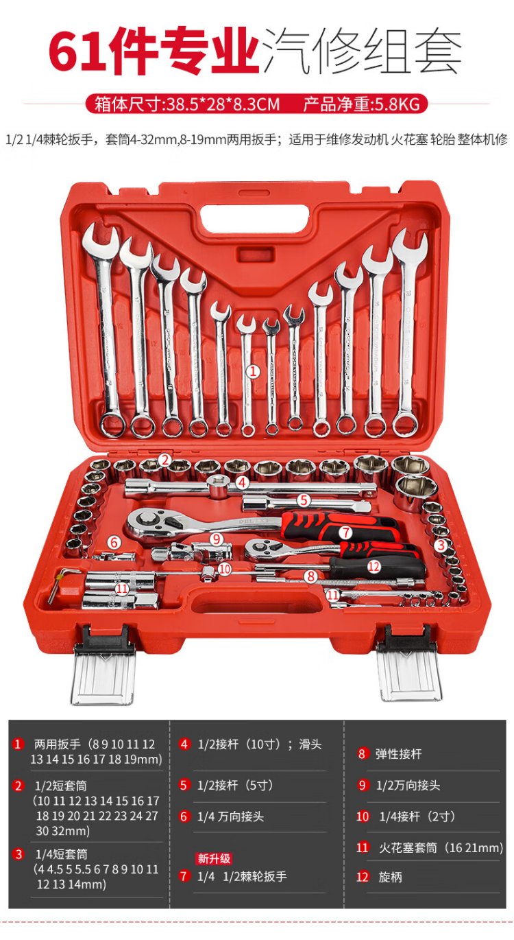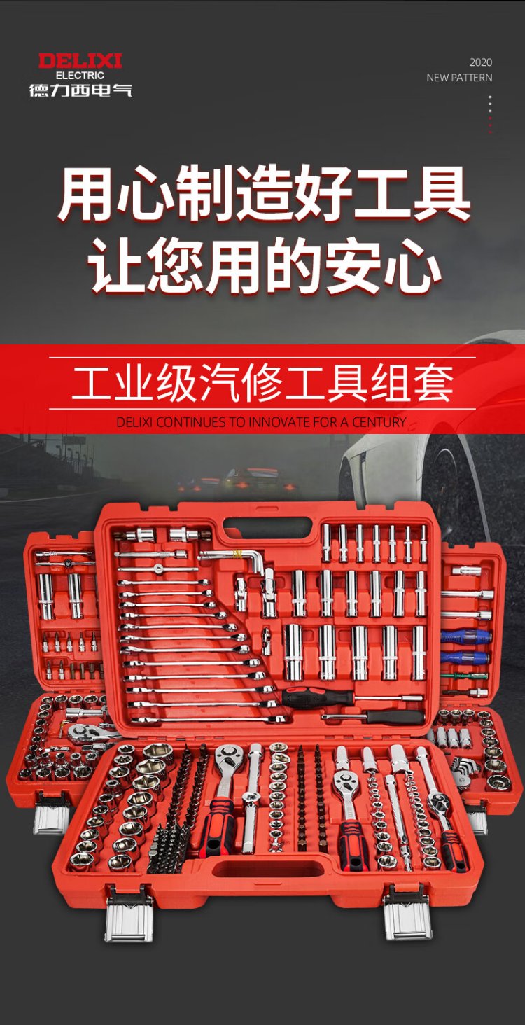 Delixi auto repair tool set socket wrench ratchet car repair combination repair box multi-functional small fly