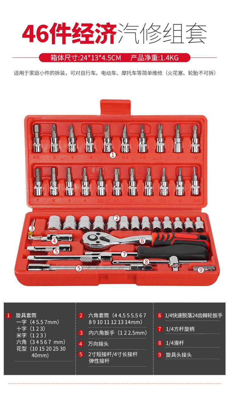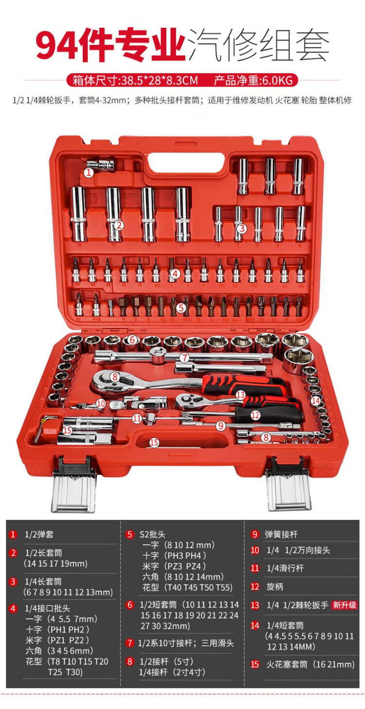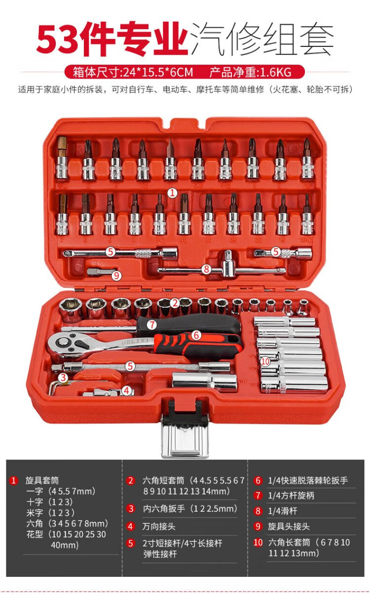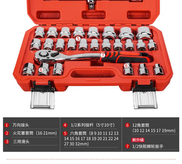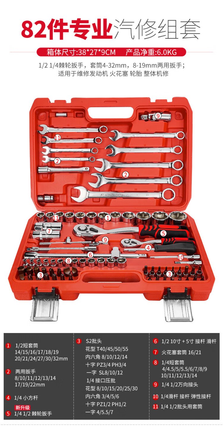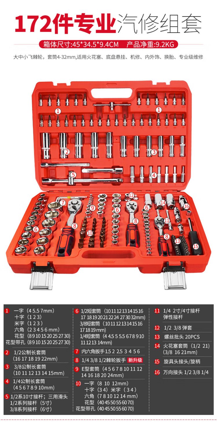 Delixi auto repair tool set socket wrench ratchet car repair combination repair box multi-functional small fly