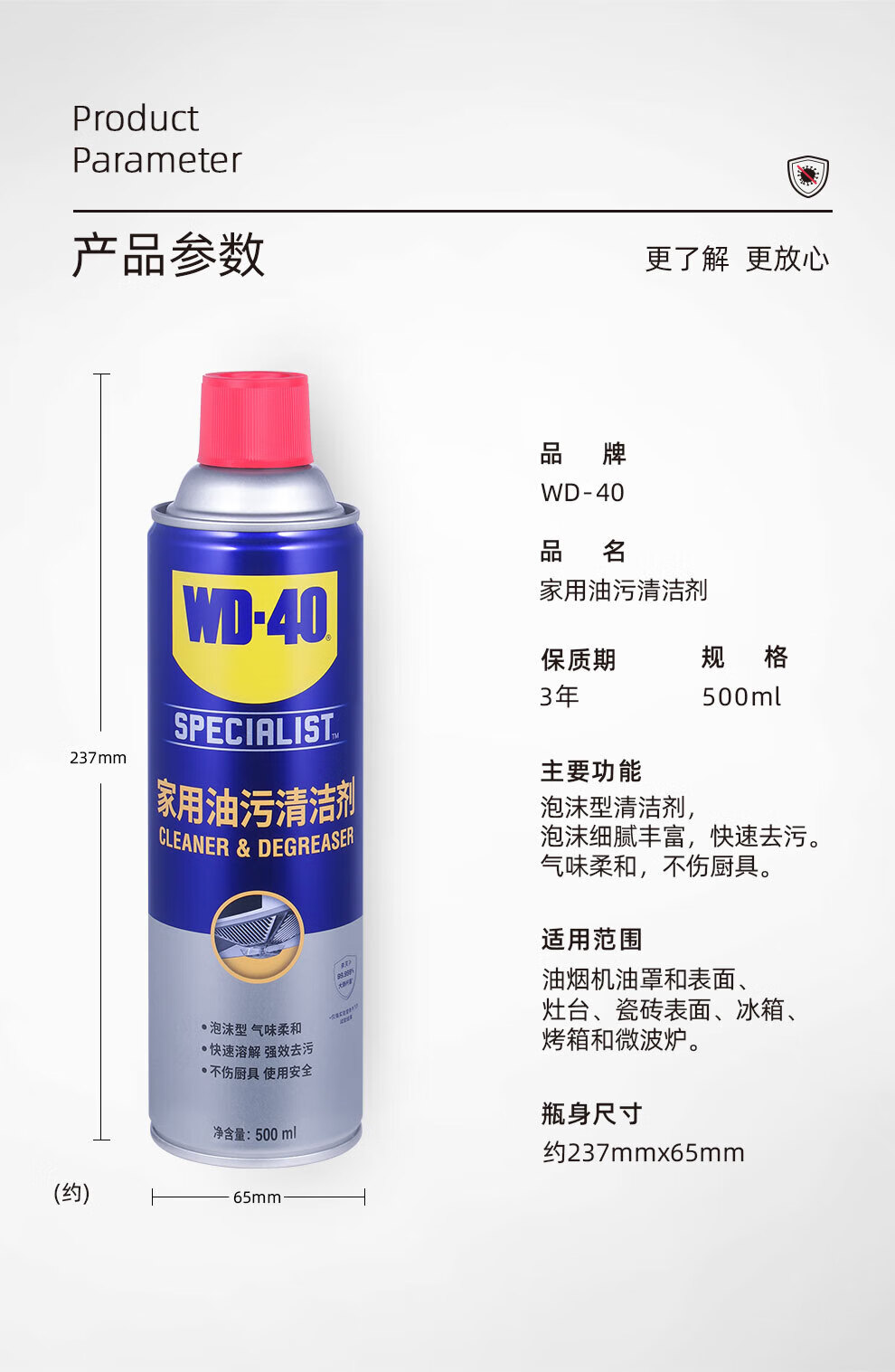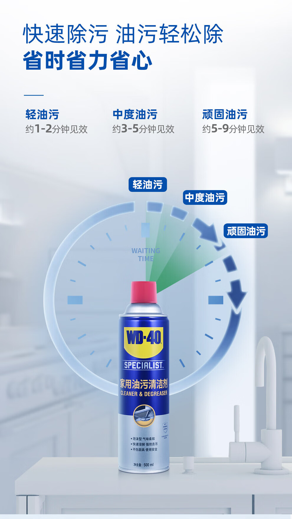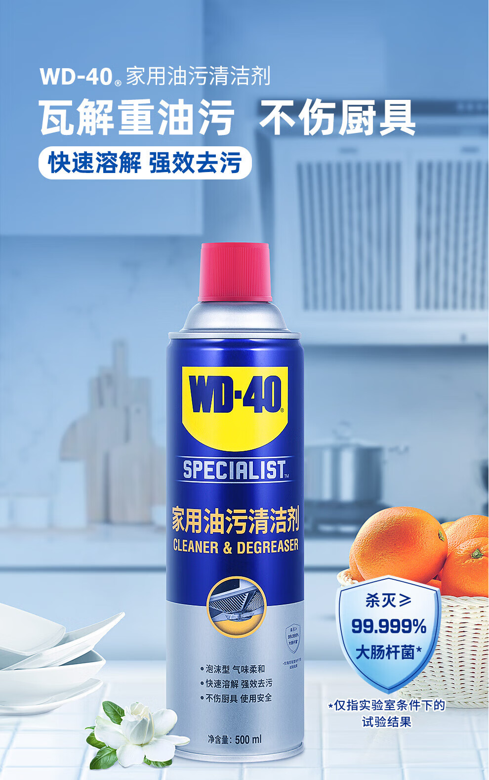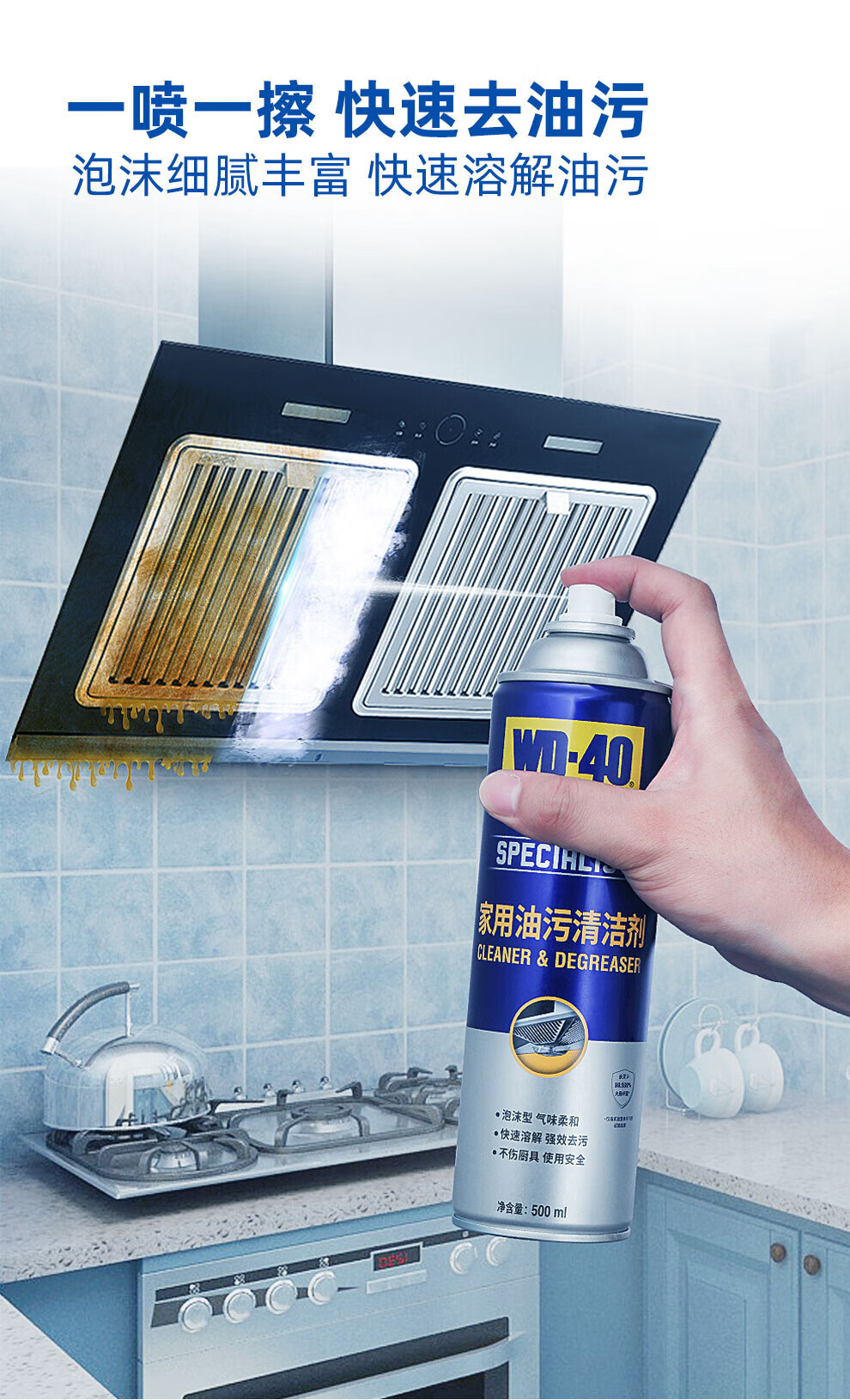 WD-40 Oil Cleaner for Range Hood Ventilation Fan Heavy Oil Cleaning Powerful Decontamination Foam Type Model 880250 500ml 1 Bottle