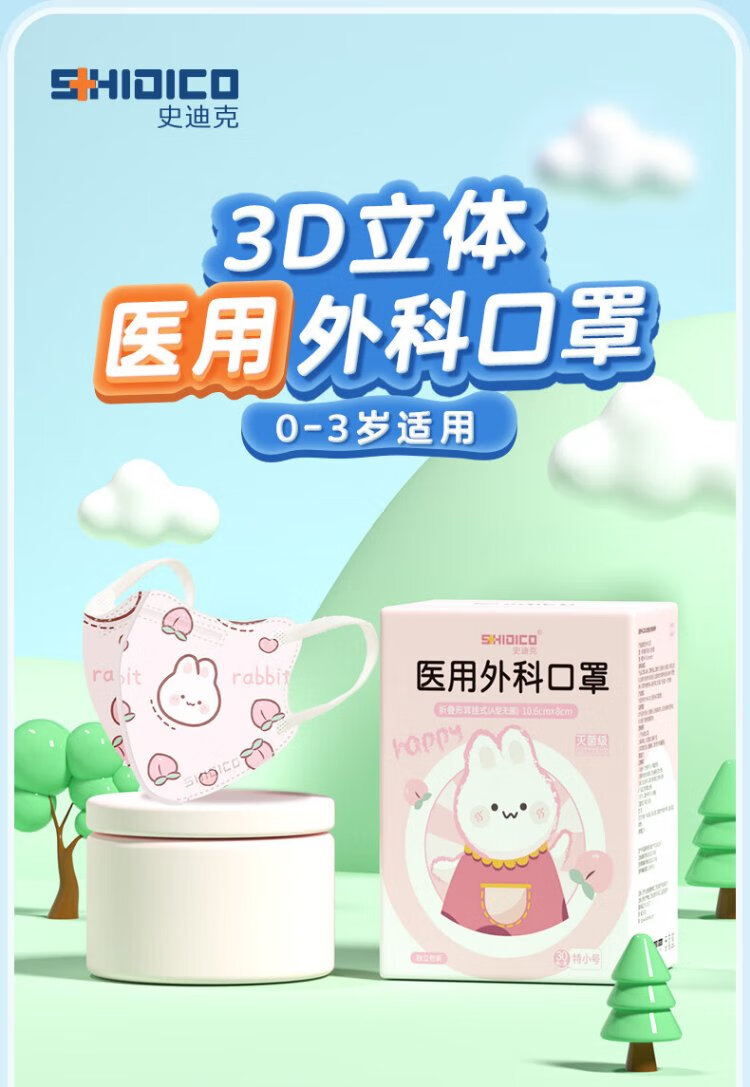 SHIDICO medical surgical masks for children 0-3 years old infants and young children masks 30 pieces, individually packaged sterilization grade 3D three-dimensional