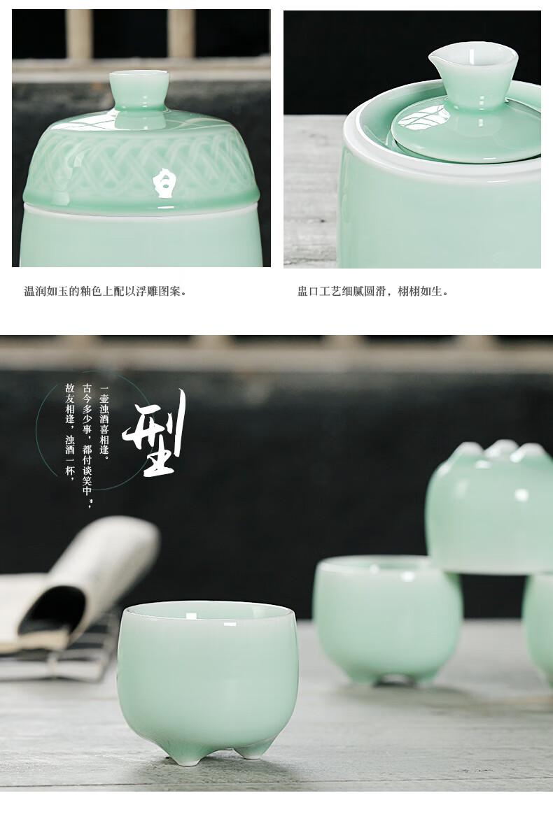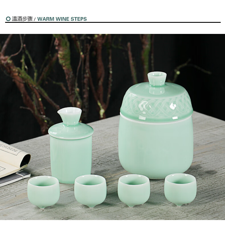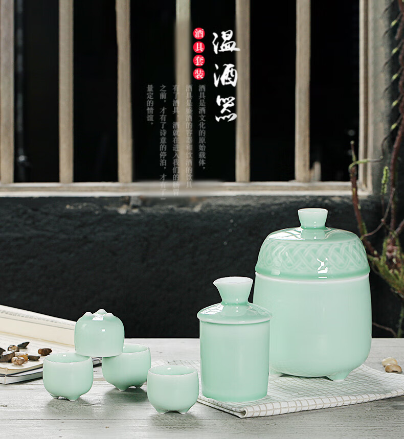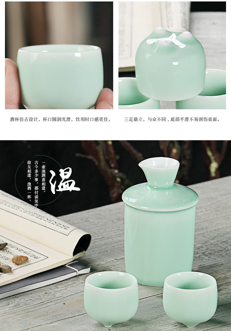 Su's ceramic celadon wine set, wine warmer, white wine cup, three-legged wine warmer, exquisite gift box