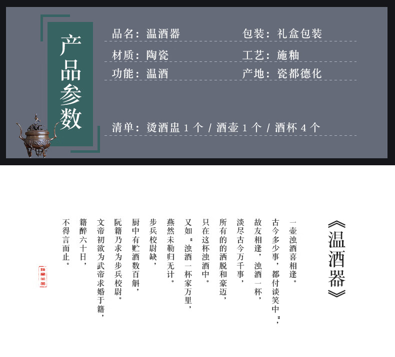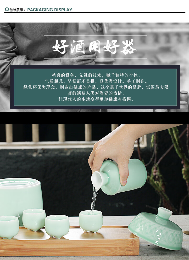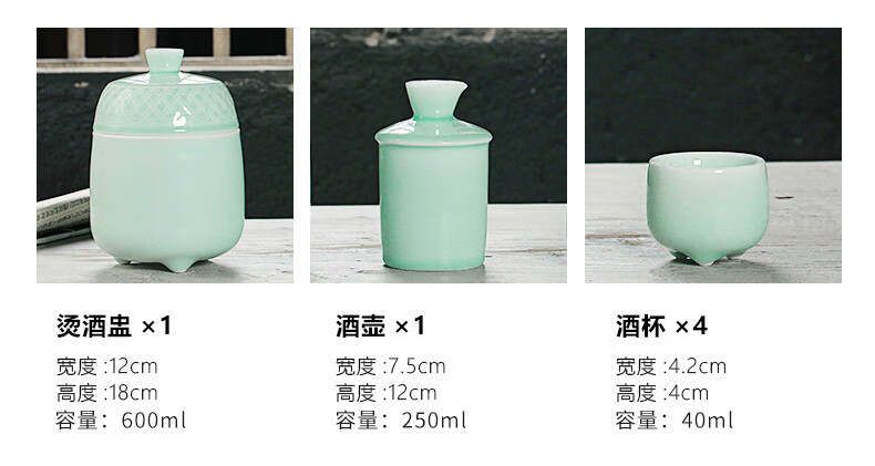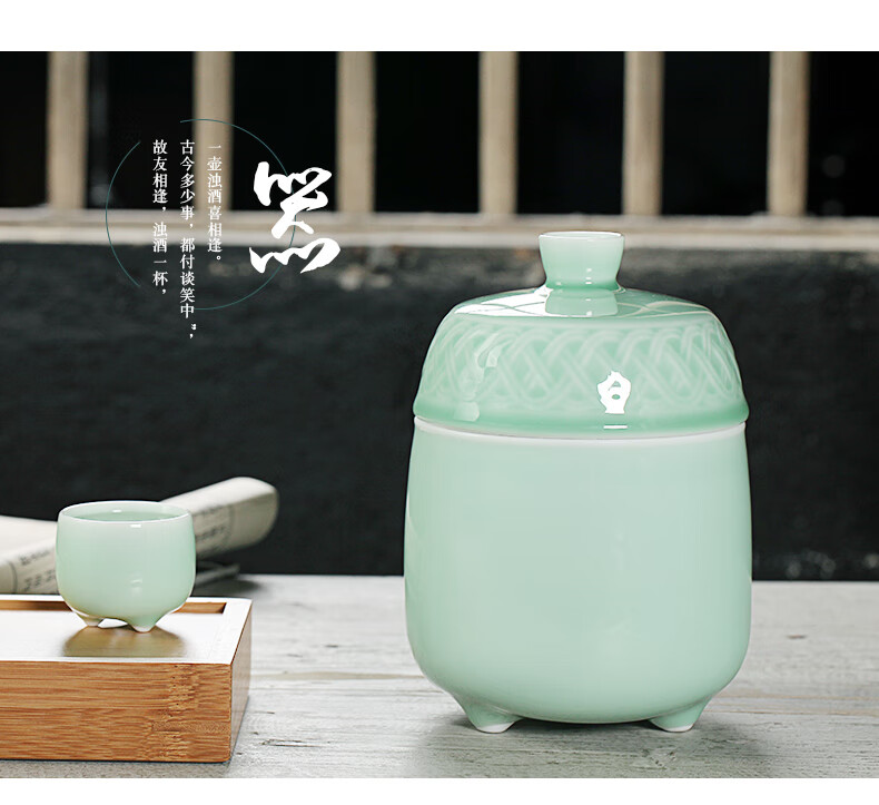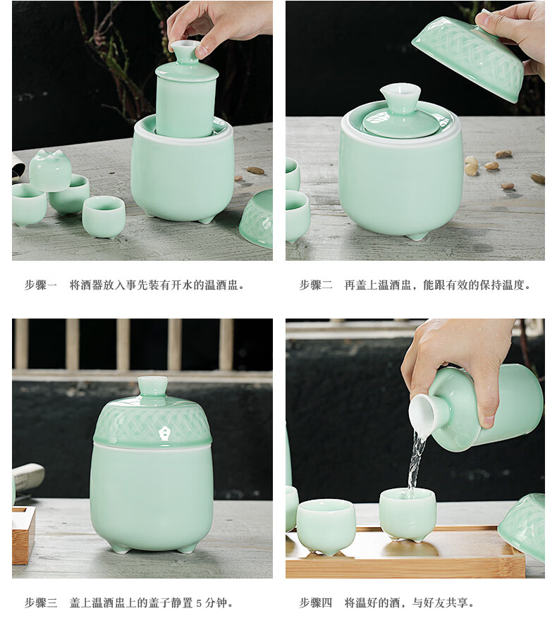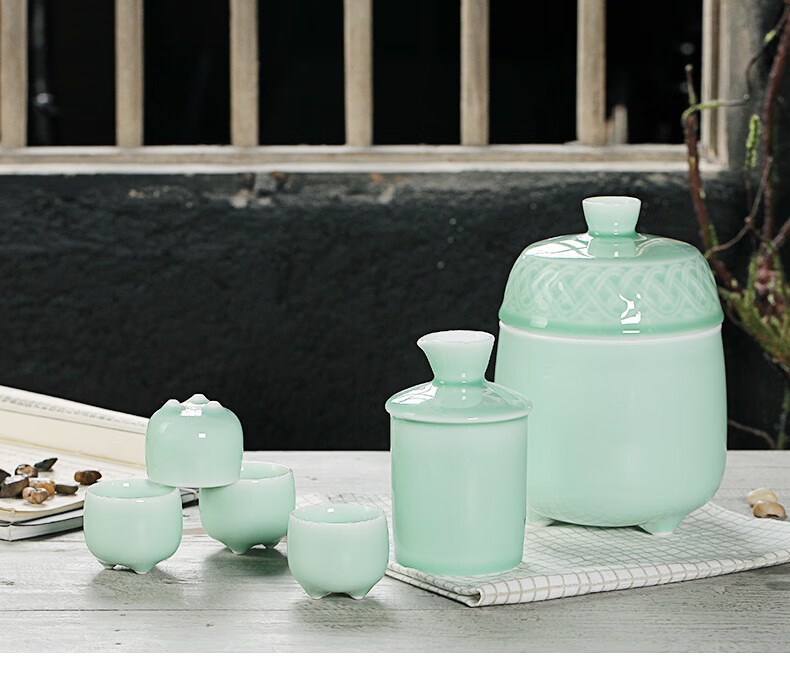 Su's ceramic celadon wine set, wine warmer, white wine cup, three-legged wine warmer, exquisite gift box