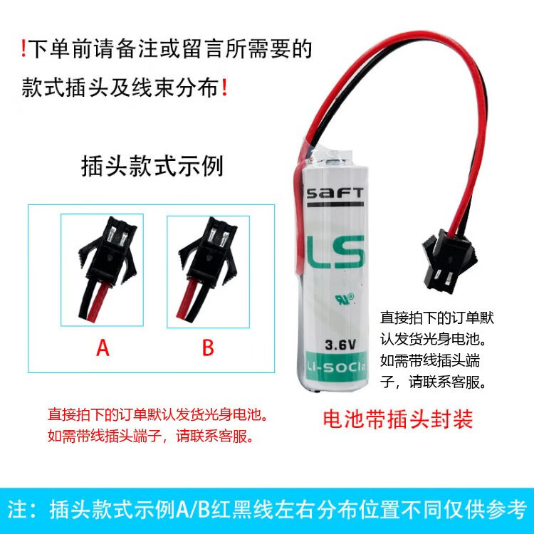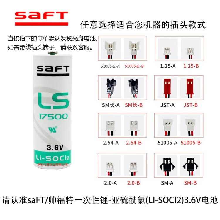 SaFT 3.6V lithium battery LS17500 equipment industrial control PLC lithium battery A-type battery supports processing of wire plug terminals according to customer needs