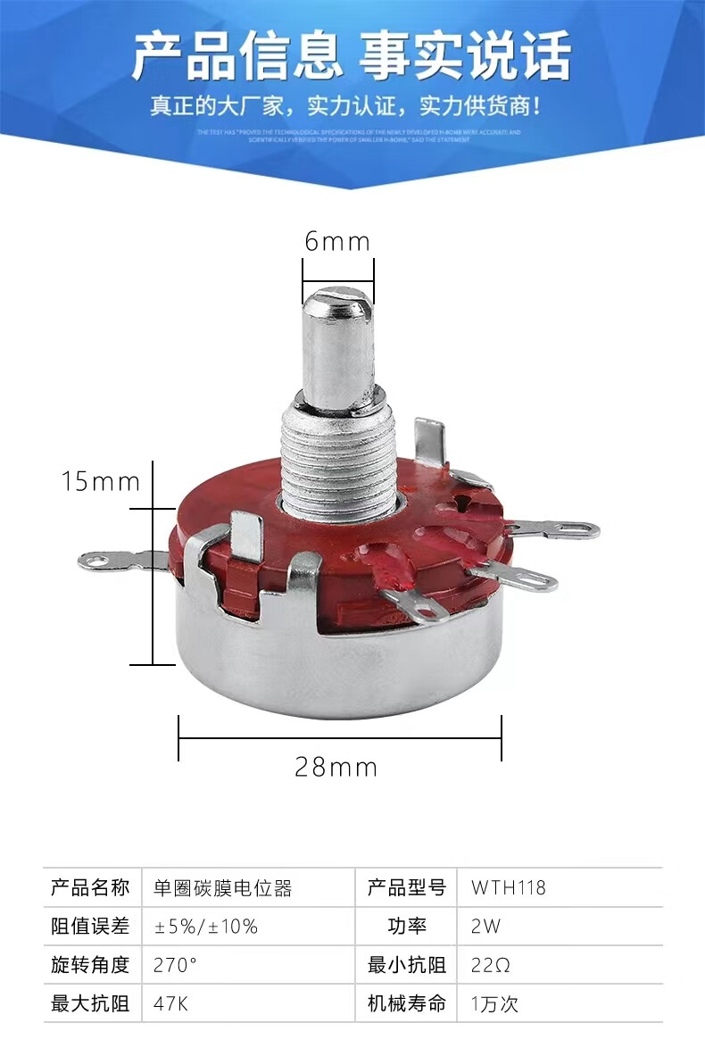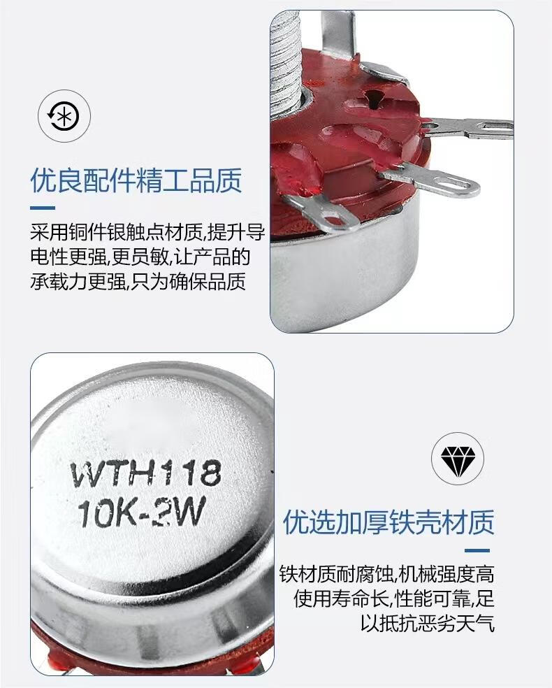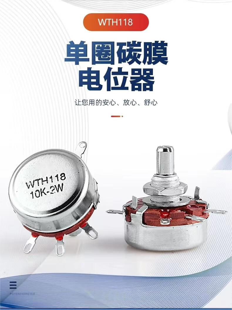 Noran precision single-turn carbon film potentiometer WTH118-1A 2W 2.2K