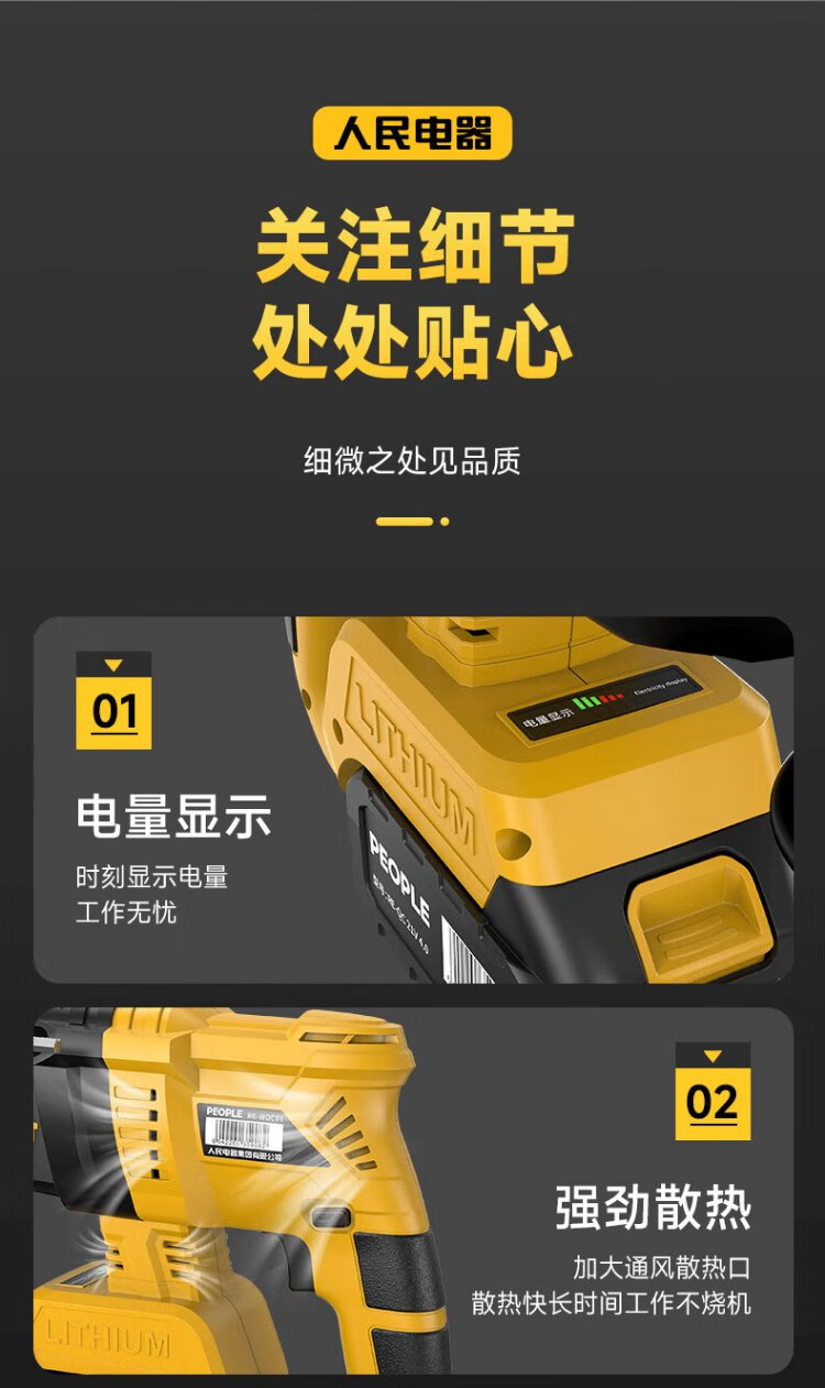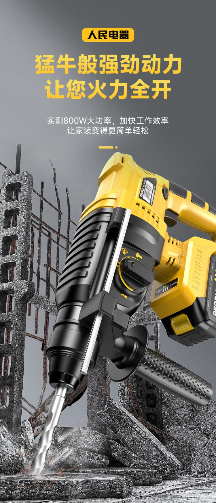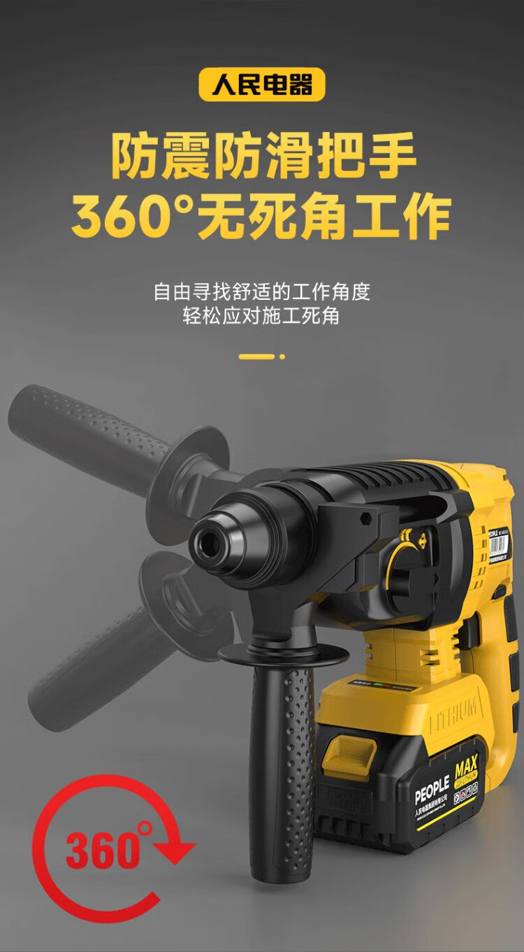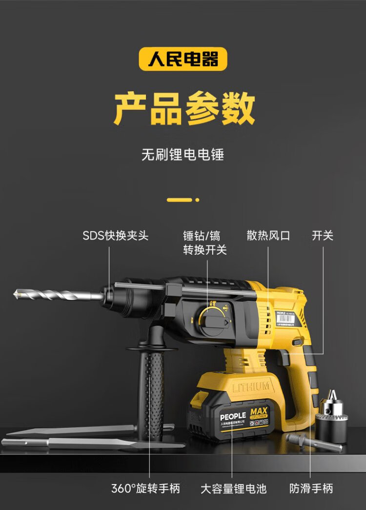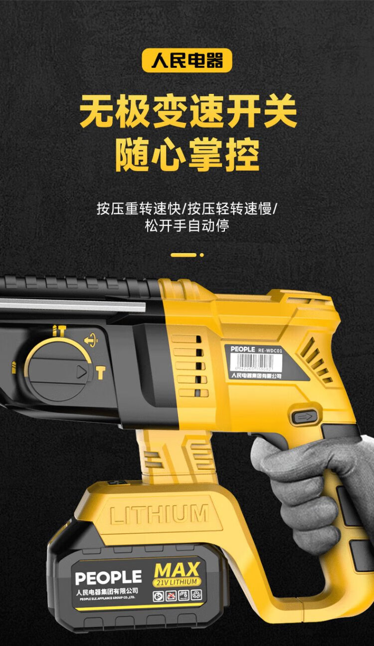People's 21V industrial grade lithium battery brushless electric hammer rechargeable three-purpose electric pick drill multi-function impact drill concrete