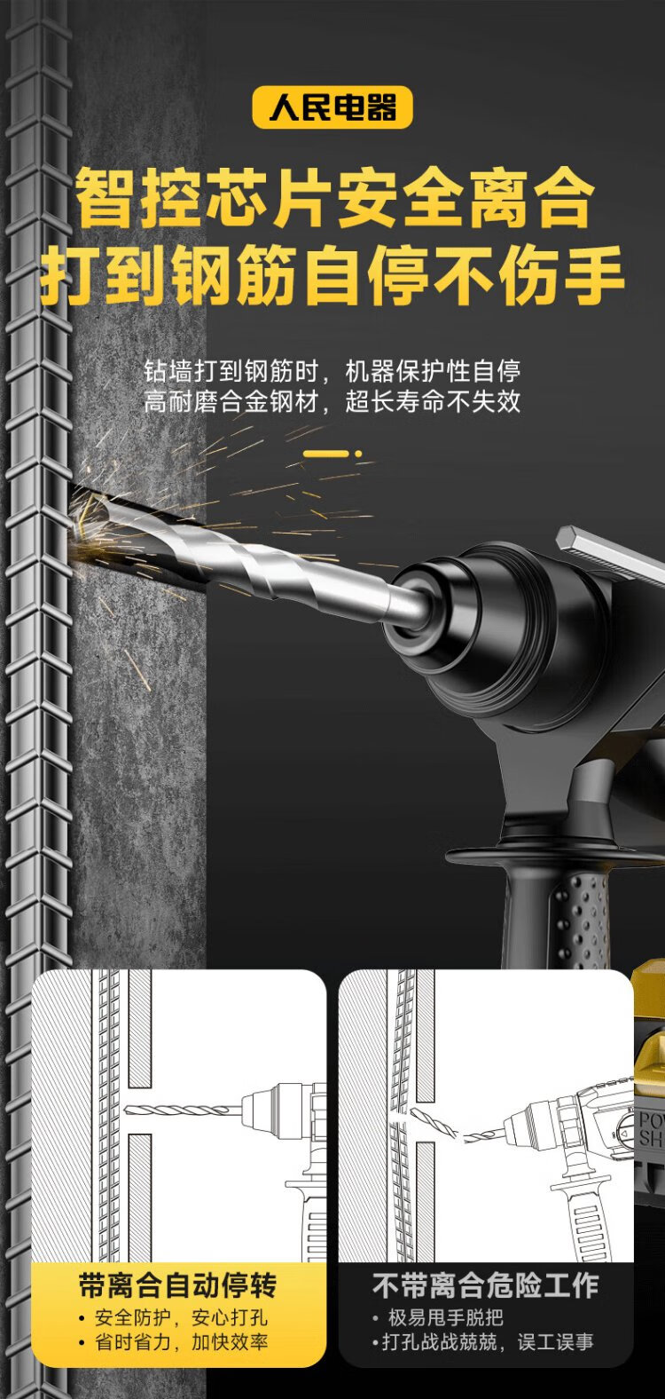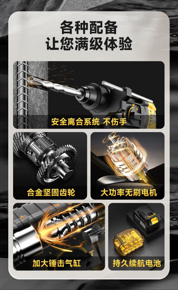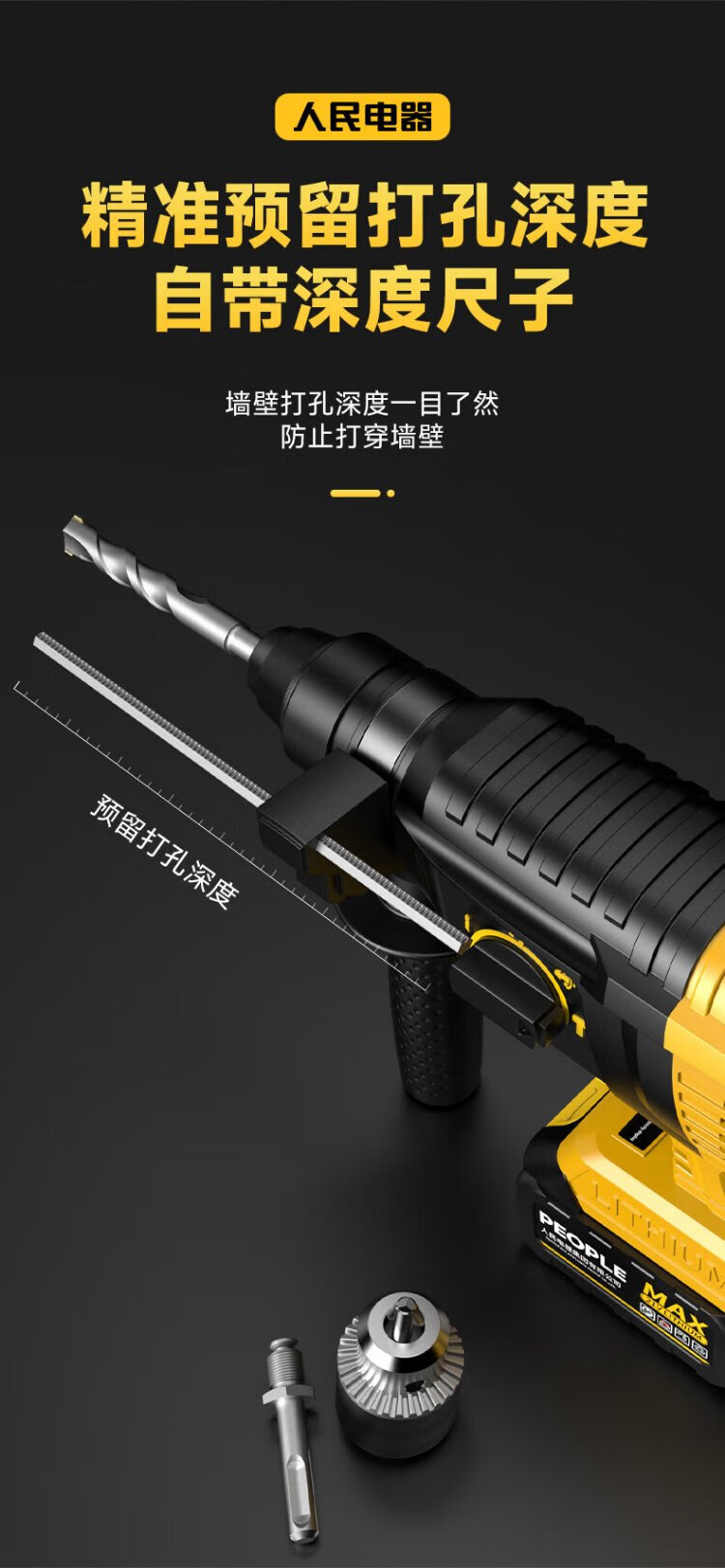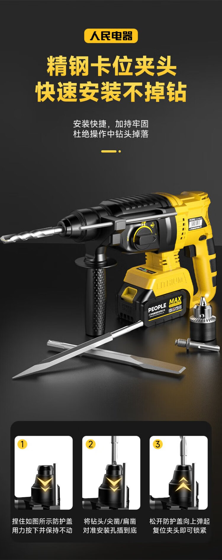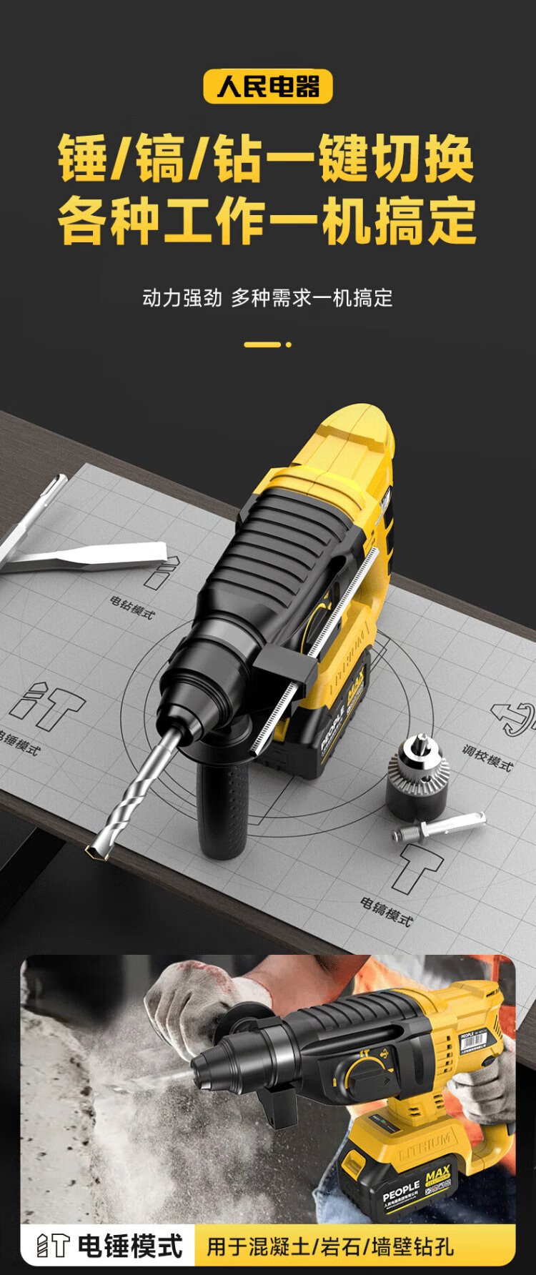 People's 21V industrial grade lithium battery brushless electric hammer rechargeable three-purpose electric pick drill multi-function impact drill concrete