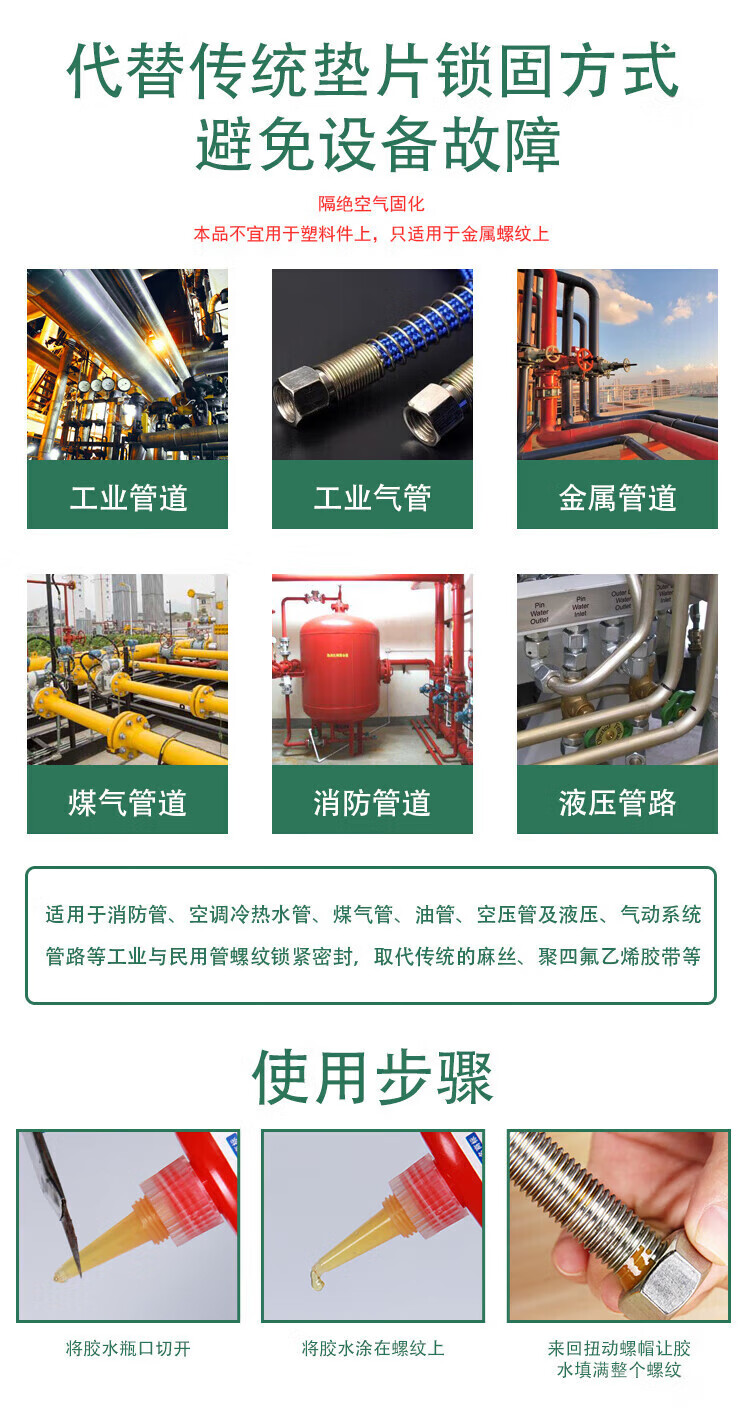 Kafter Liquid Raw Material Tape Anaerobic Adhesive Metal Pipe Repair Screw Thread Fastener Light Yellow 50g/Bottle