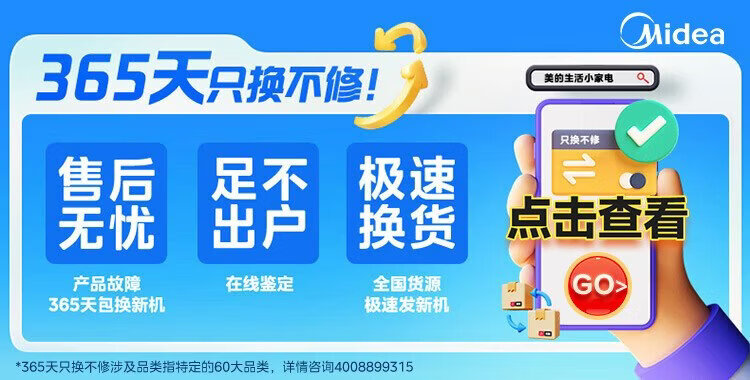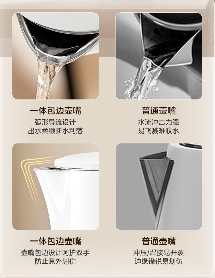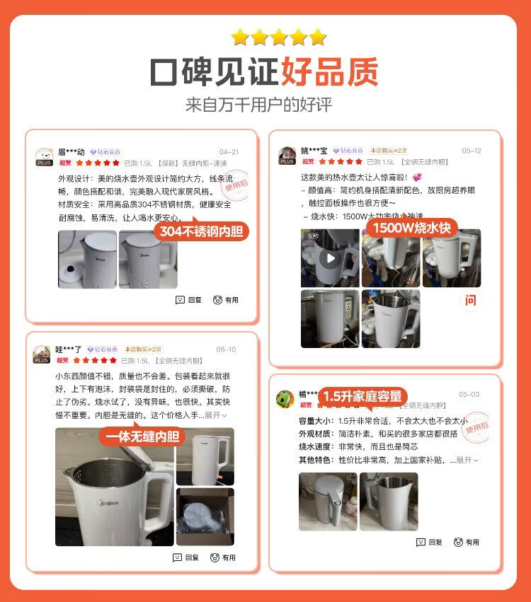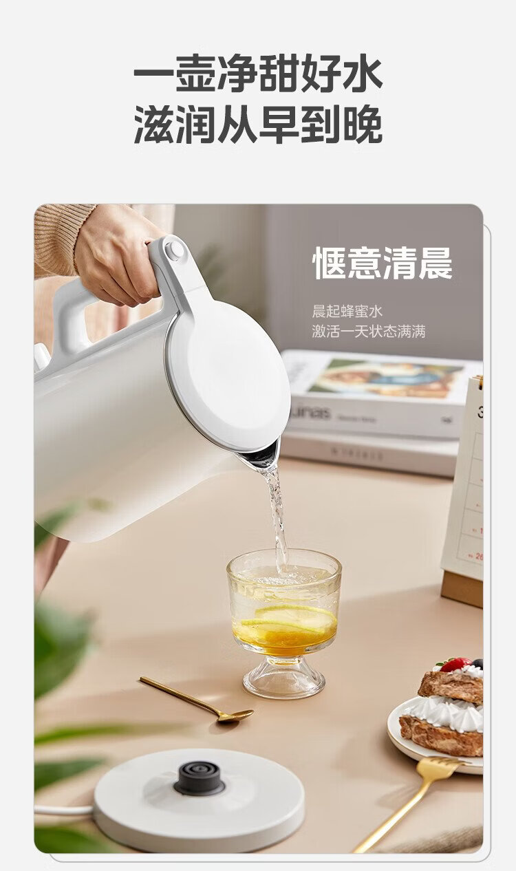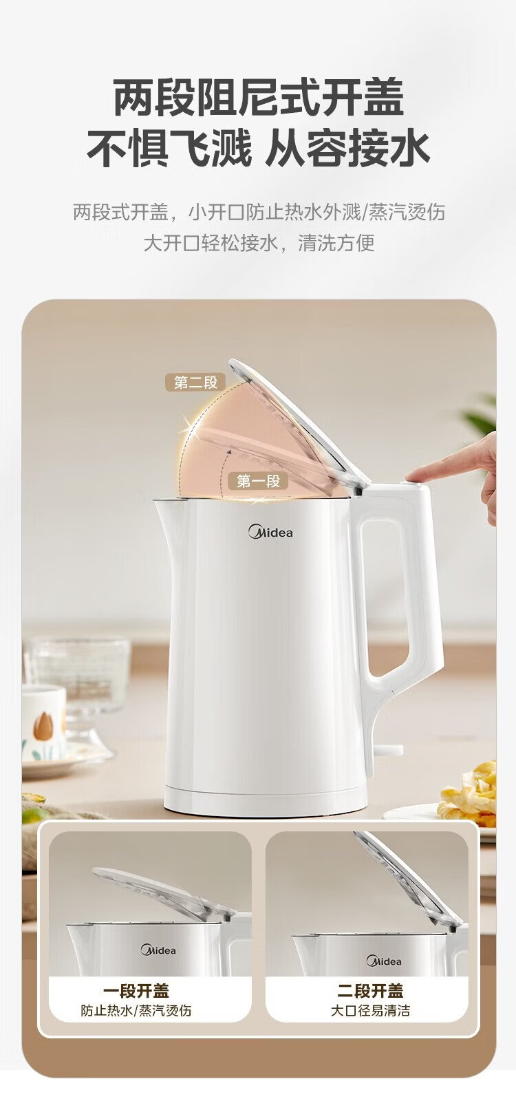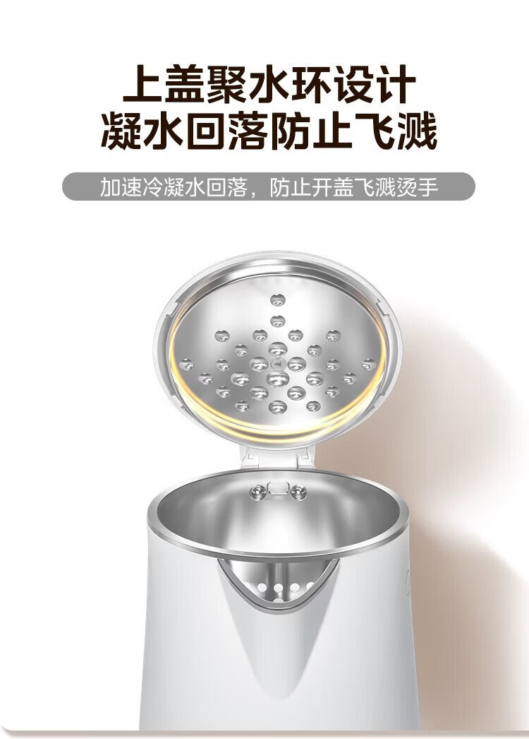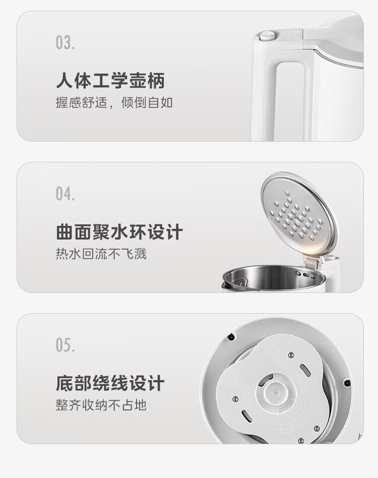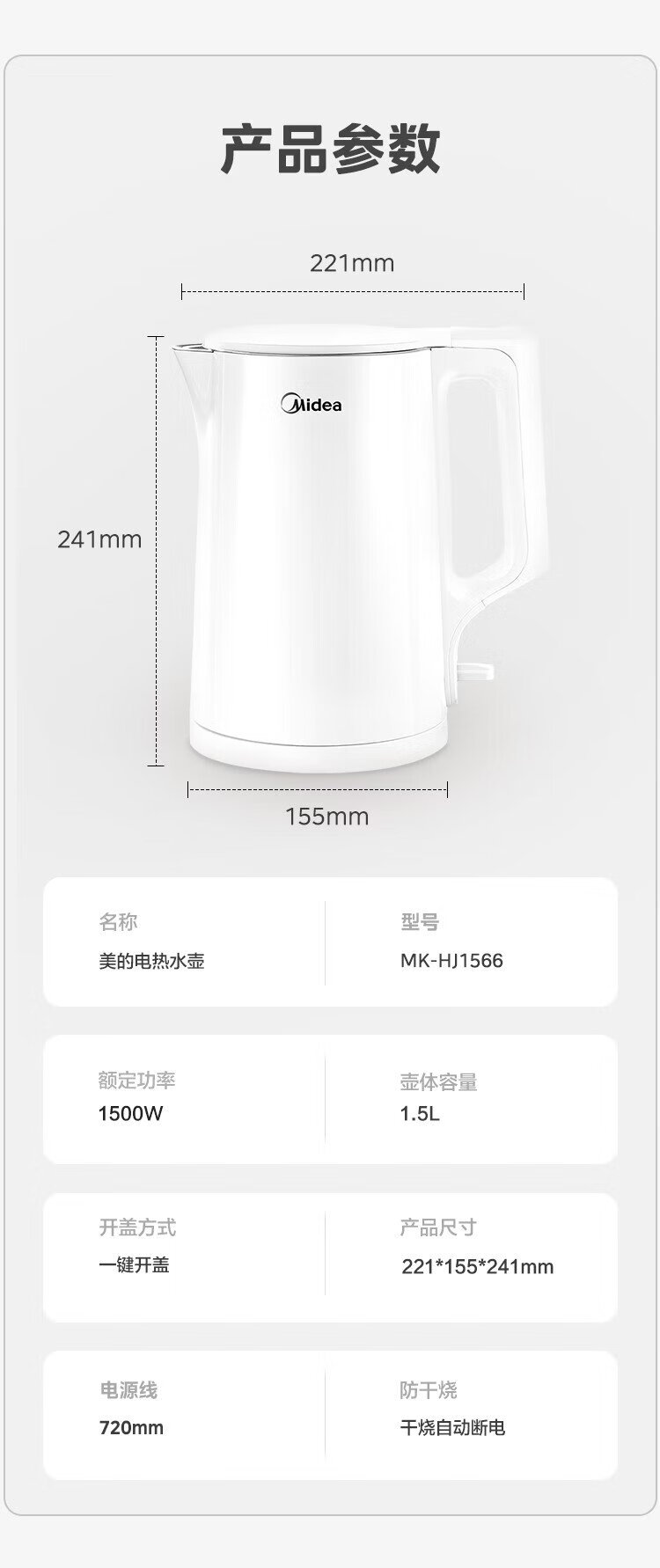 Midea electric kettle household kettle small capacity 0 coating food grade 304 stainless steel double layer anti-scald all steel seamless 1.5L capacity 1566