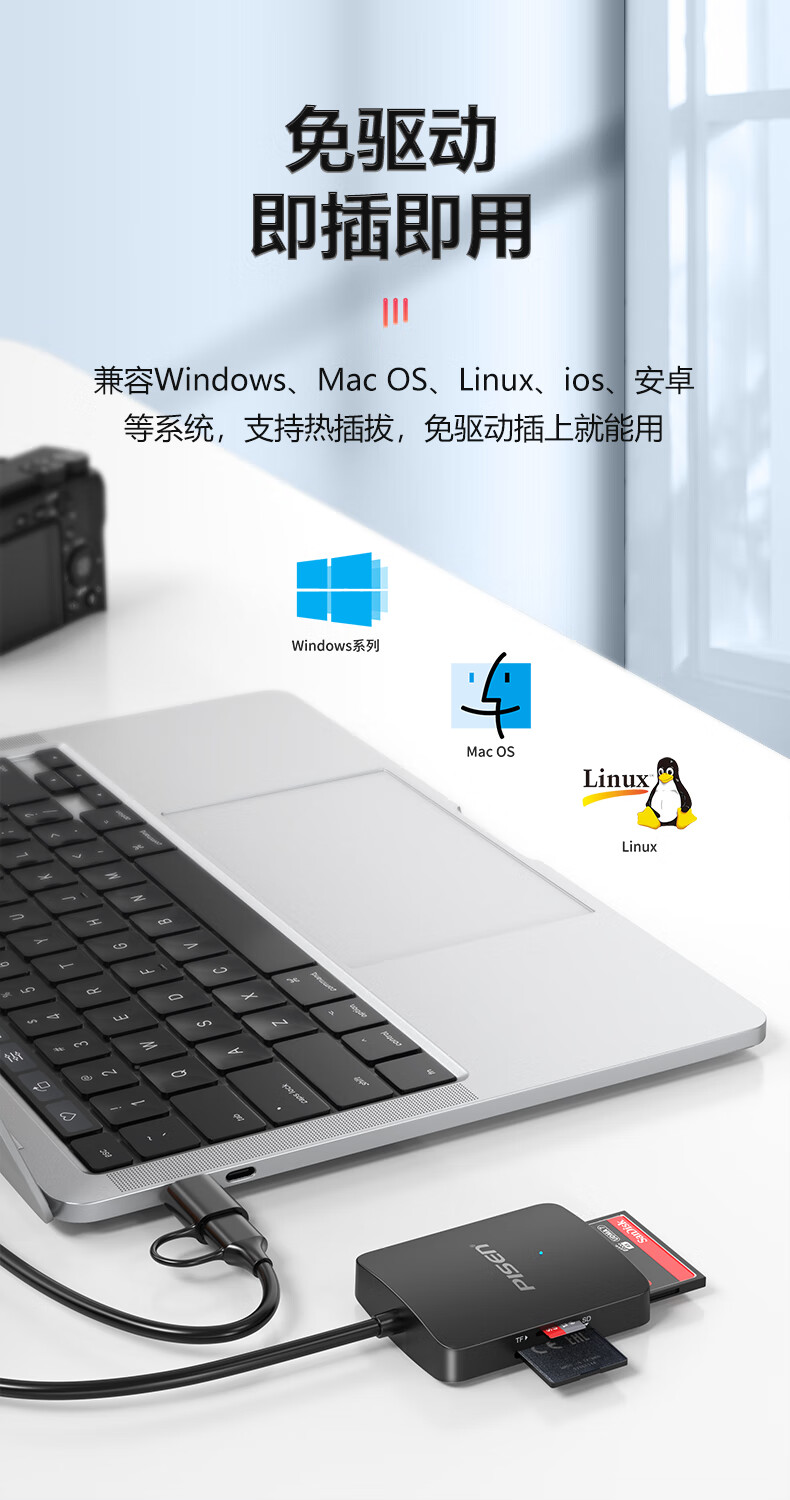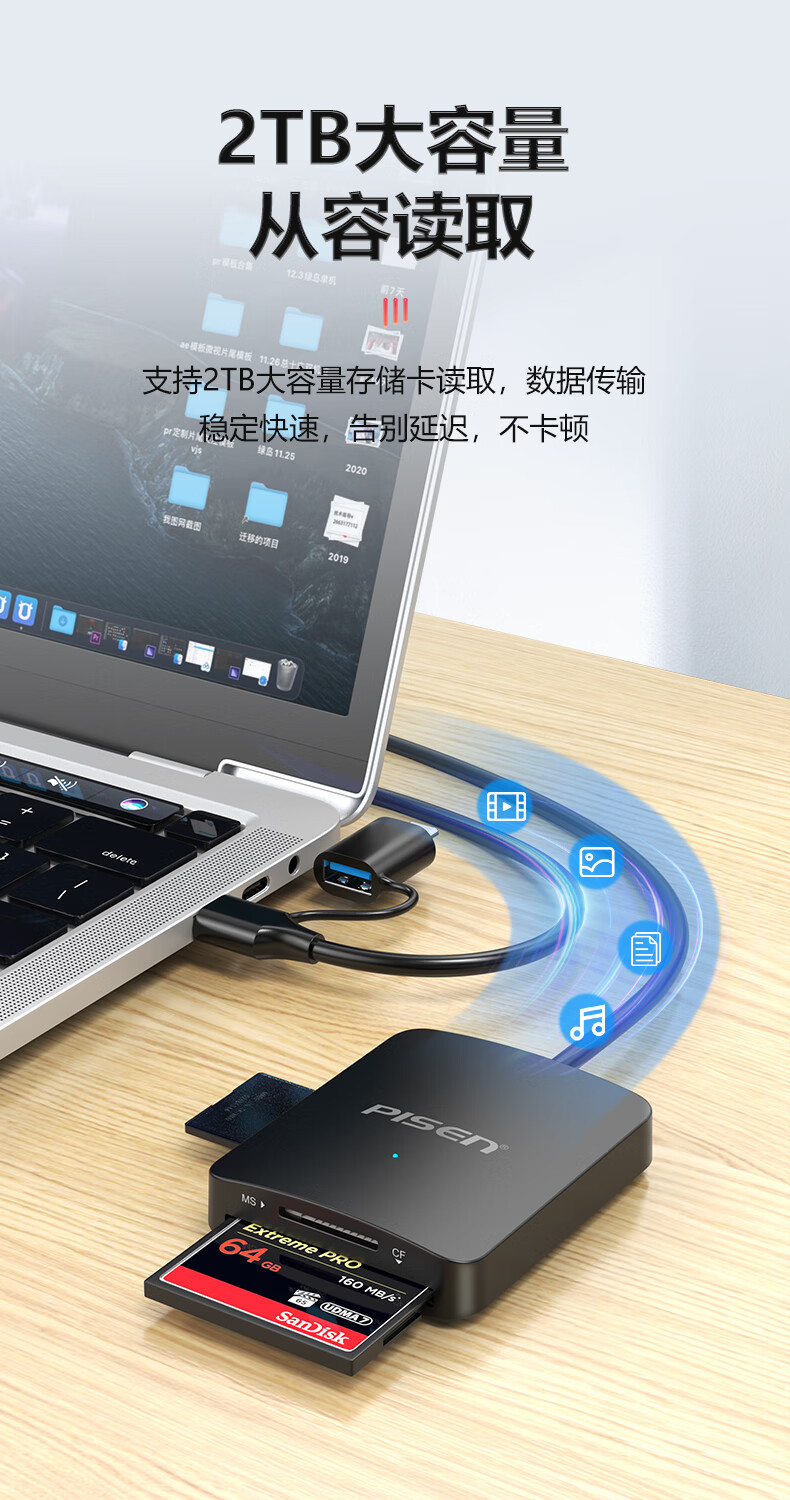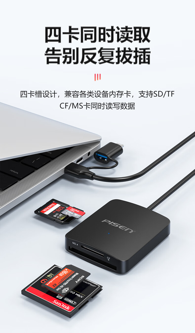 Pinsheng USB/Type-C3.0 multi-function card reader supports SD/TF/CF/MS card camera recorder monitoring memory card suitable for computers Apple 15/16 mobile phones/iPad