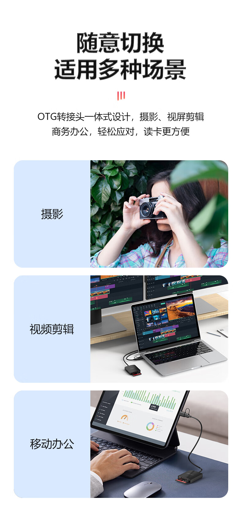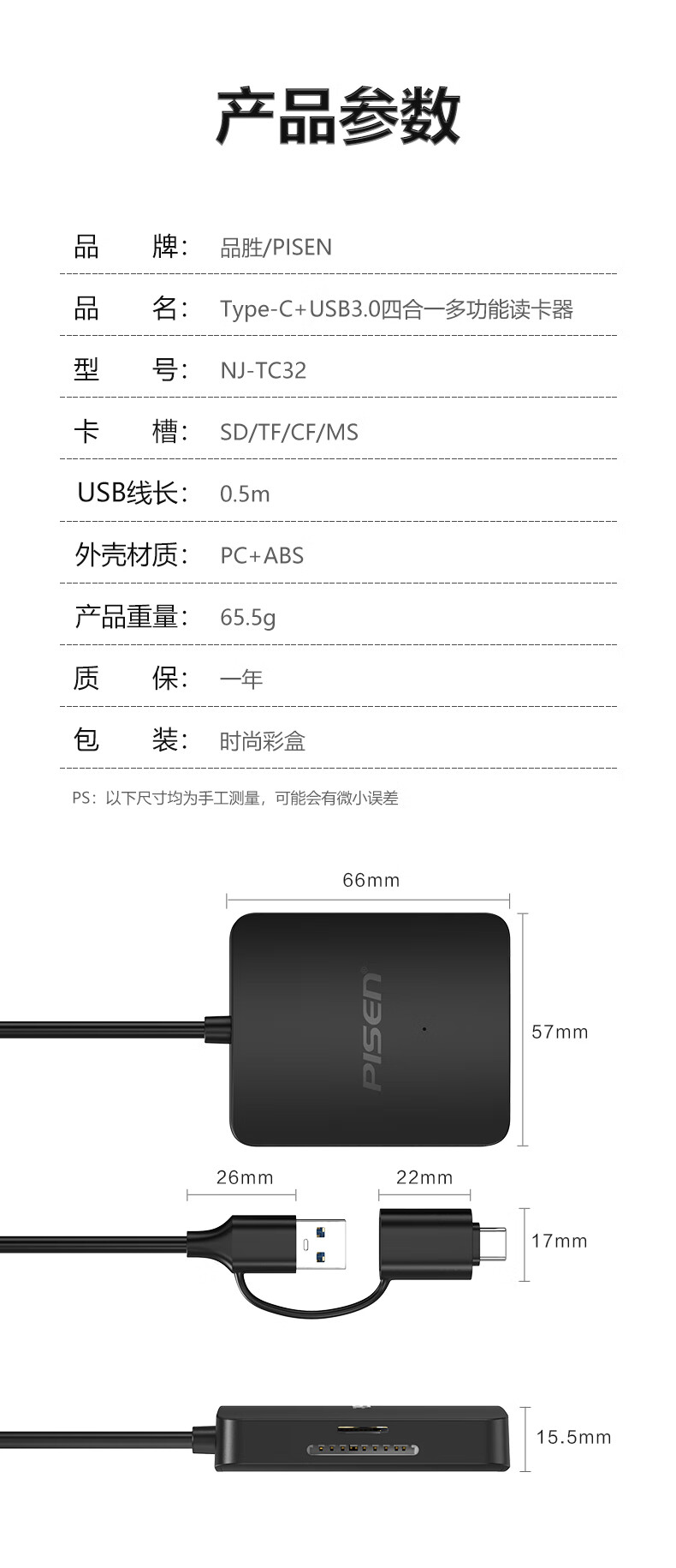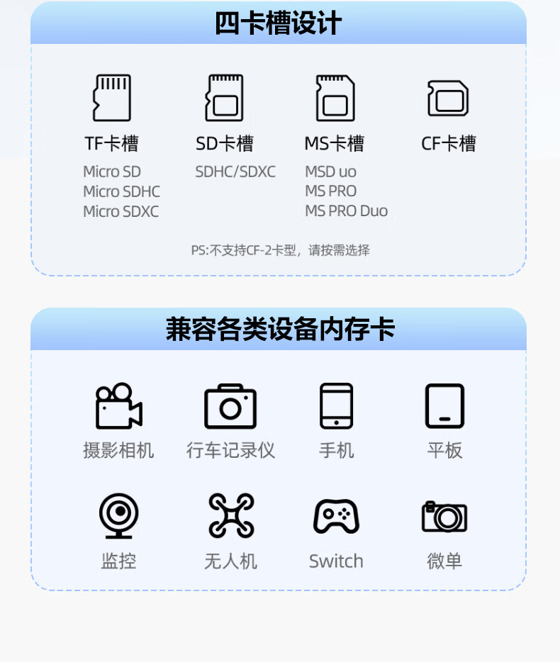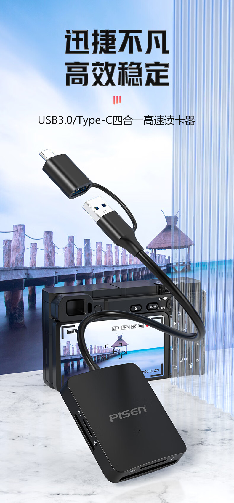 Pinsheng USB/Type-C3.0 multi-function card reader supports SD/TF/CF/MS card camera recorder monitoring memory card suitable for computers Apple 15/16 mobile phones/iPad