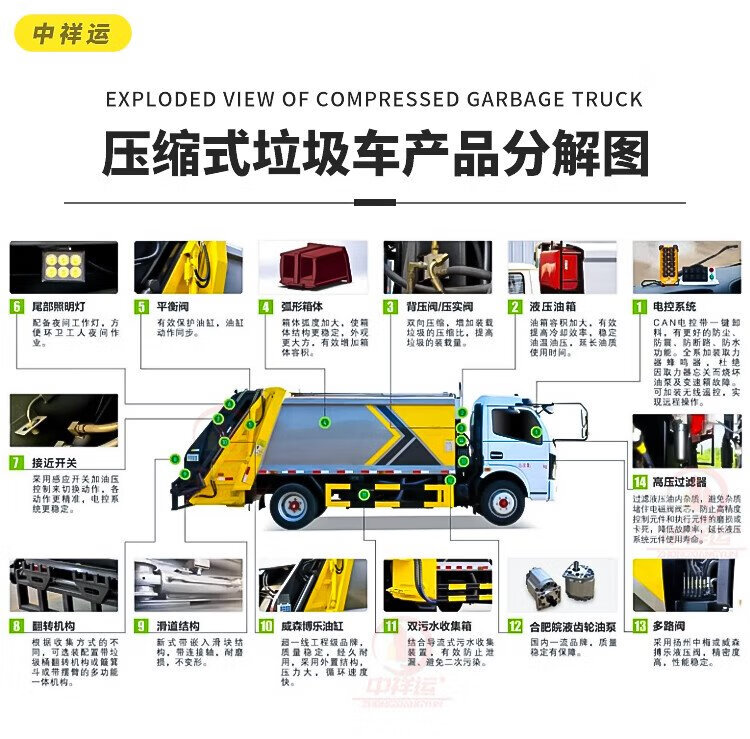 Zhongxiangyun Dongfeng Furika compressed garbage truck 8 cubic meters camp area domestic garbage removal truck garbage compression truck transfer truck sanitation truck
