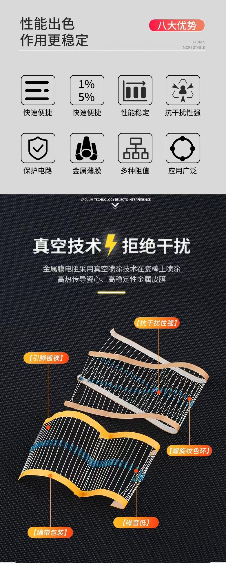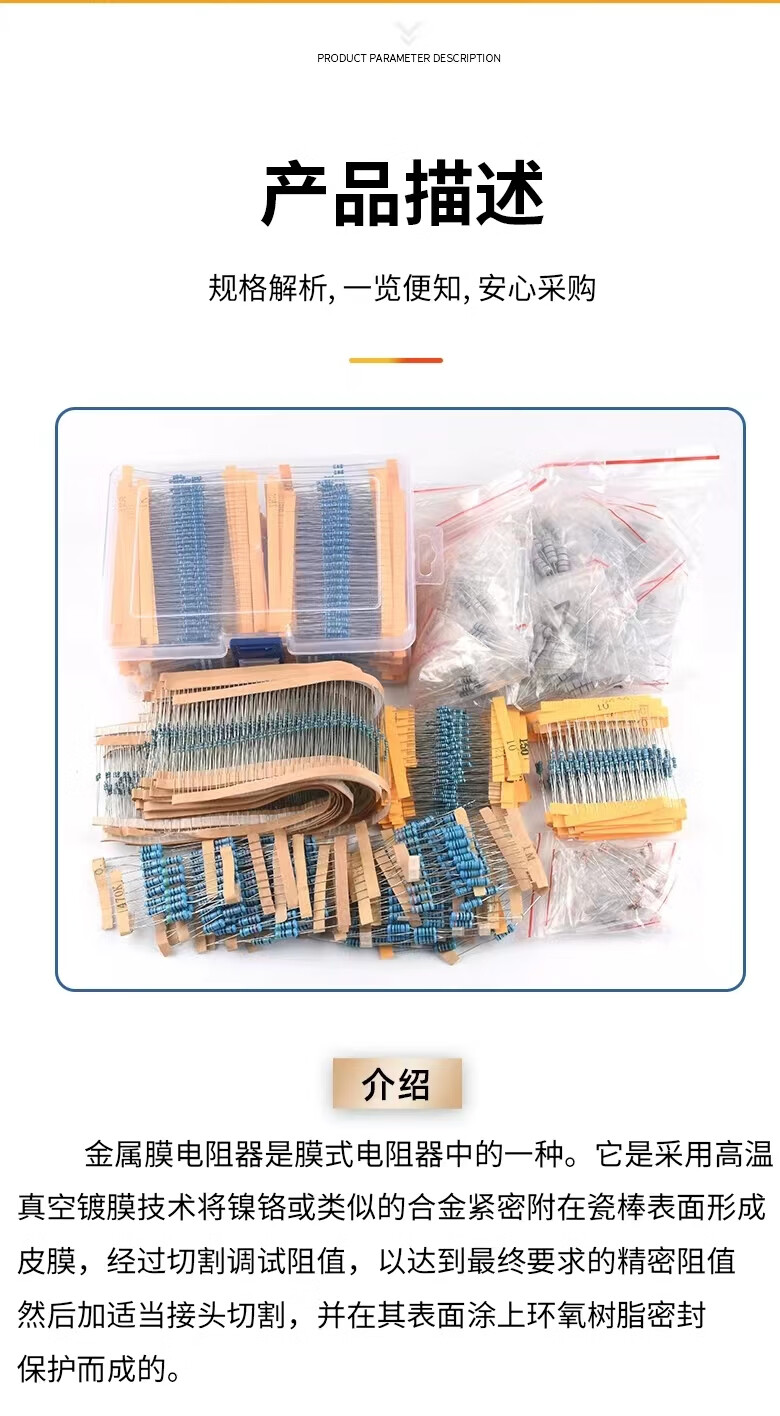 Noran 1/4W metal film resistor component 1% five-color ring 1K 100 pieces