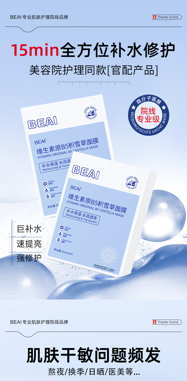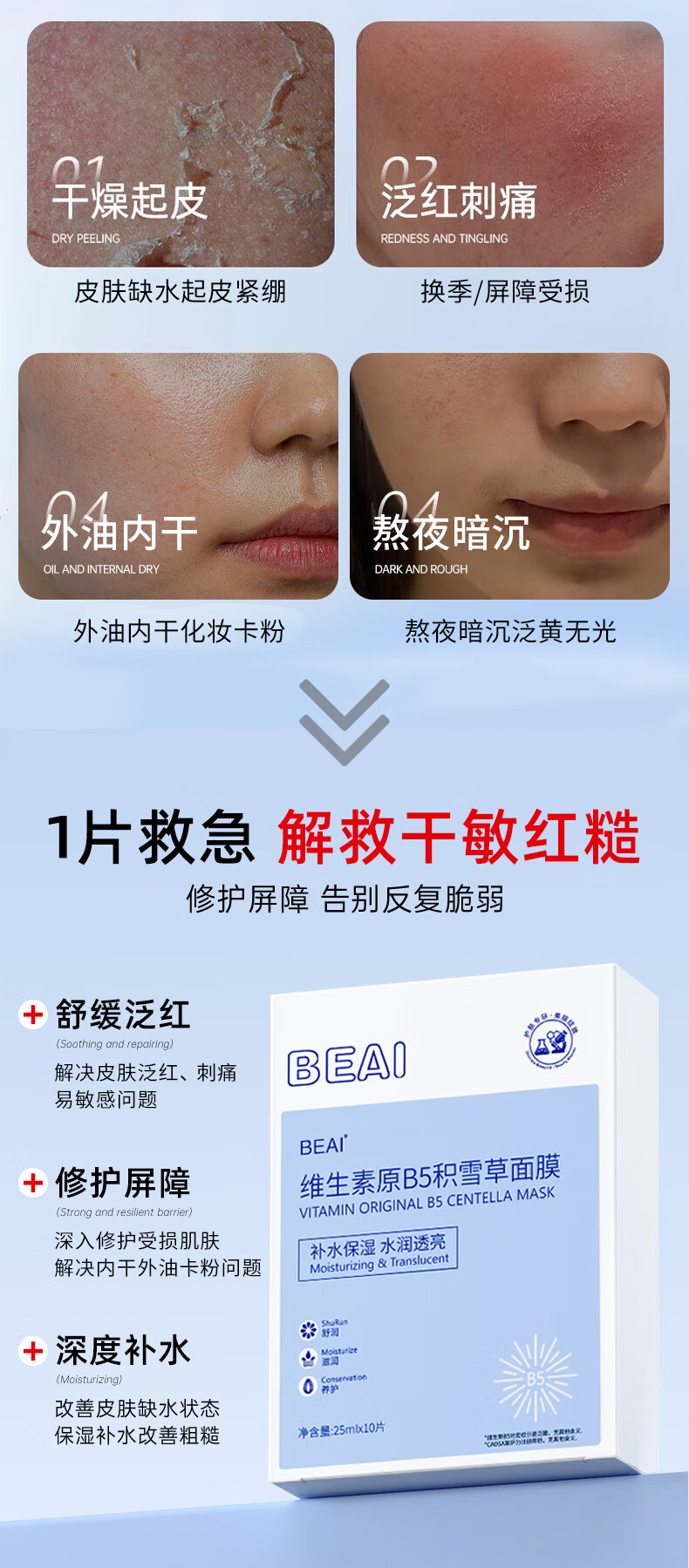 BEAIB5 Centella Asiatic Hydrating Mask Moisturizing Seasonal Repair Sensitive Skin Removes Yellowing, Brightens Anti-wrinkle Firming, Men and Women who stay up late