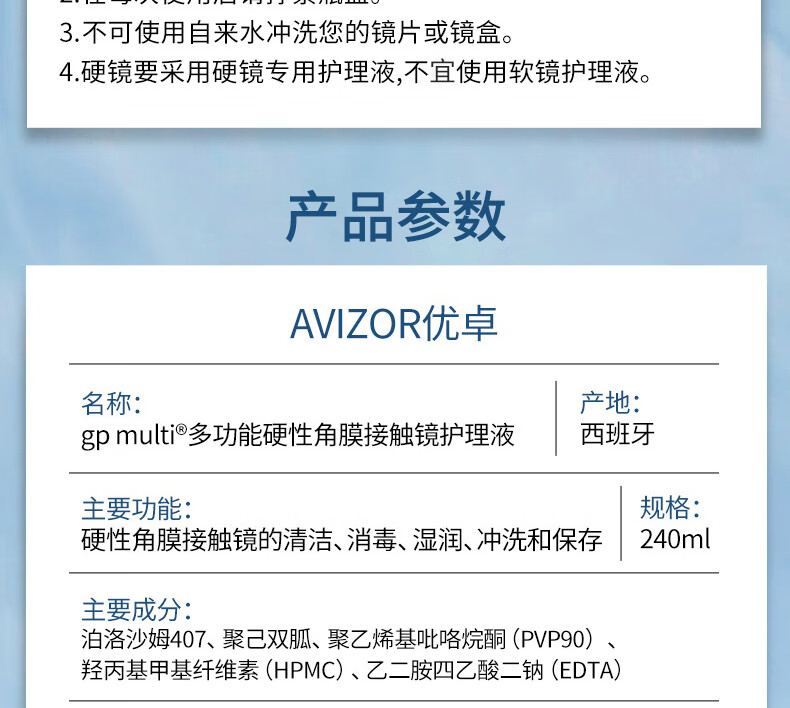 AVIZOR GP Multifunctional Rigid Contact Lens Care Solution 240ml Plastic Lens OK Lens RGP Rigid Contact Lens Care Solution