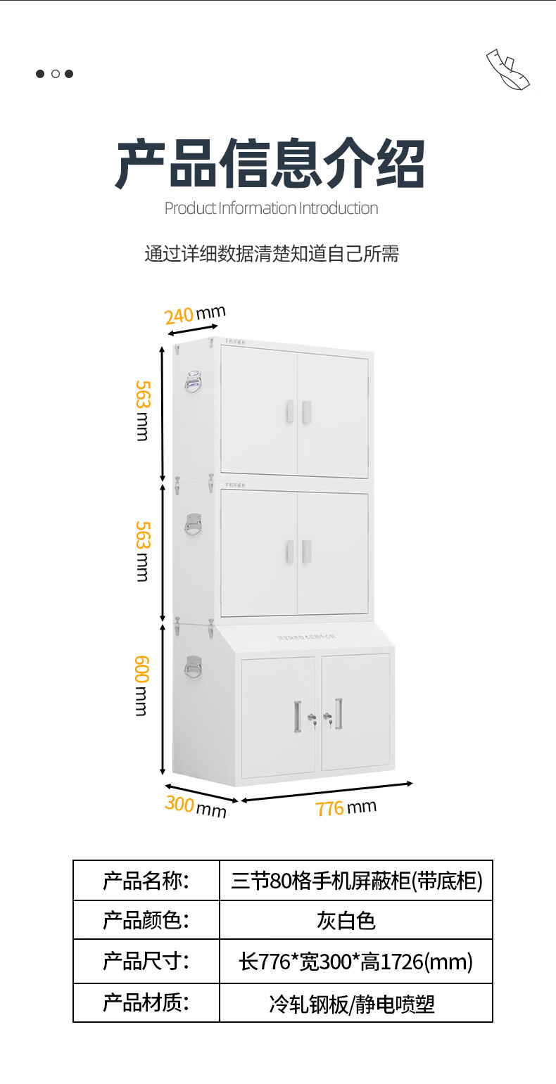 Kington mobile phone shielding cabinet, signal shielding cabinet, mobile phone storage cabinet JDPBG15, three sections, 80 grids, including base cabinet