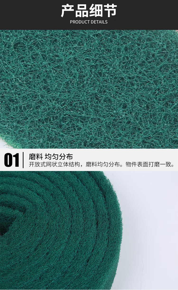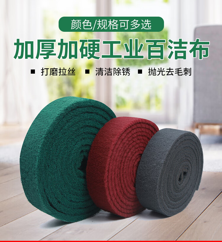 Cast solid industrial scouring pad sponge, emery polishing cloth, decontamination cleaning cloth, rust removal brushed cloth, green 7 cm * 5.7 m (one roll)
