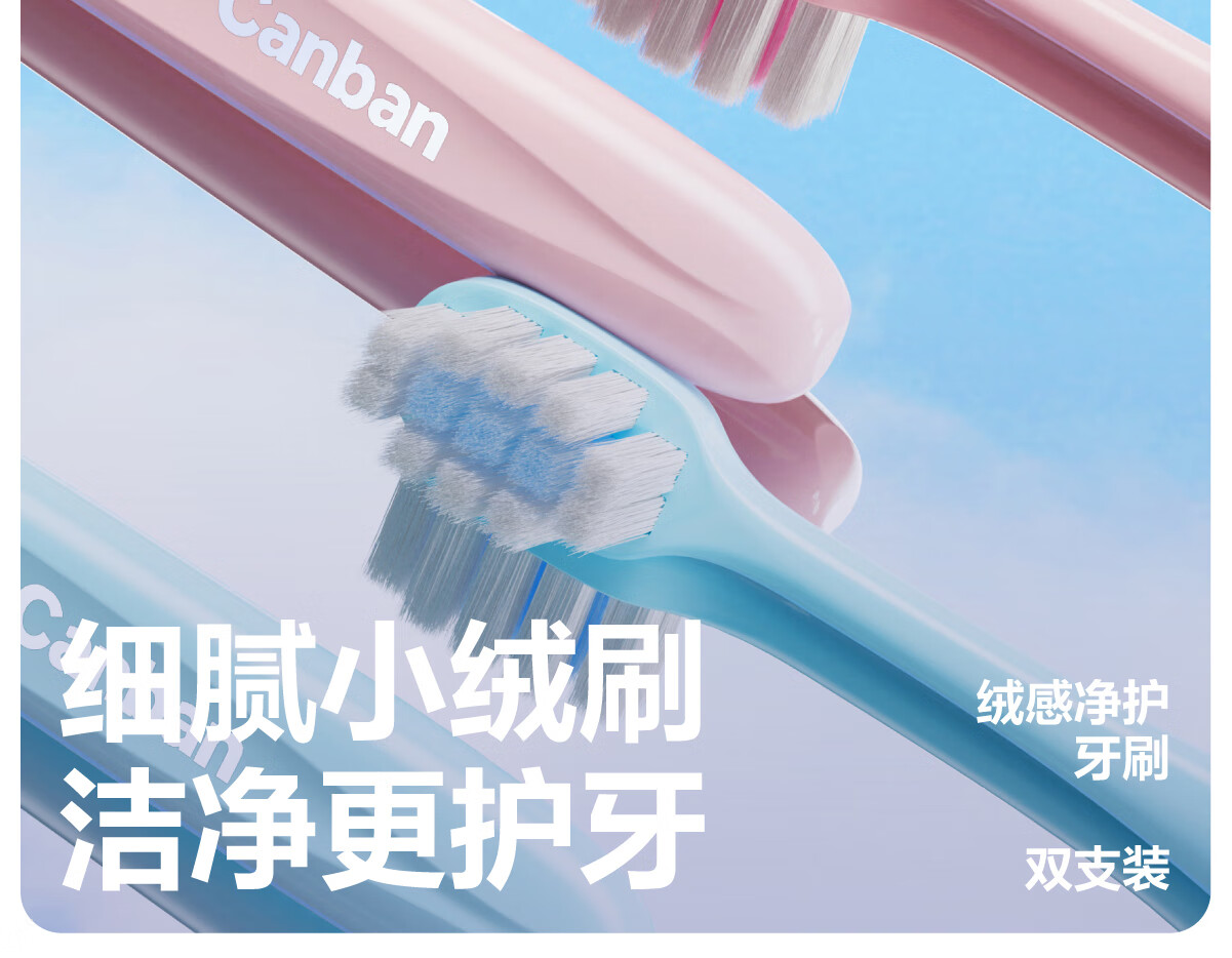 Semi-velvet toothbrush with clean and protective soft bristles. Soft bristles with square holes and small brush head to protect the gums and mouth. Two-color couple pack. 2 pieces.