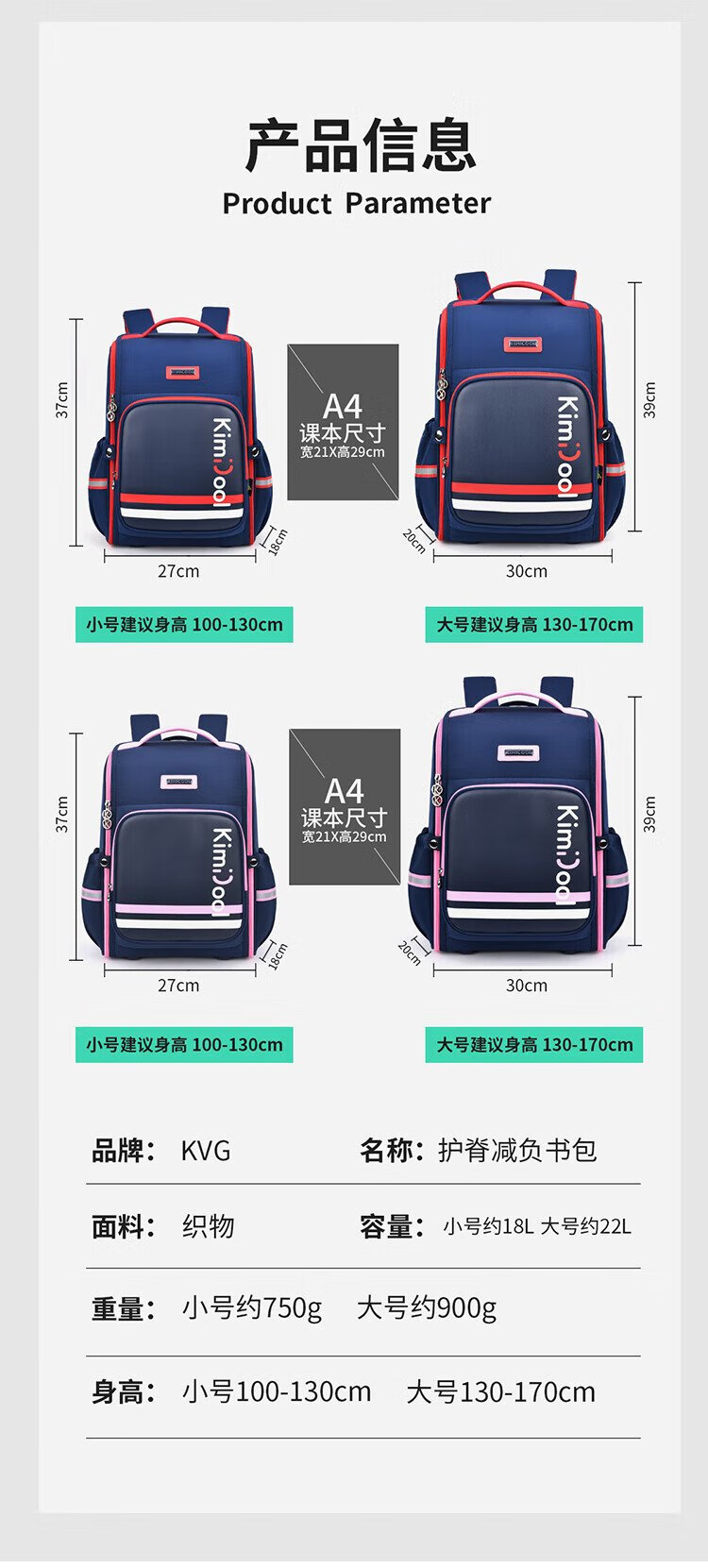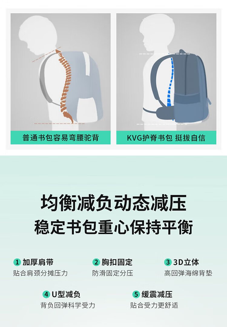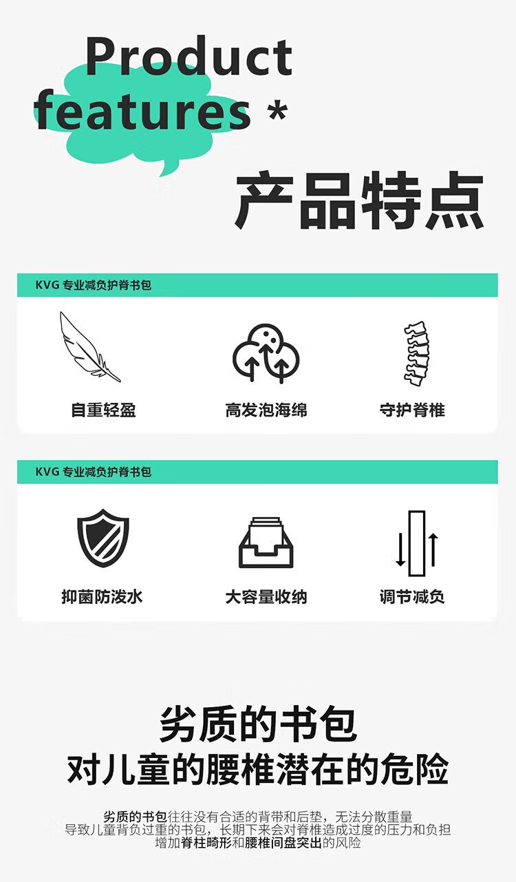 KVG school bag primary school children's spine protection and burden reduction 3-4-6 grade girls boys backpack
