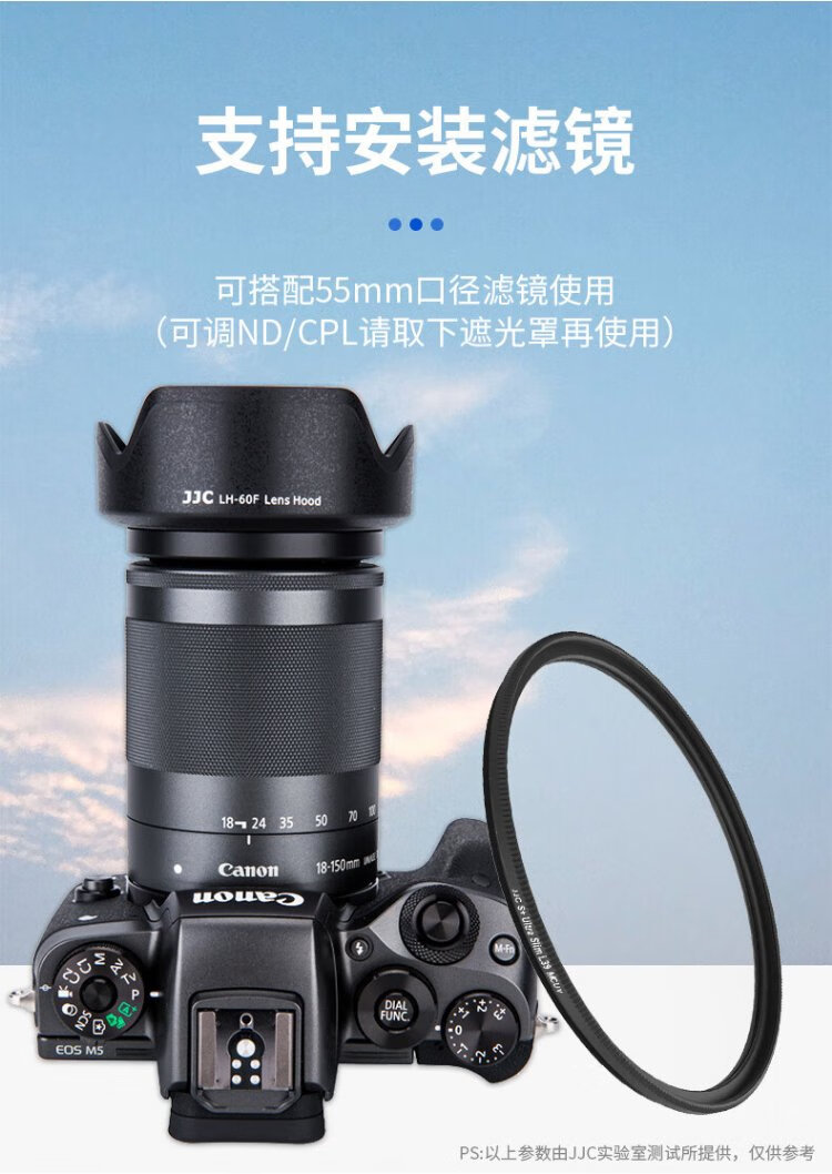 JJC is suitable for Canon RF-S 18-150 IS STM hood 55mm lens R7 R10 R50 R100 camera accessories + UV mirror set