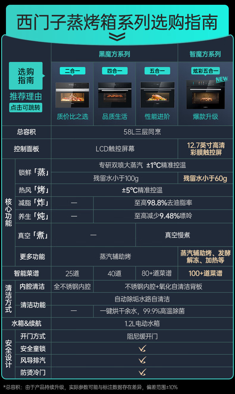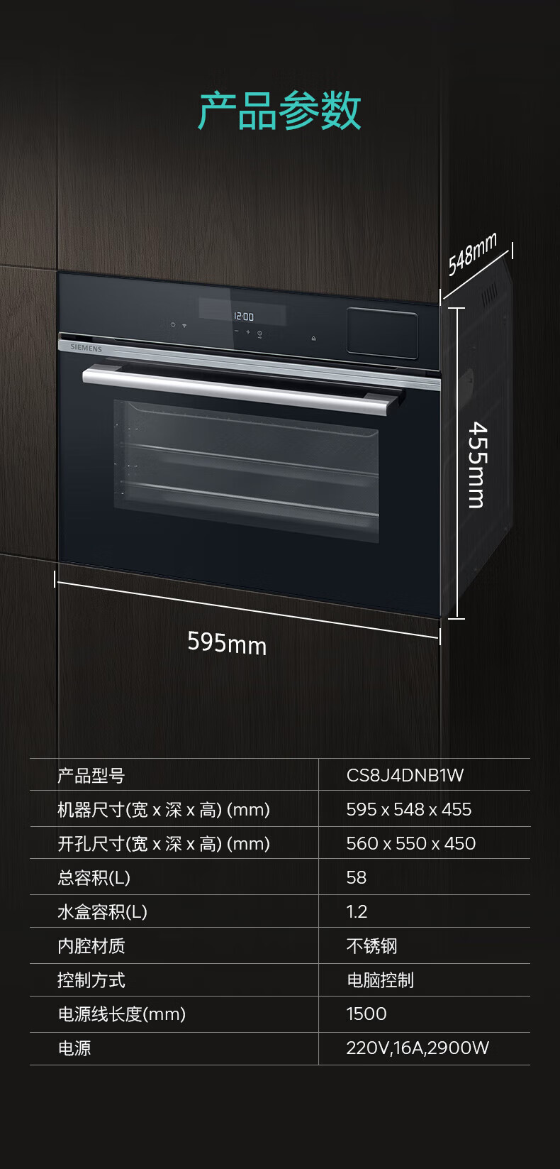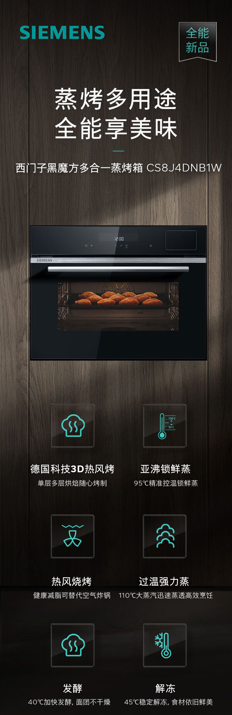 SIEMENS precision temperature and humidity control Black Cube four-in-one steaming oven all-in-one machine embedded 58L steaming, baking, frying and stewing self-cleaning household steaming oven CS8J4DNB1W
