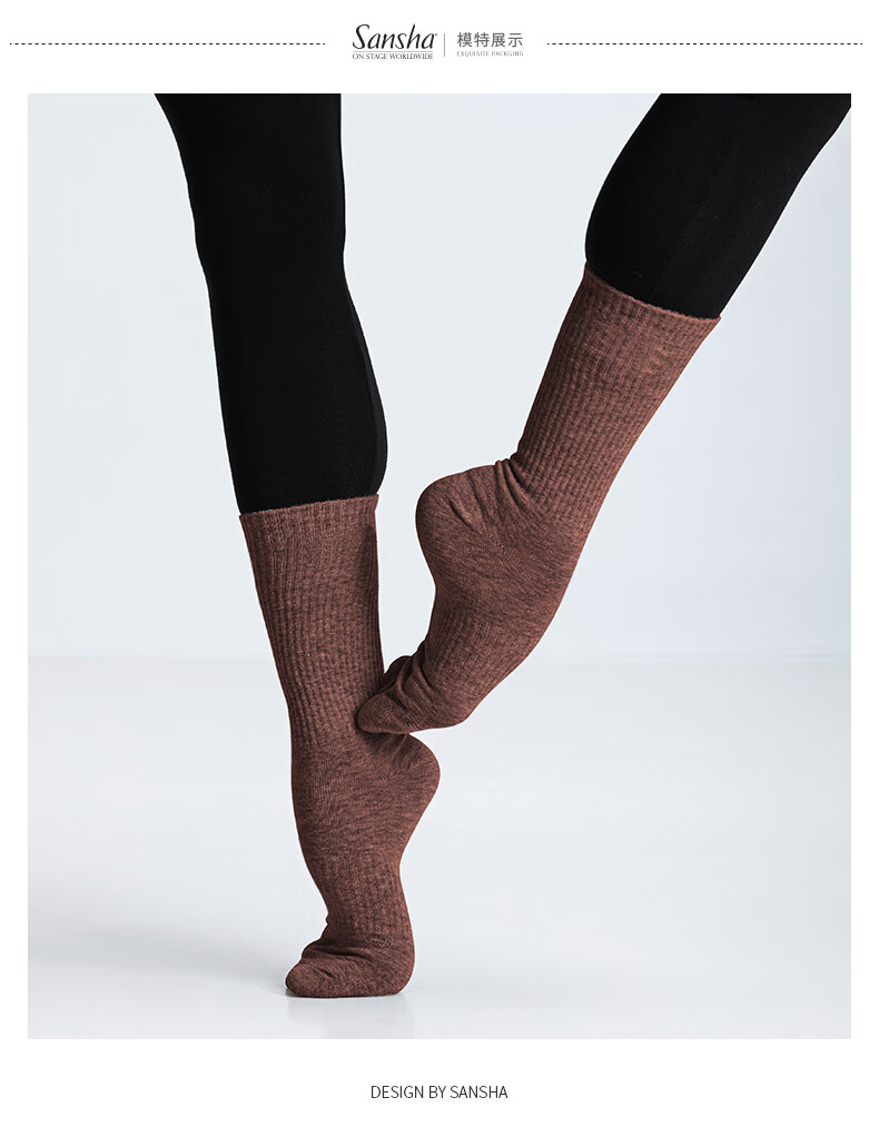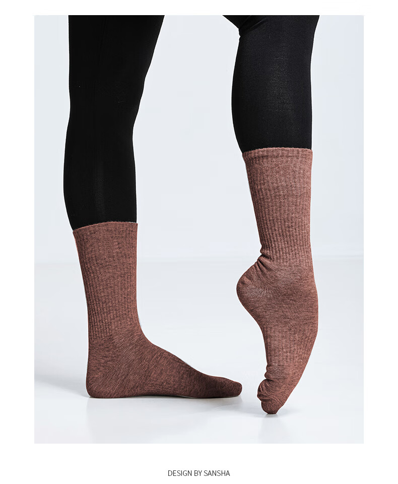 Sansha modern dance socks, colorful ballet practice socks, mid-length cotton socks, solid color long dance socks, khaki