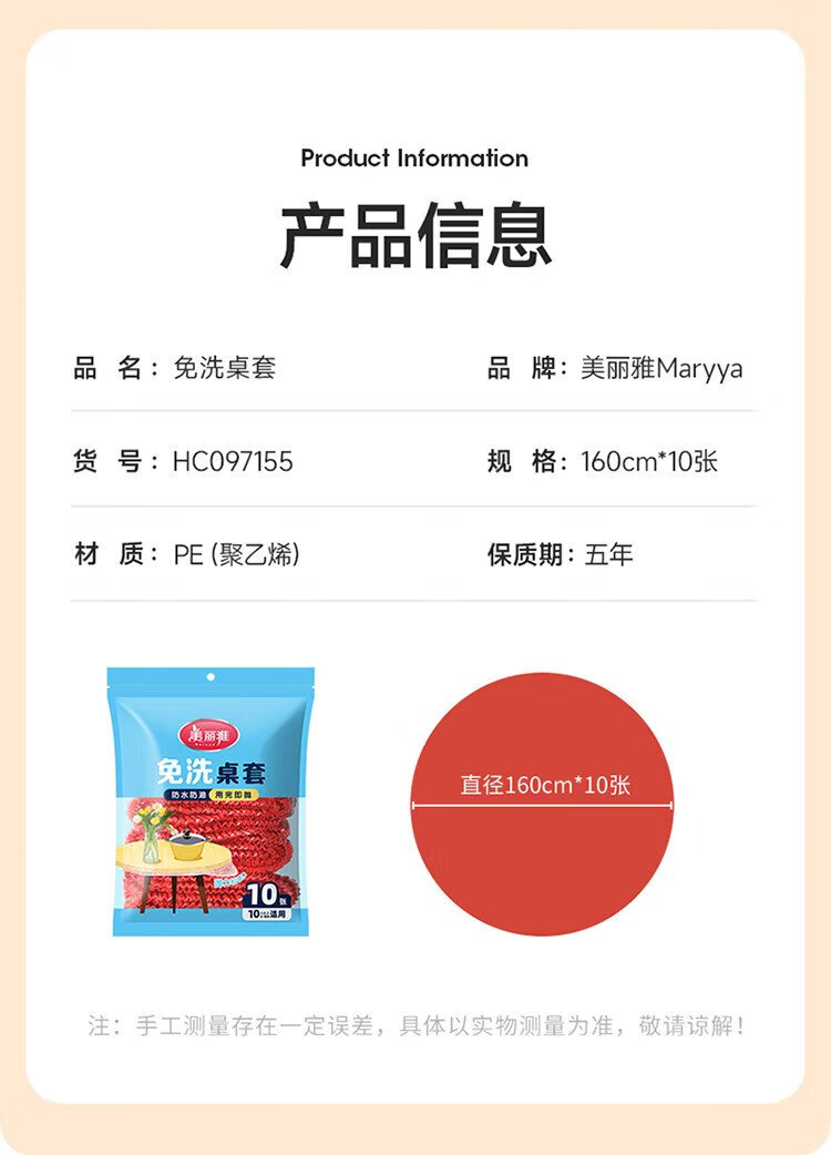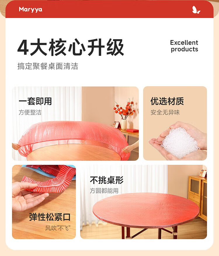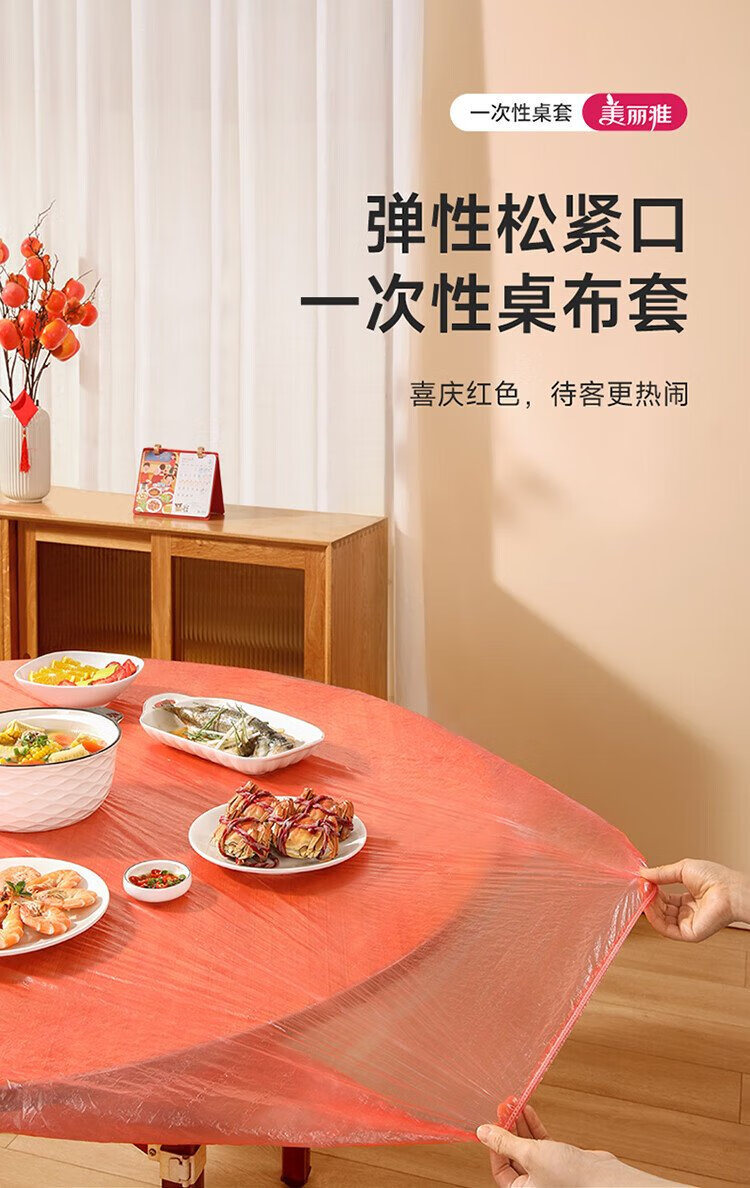 Meliya disposable tablecloths with thickened elastic opening 10 red rectangular round dining table waterproof, oil-proof and iron-proof tablecloth covers