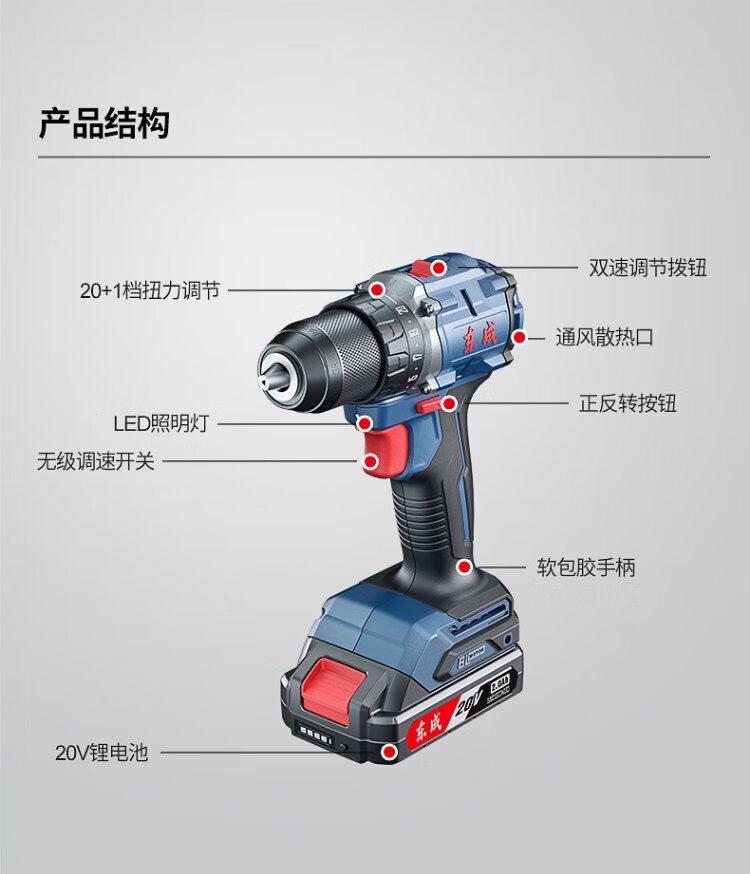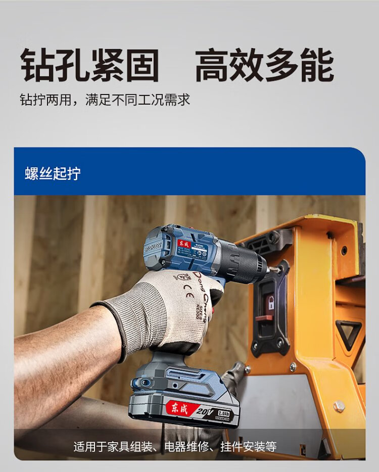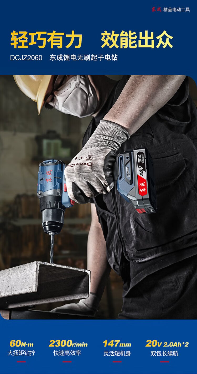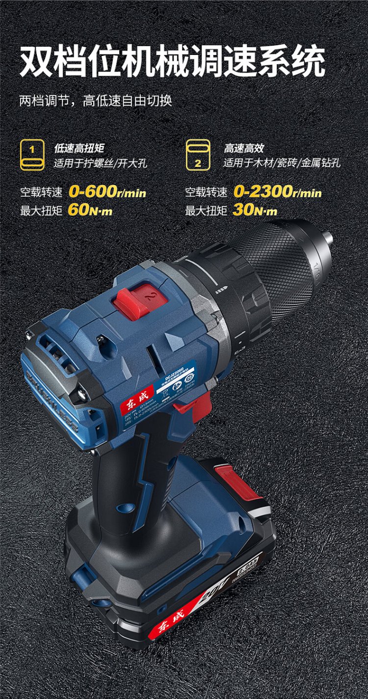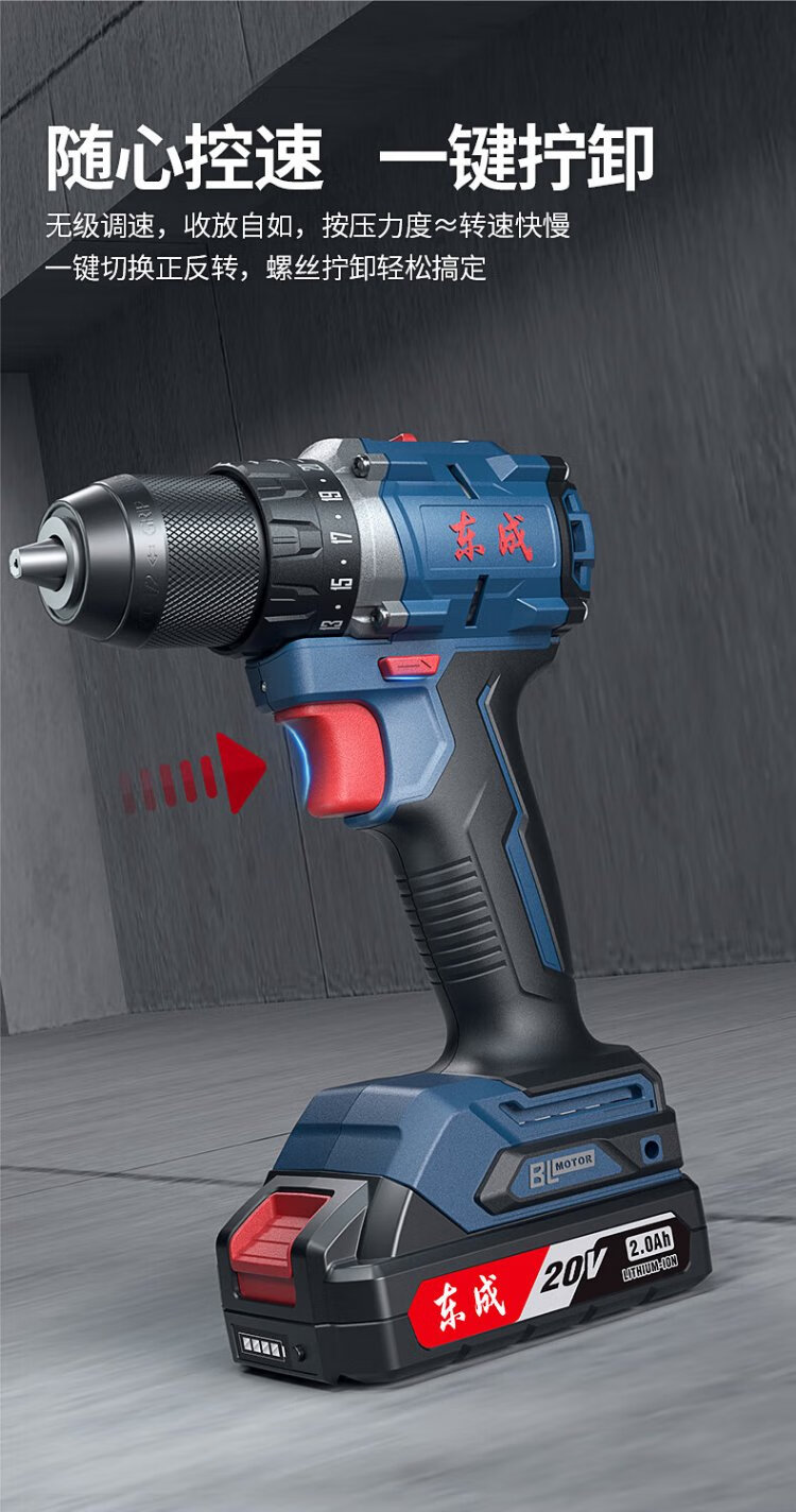 Dongcheng 20V brushless electric hand drill DCJZ2060AM rechargeable electric screwdriver two-speed forward and reverse lithium electric drill