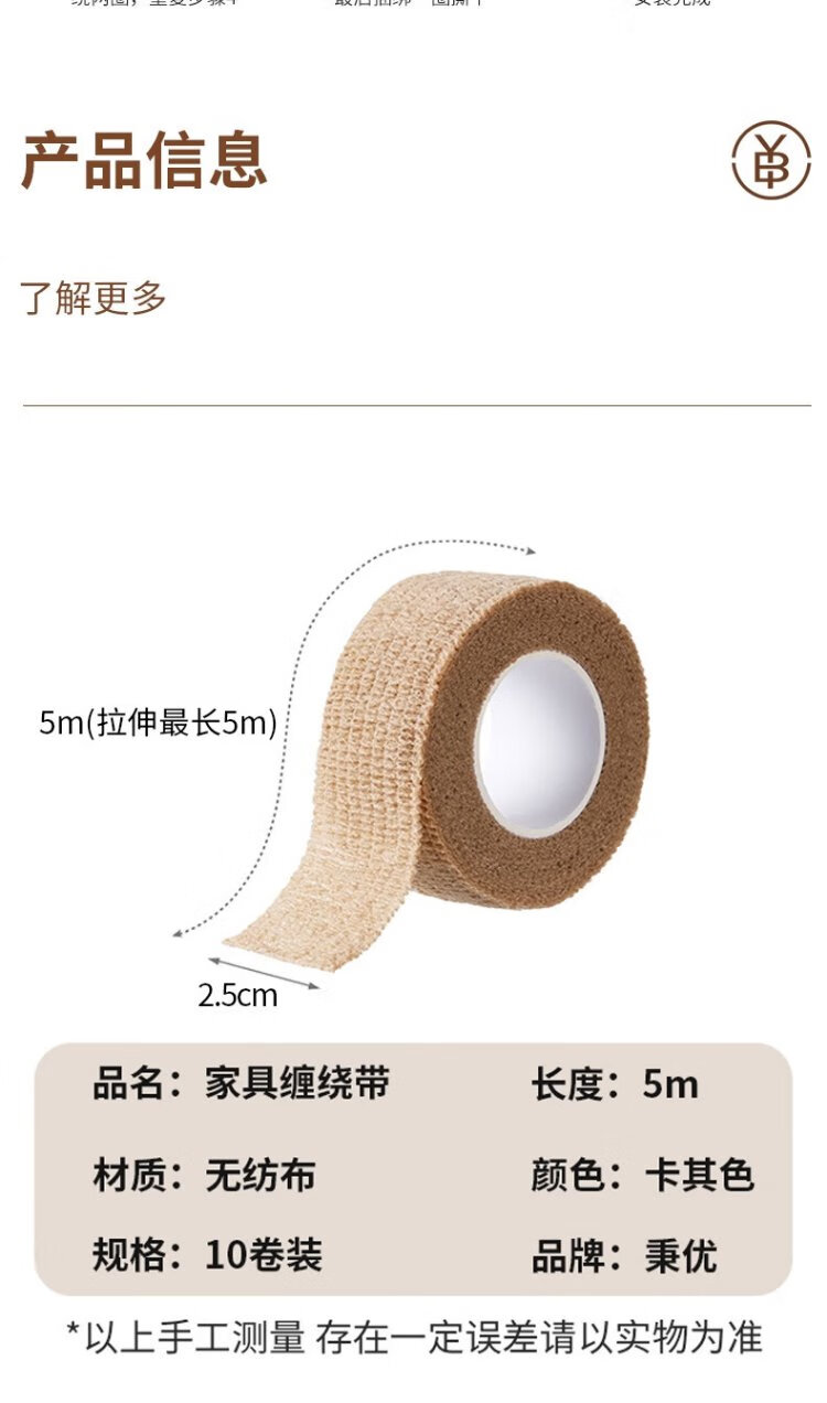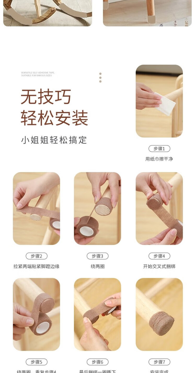 Bingyou chair foot pad protective cover tape 10 rolls khaki anti-slip table leg stool protective foot cover to prevent movement