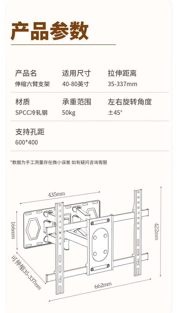 Xizhou Yeyu TV Telescopic Mount (40-80 inches) Bracket Wall Mount Rotating Multifunctional Universal Xiaomi Honor Smart Screen Hisense Skyworth TCL Samsung Sony