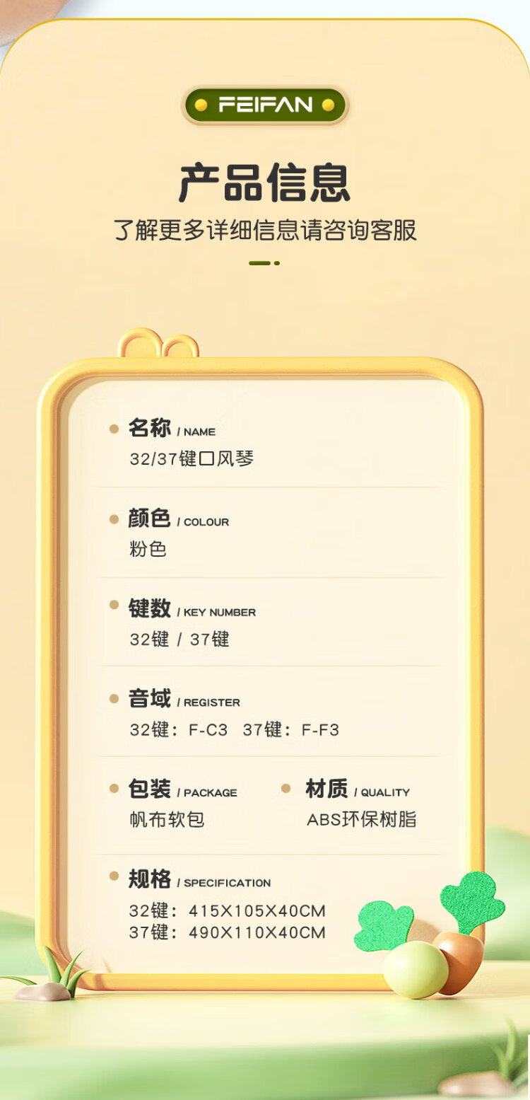 Feifan Feifan 37-key mouth organ for primary school students, children and adults, professional performance wind instrument, pink