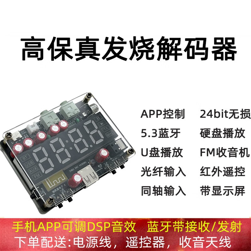 Ouhuayuan high-fidelity U disk player hifi lossless 5.3 Bluetooth audio decoder board power amplifier audio FM reception with screen 5.0 Bluetooth high-fidelity decoder 5V does not support APP