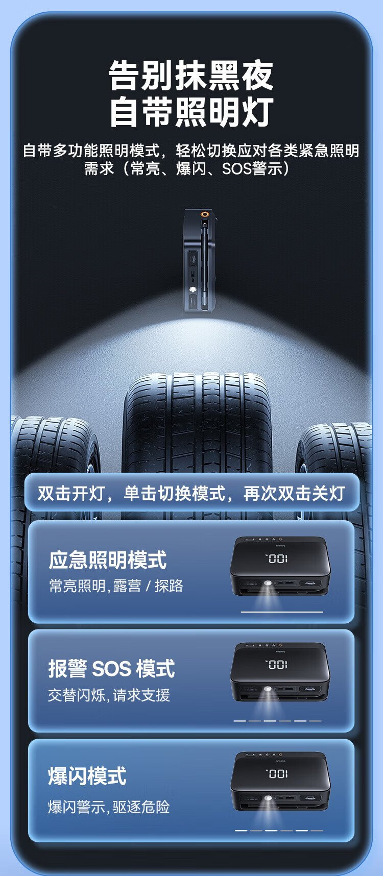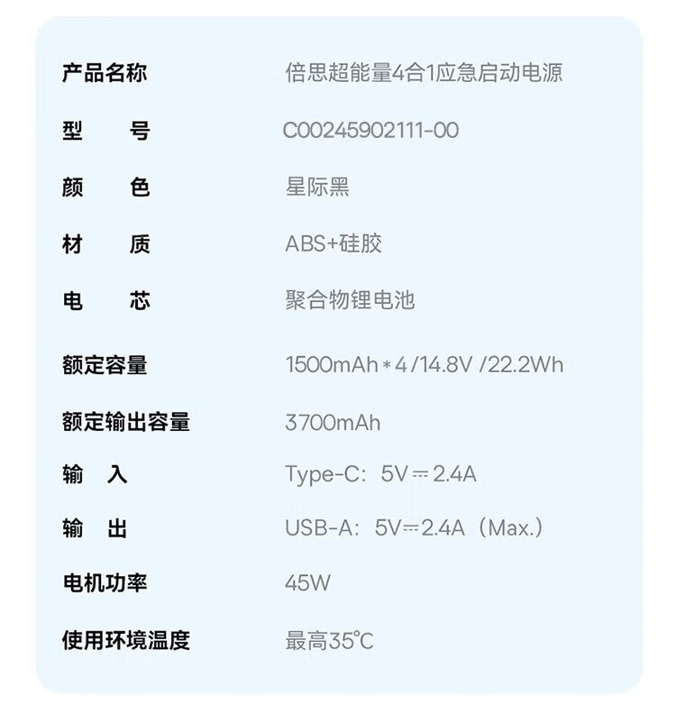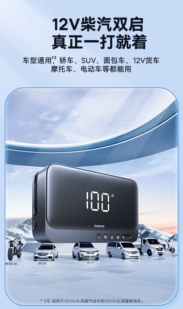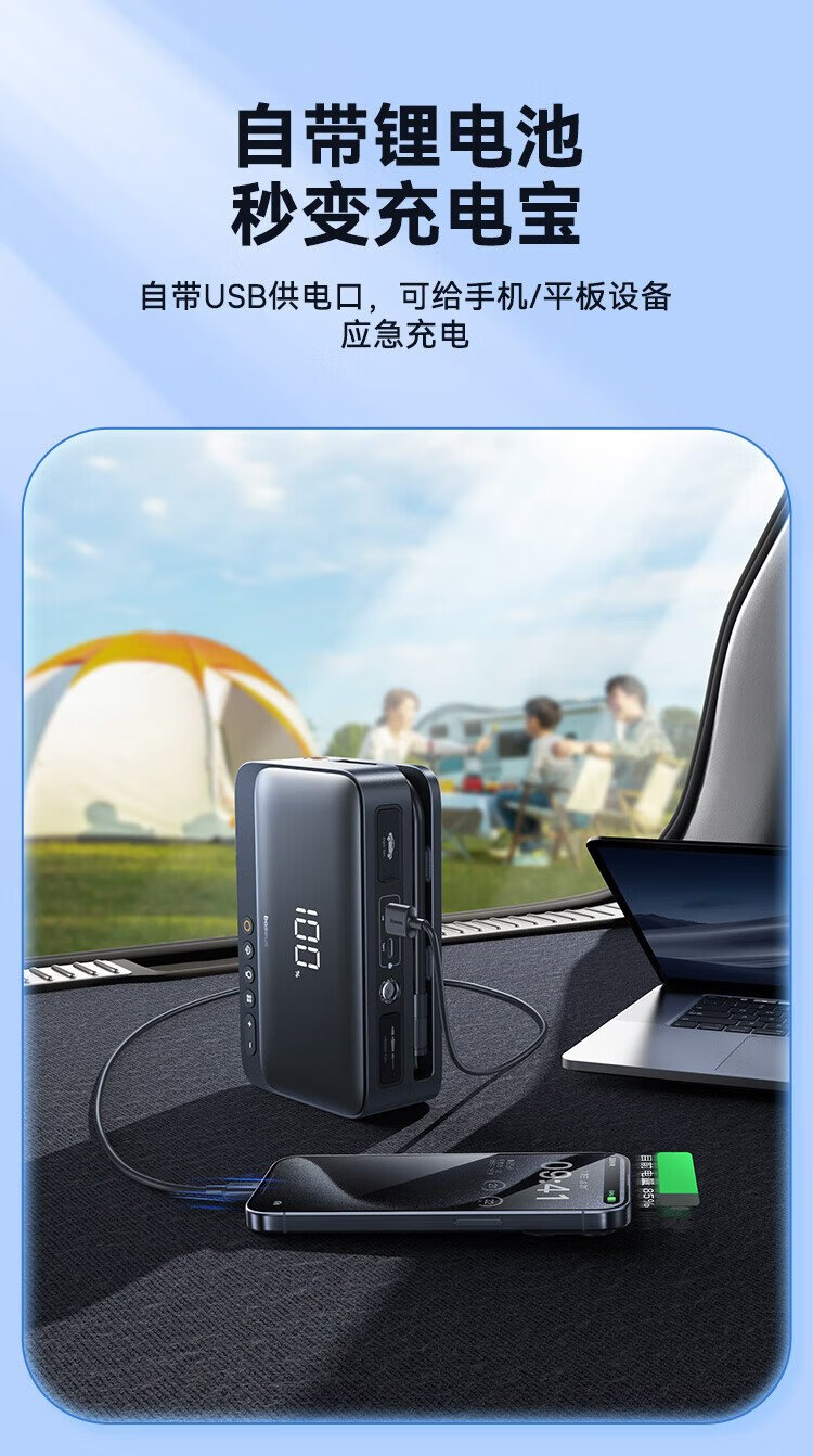 Baseus national 3C certification car emergency starting power supply air pump all-in-one machine with power bank outdoor mobile power supply