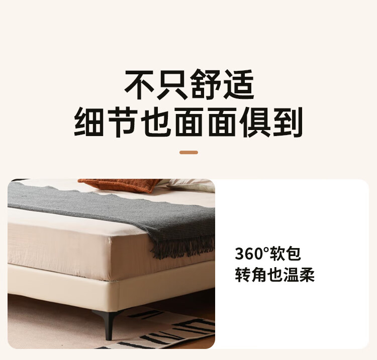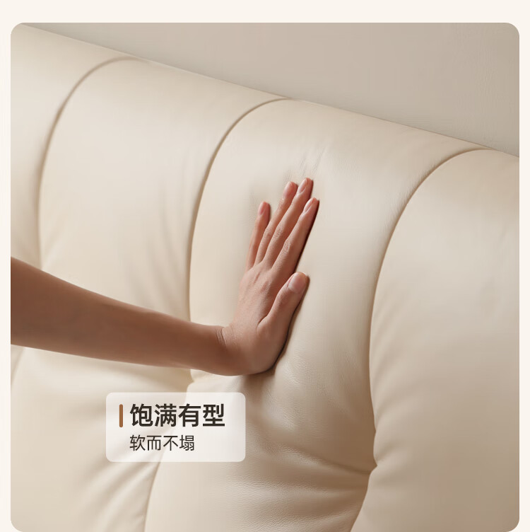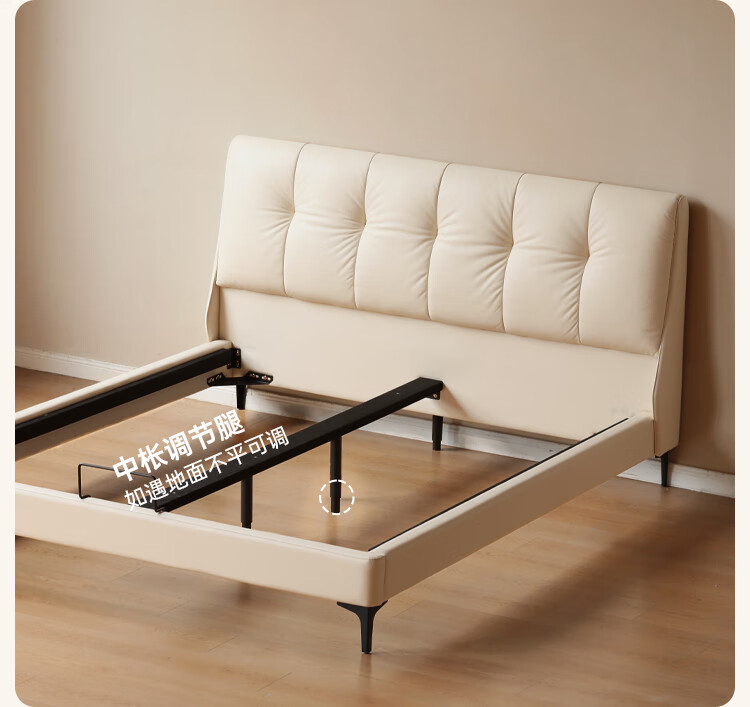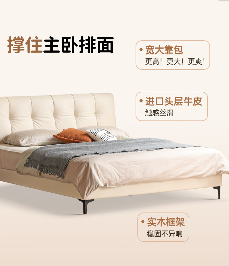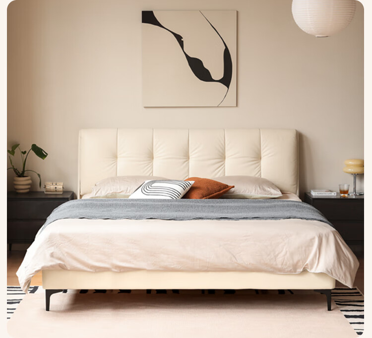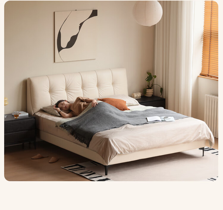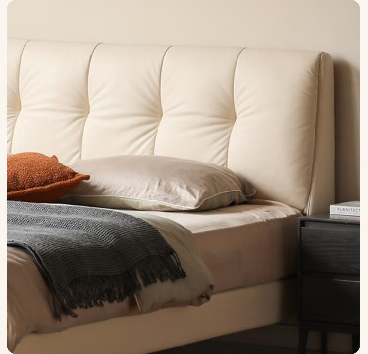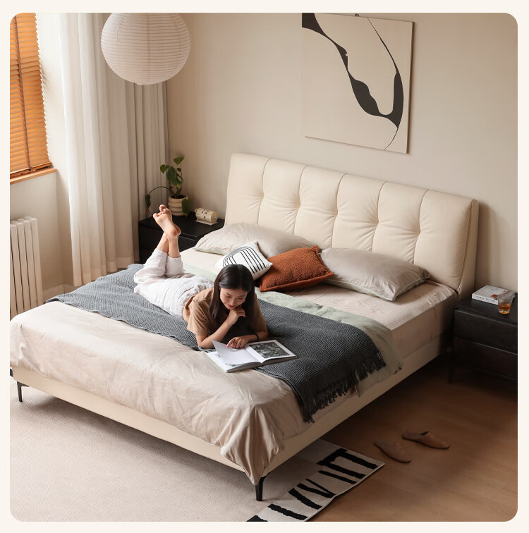 Genji Wood Language Leather Bed Double Bed Master Bedroom Upholstered Bed Cream Style White Leather Bed Light Luxury Modern Leather Art King Bed 1.5m