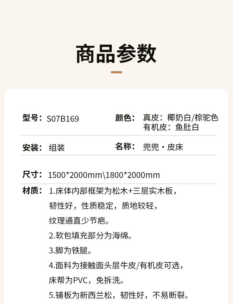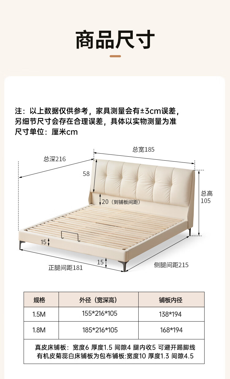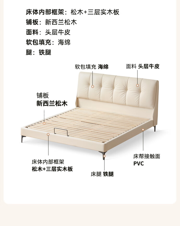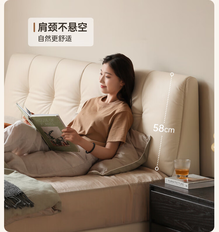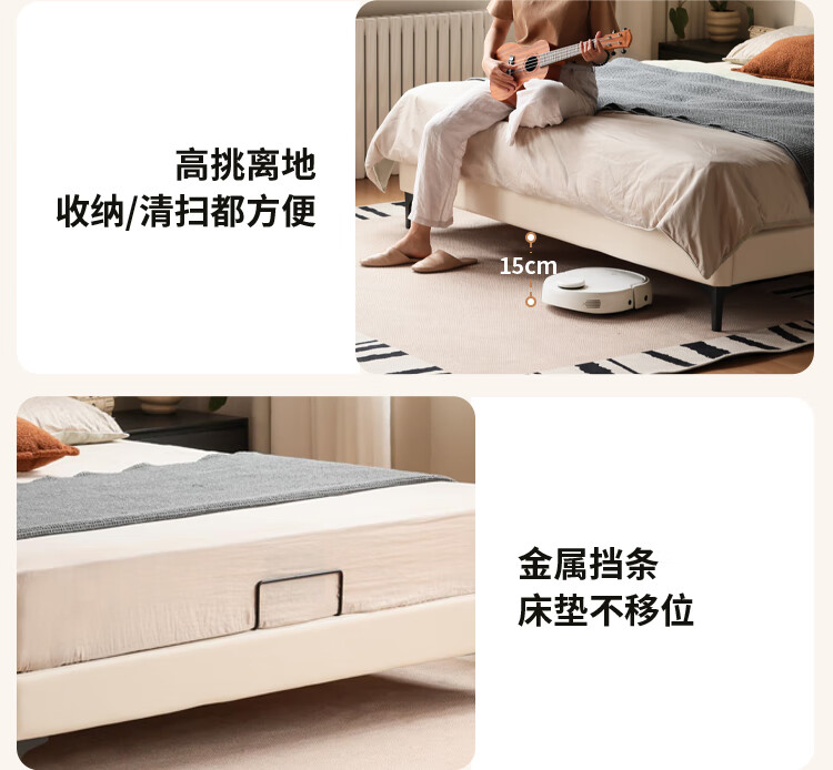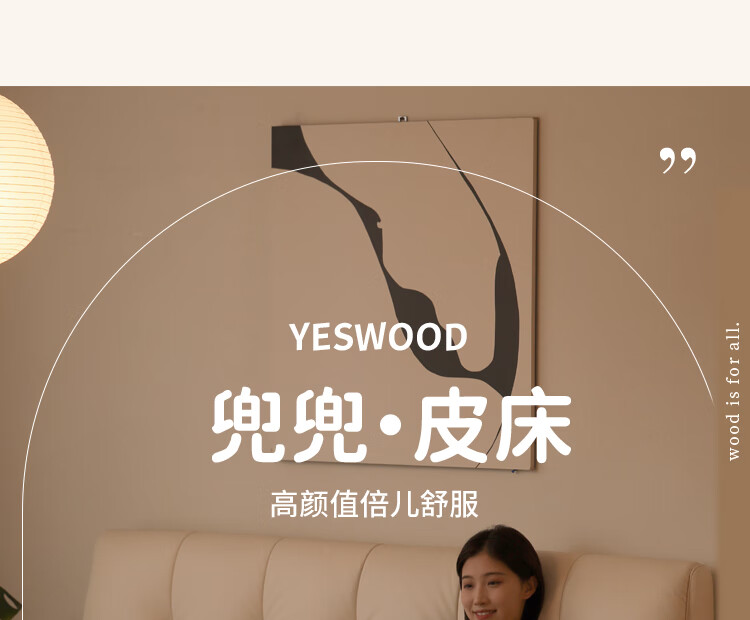 Genji Wood Language Leather Bed Double Bed Master Bedroom Upholstered Bed Cream Style White Leather Bed Light Luxury Modern Leather Art King Bed 1.5m