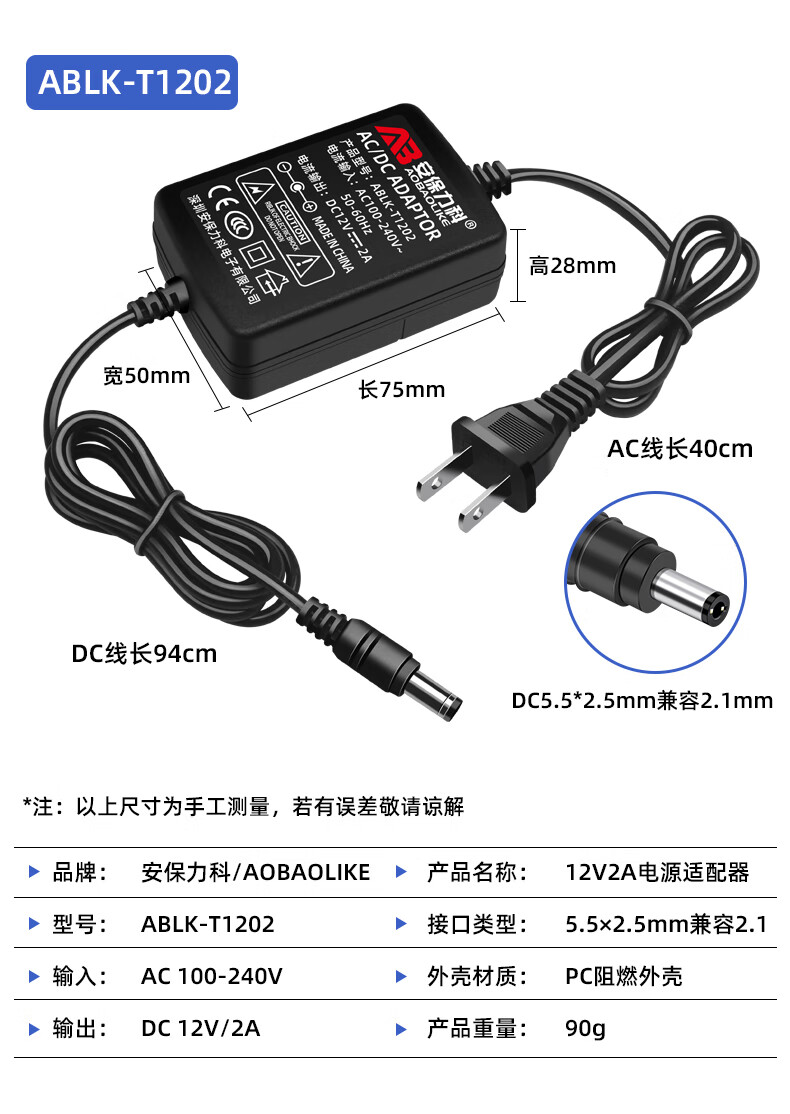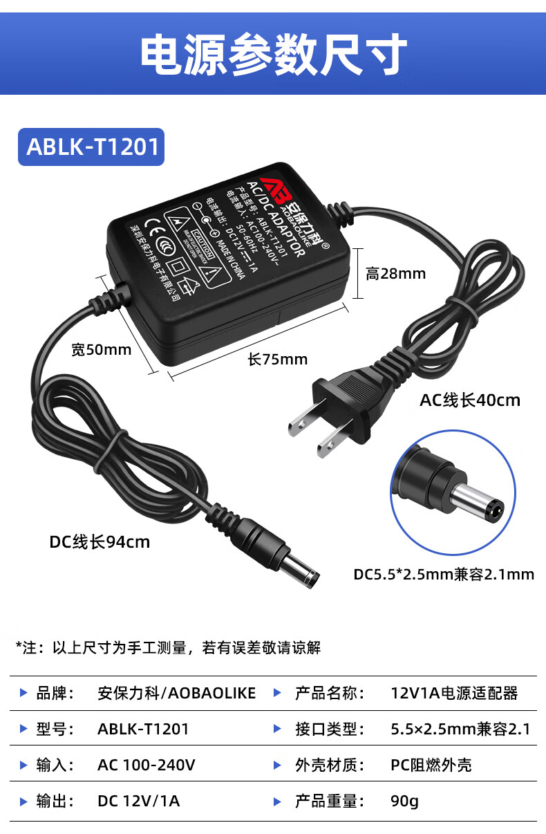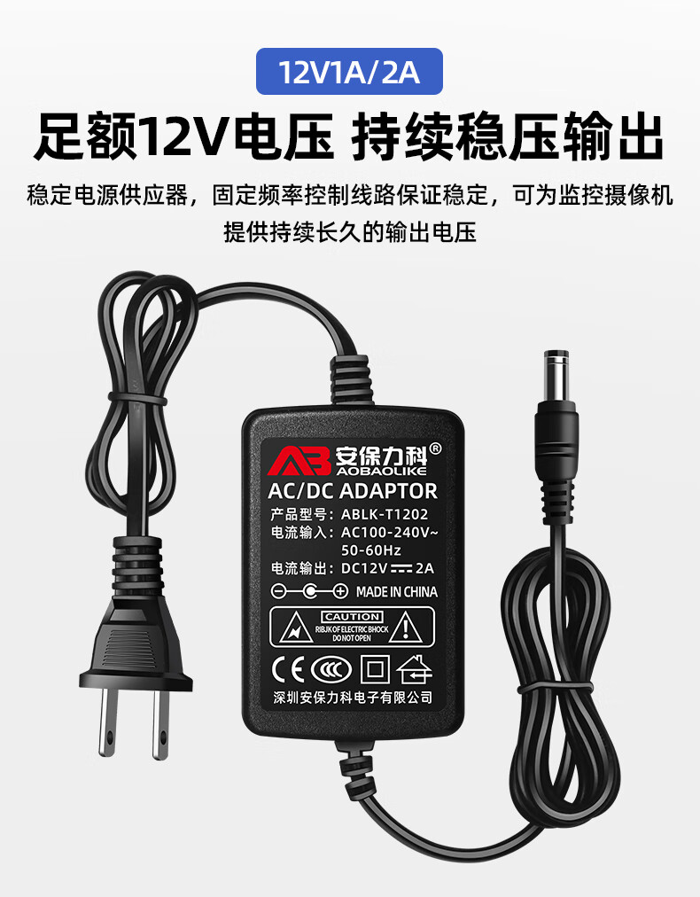 Security LeCroy surveillance camera power supply DC12V1A power adapter DC switching transformer ABLK-T1201
