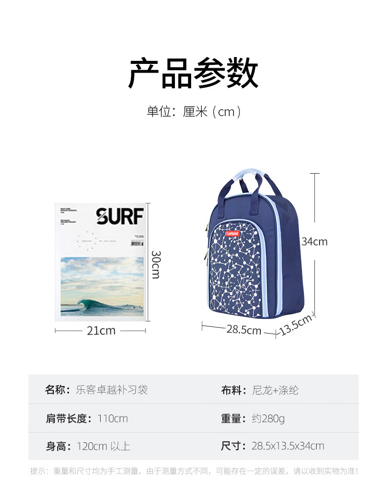 Lark Pad primary school student school bag tutoring bag portable school bag boys and girls art bag tutoring bag Duke Blue