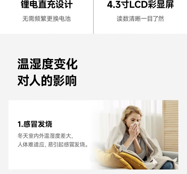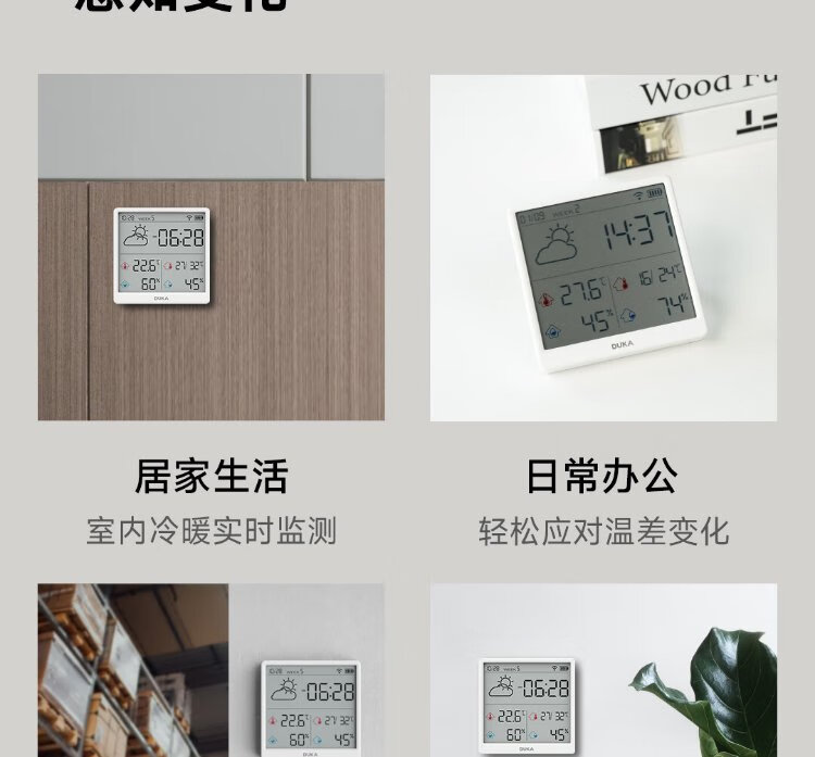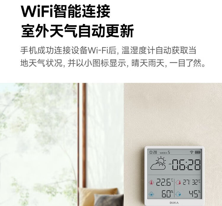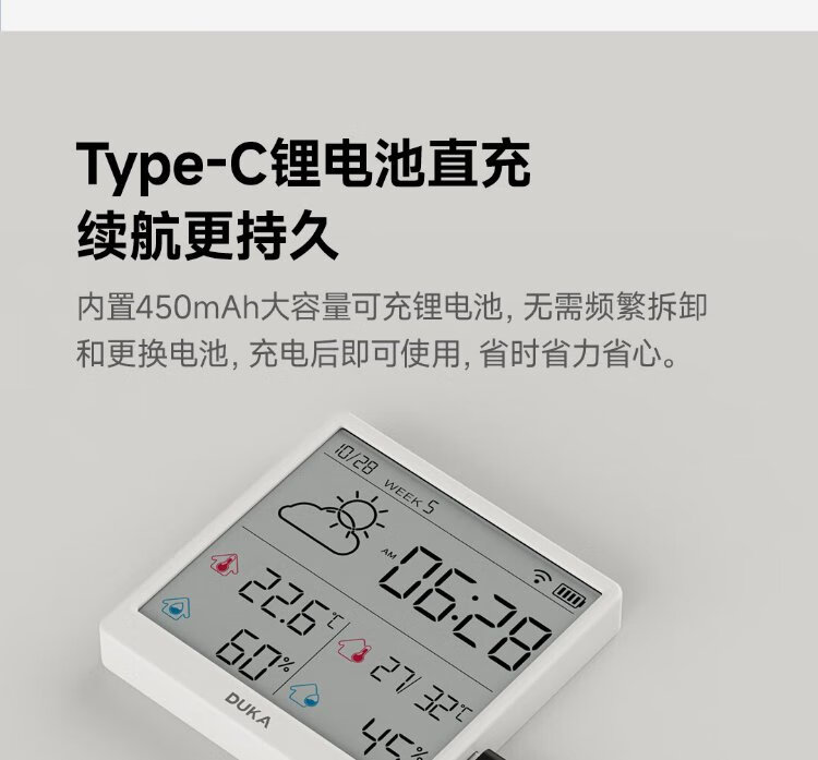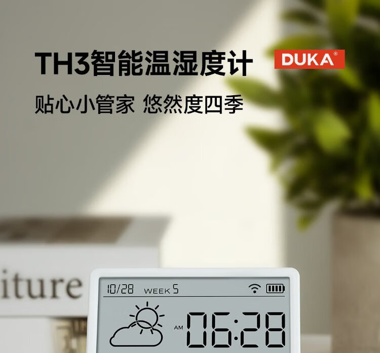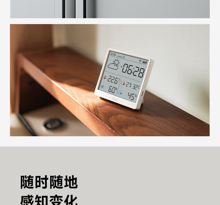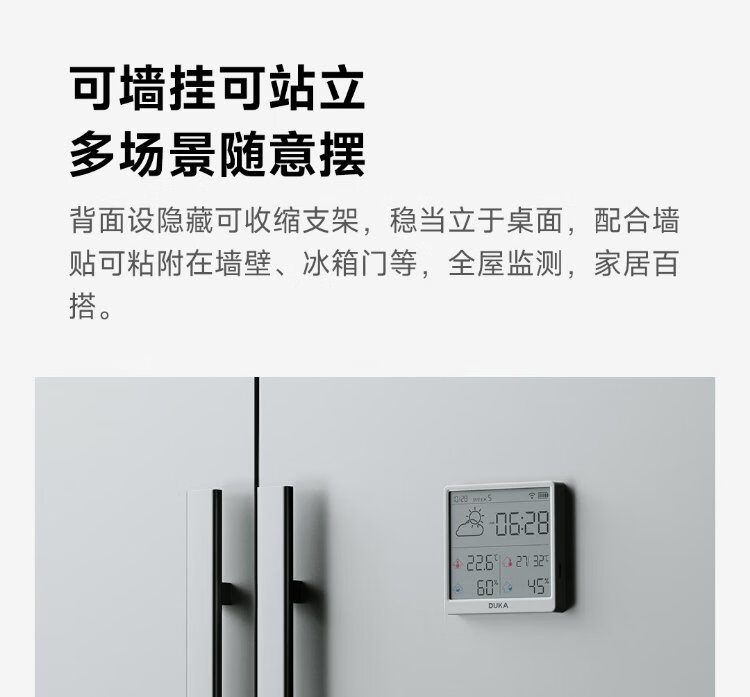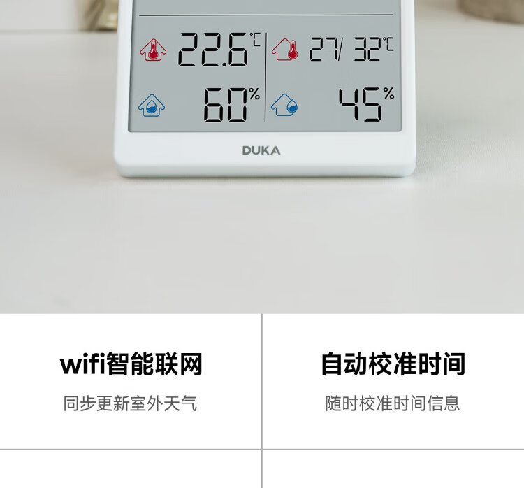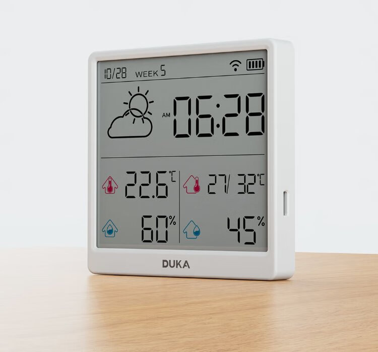 Duke thermometer and hygrometer indoor clock wifi smart home digital display electronic can be attached and stand TH3 white