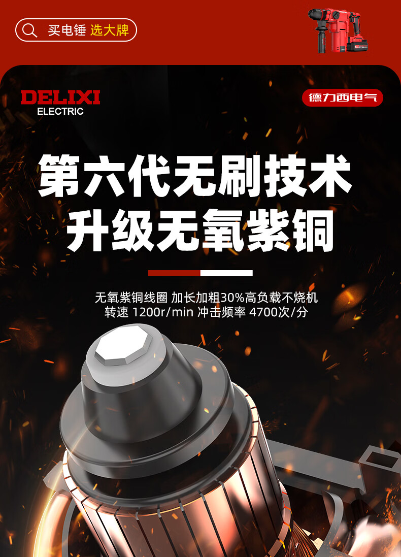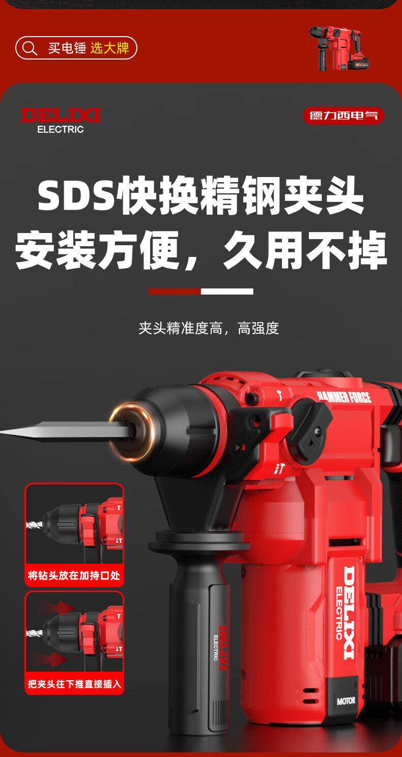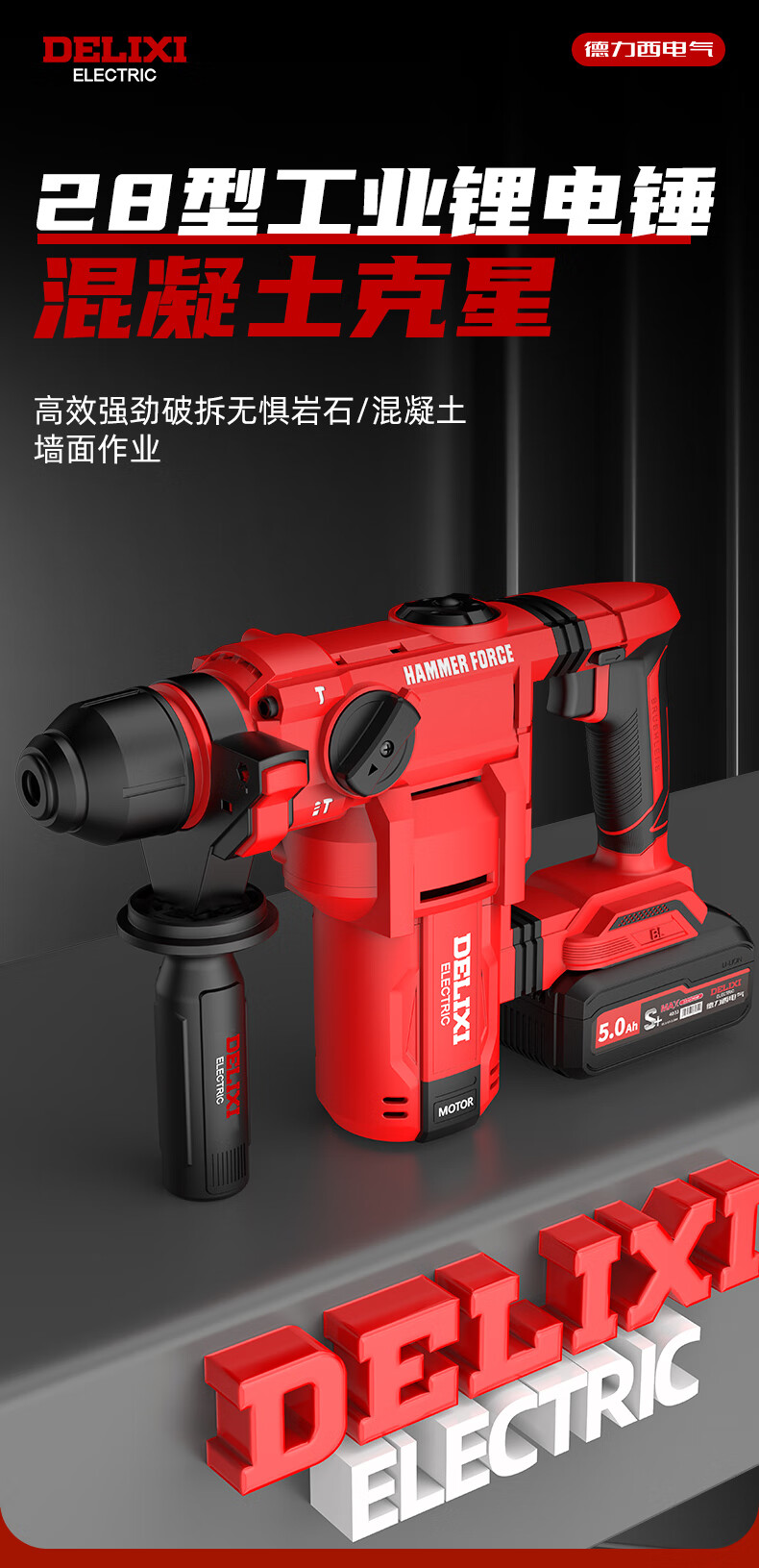 Delixi Electric Delixi lithium electric hammer rechargeable electric hammer electric pick impact drill concrete industrial grade impact drill