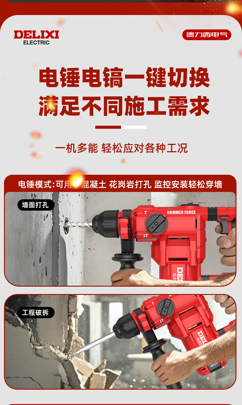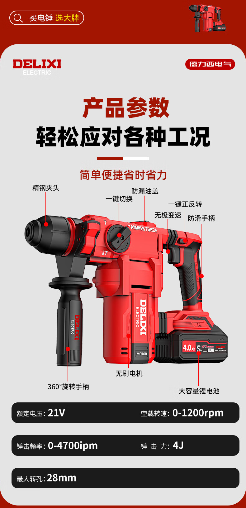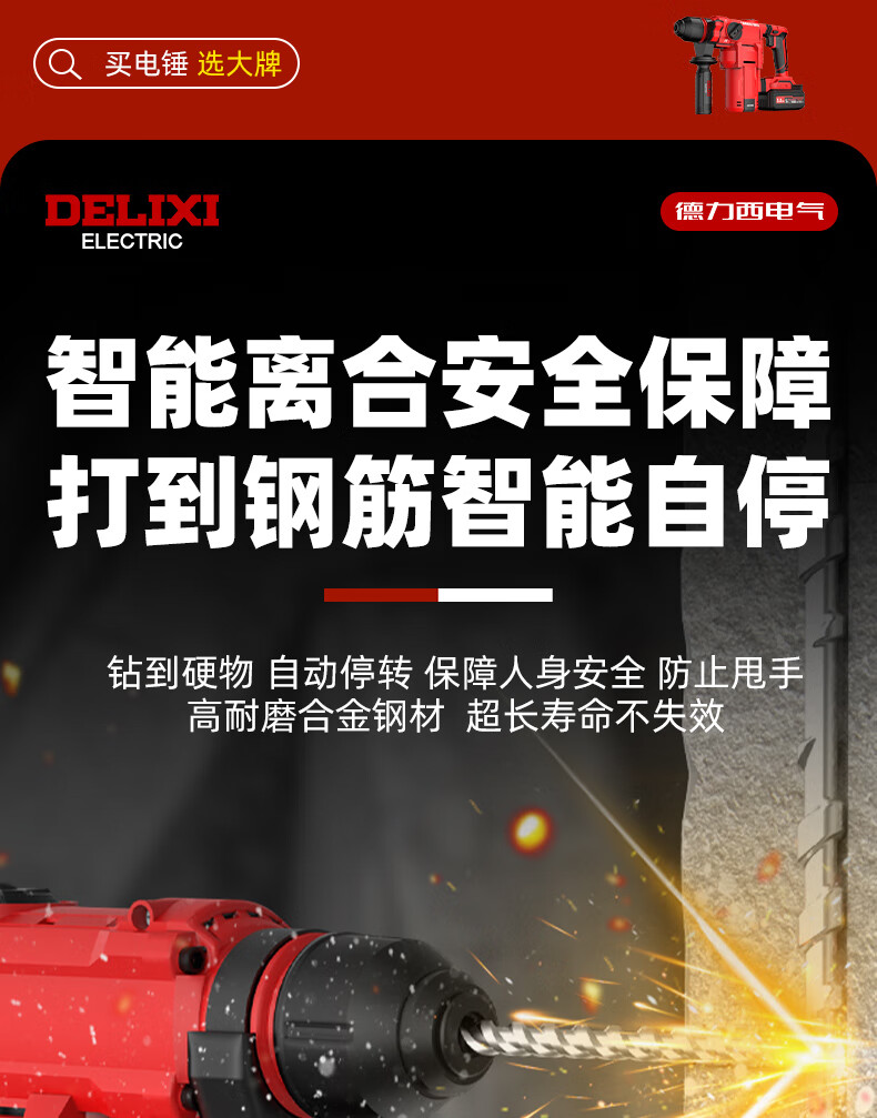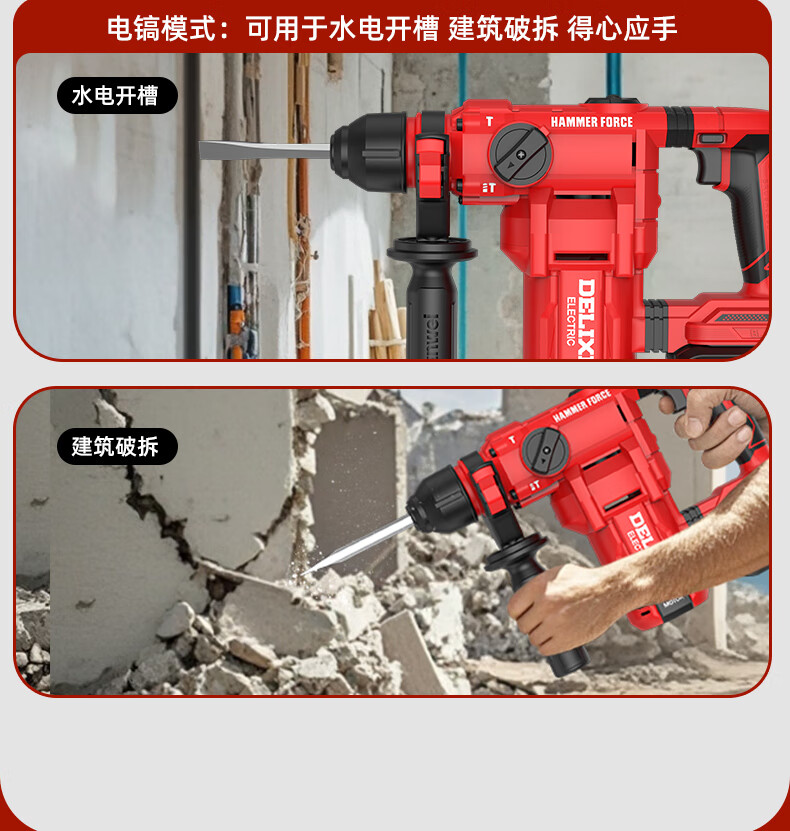 Delixi Electric Delixi lithium electric hammer rechargeable electric hammer electric pick impact drill concrete industrial grade impact drill