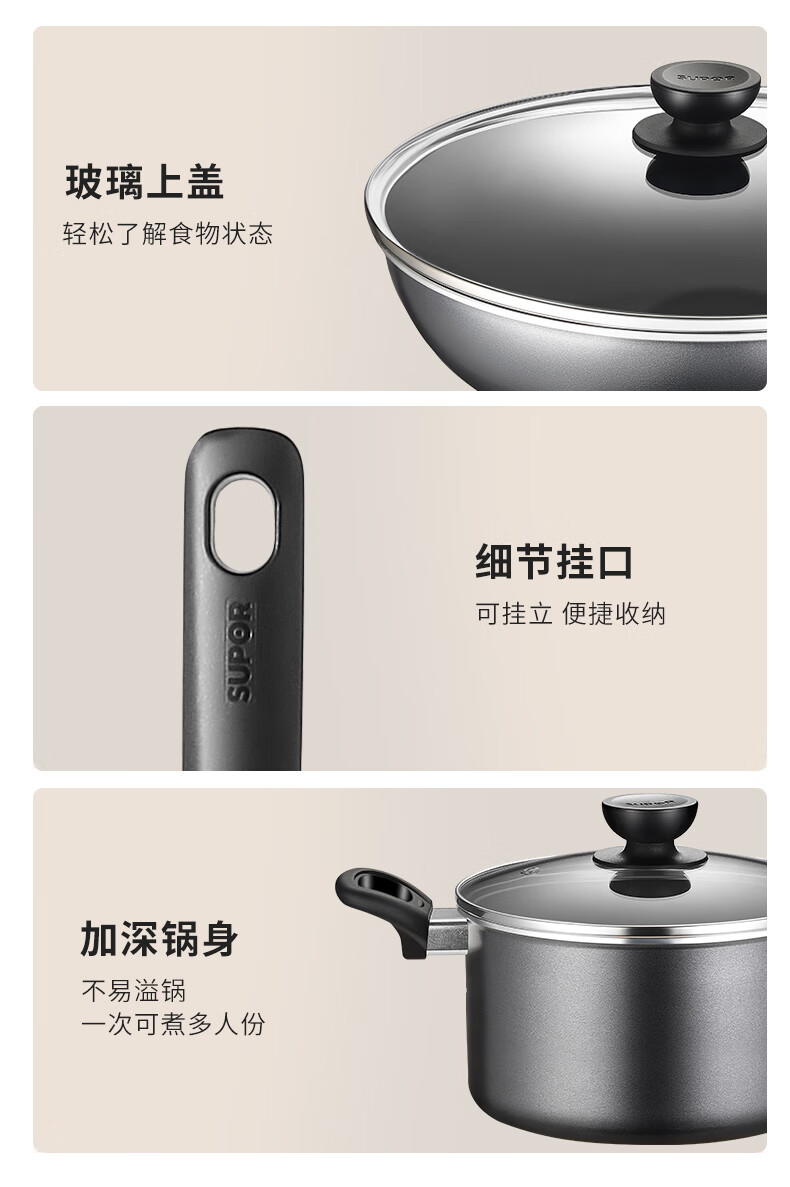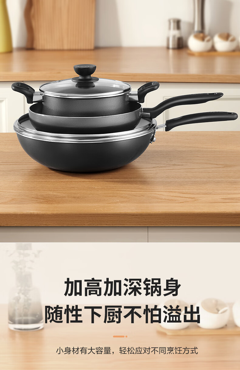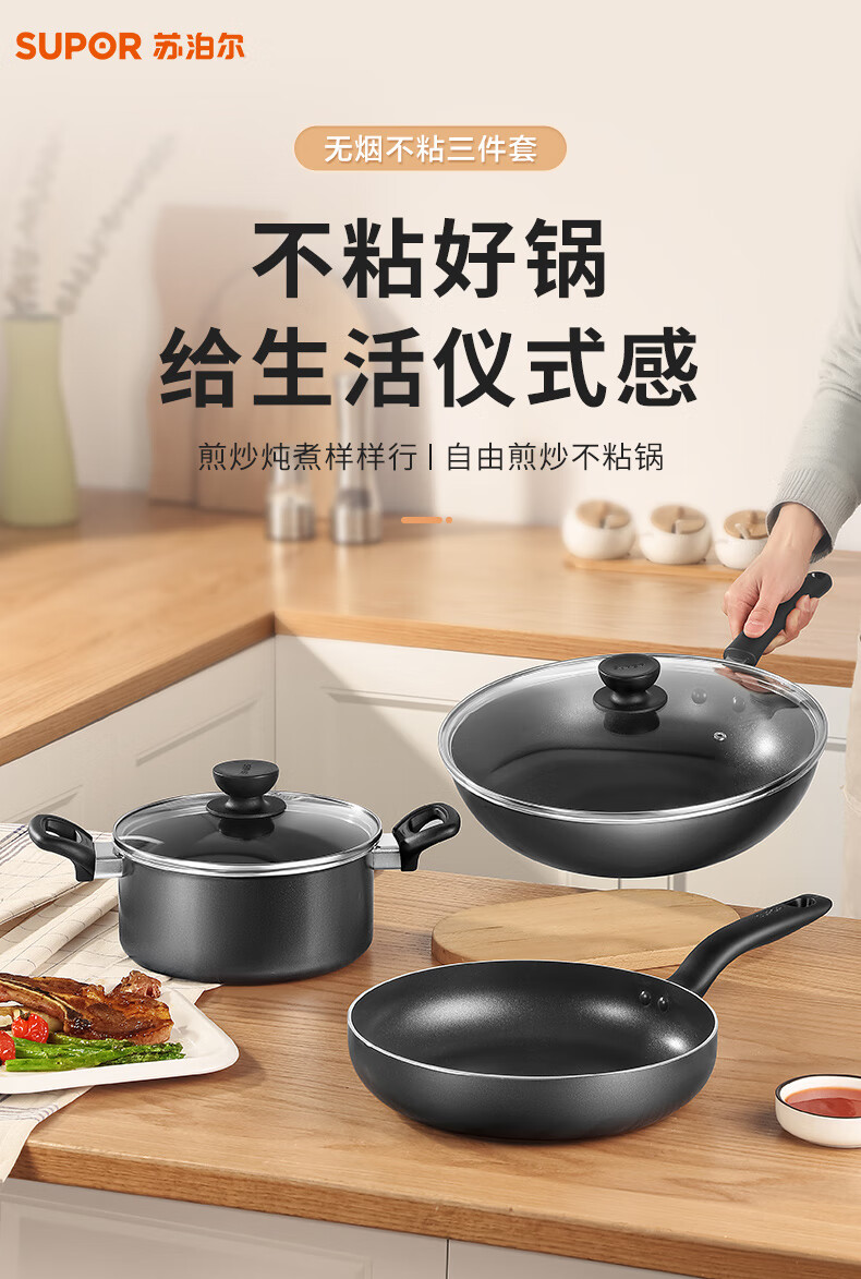 SUPOR pot set non-stick wok frying pan soup pot three-piece set induction cooker universal TP2314K