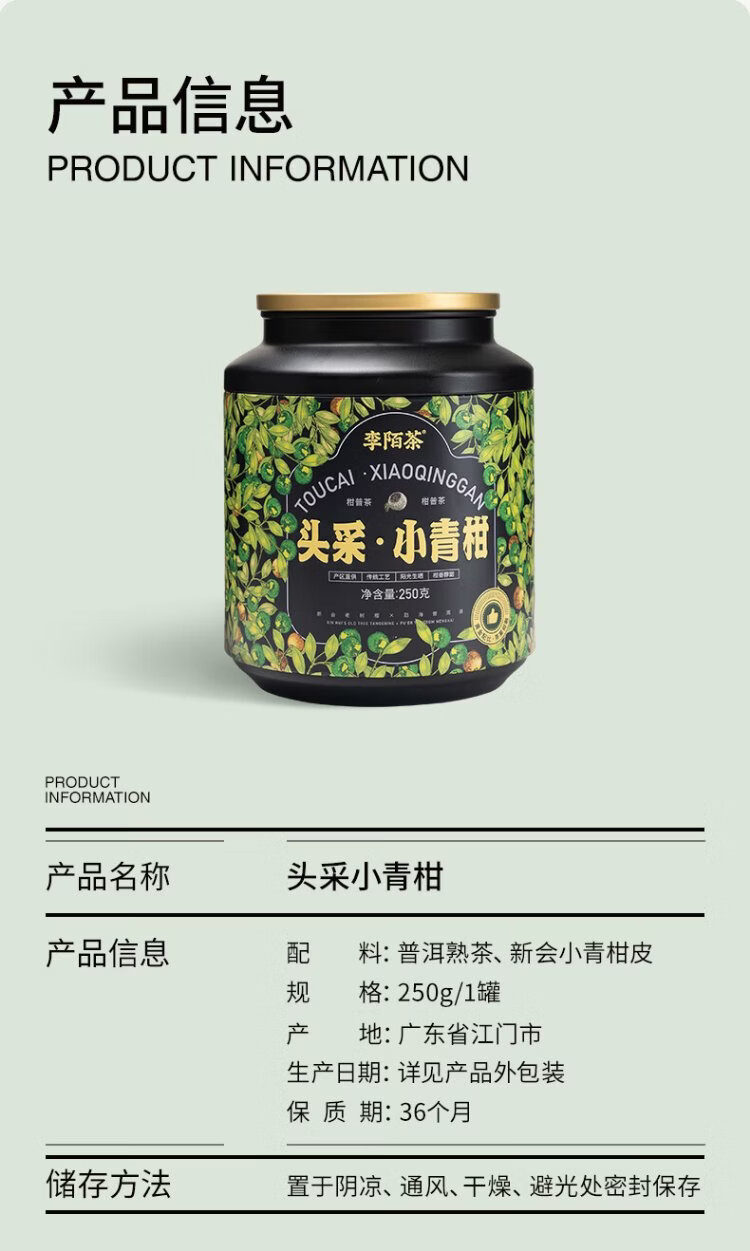 Li Mo Tea Pu'er Tea Xiaoqinggan Authentic Xinhui Xiaoqinggan 10+18 Years Picked Mandarin Pu'er Tea Gift for Yourself Drink 250g