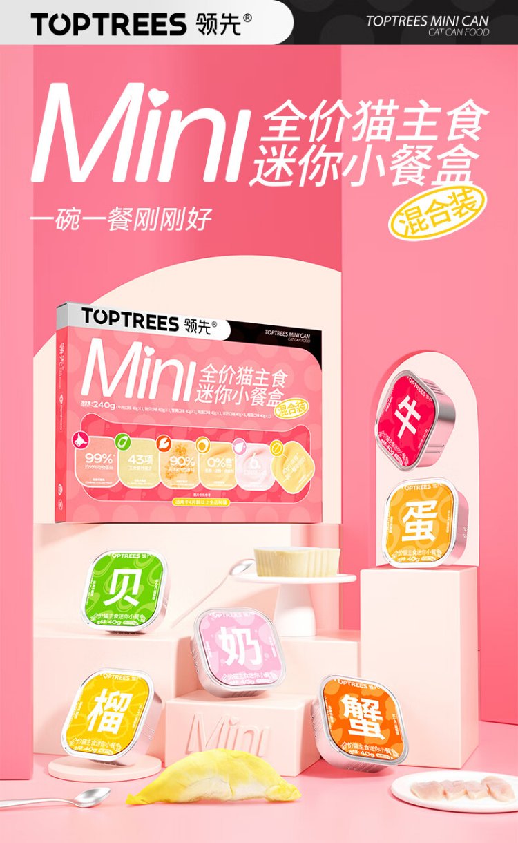 Leading full-price cat staple food meal box, cat snacks, wet food, canned cat rice 40g*6 cans (mixed flavors)