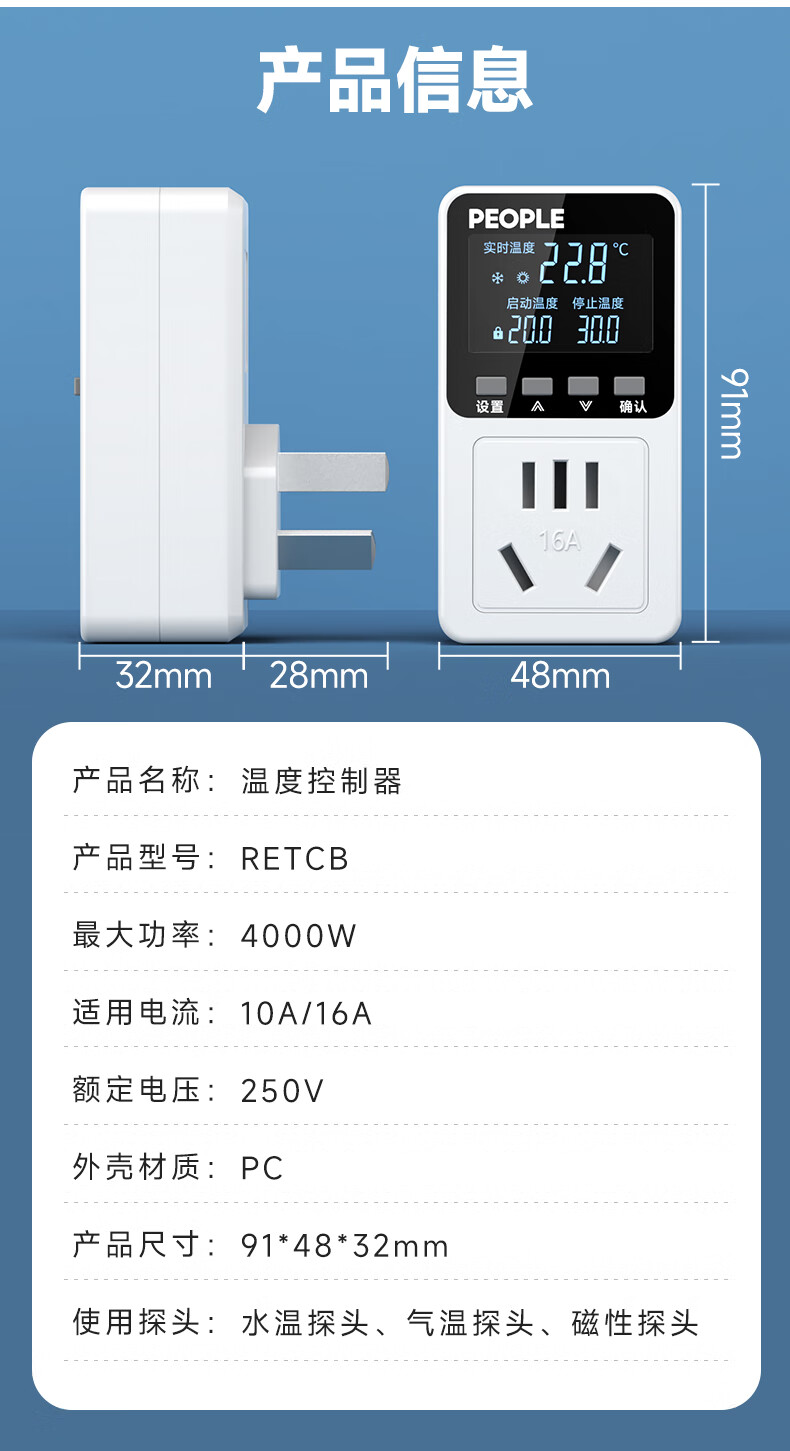 People's Thermostat Digital Display Electronic Thermostat Switch Socket Temperature Controller 10A LCD + Water Temperature Probe
