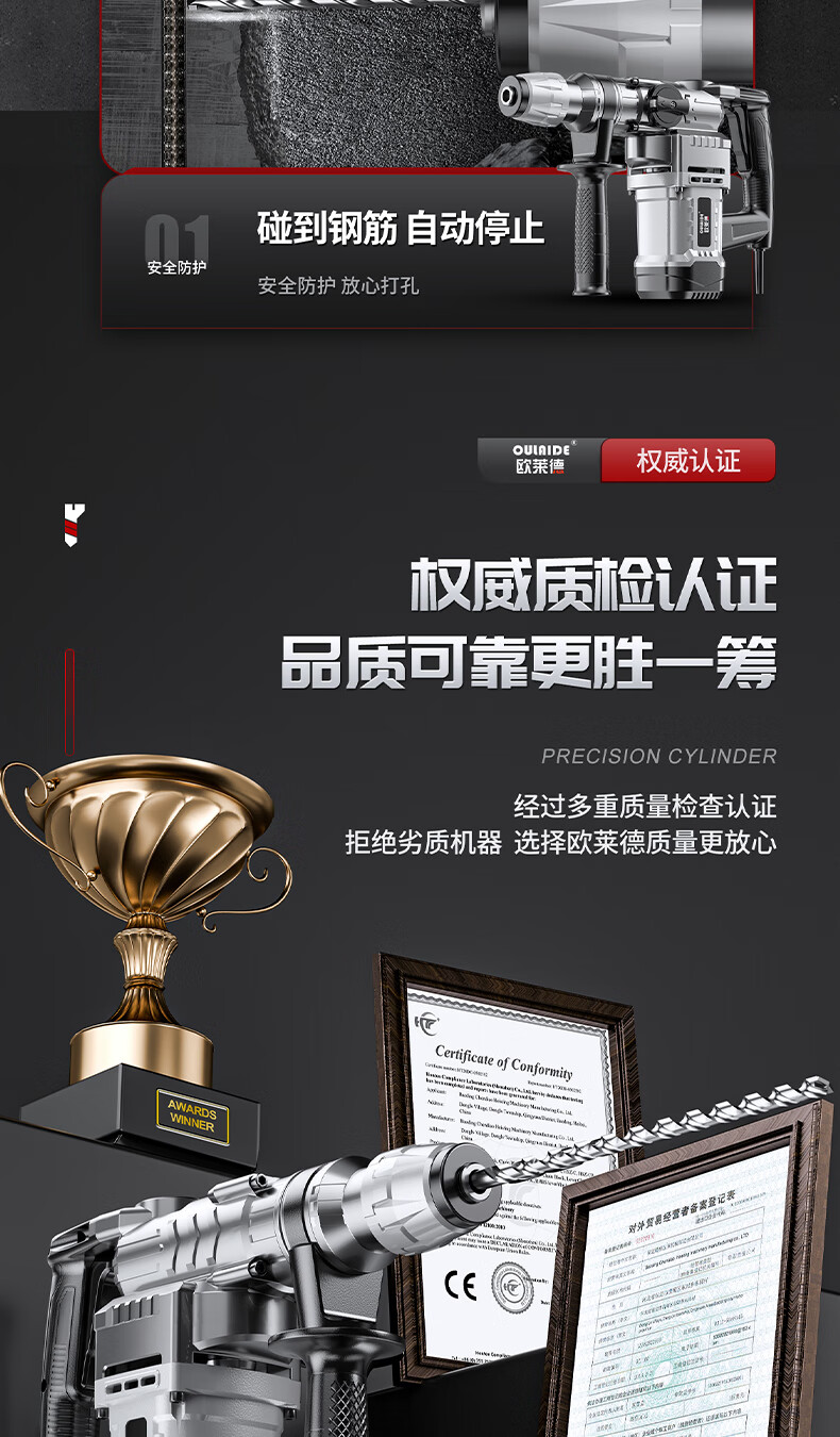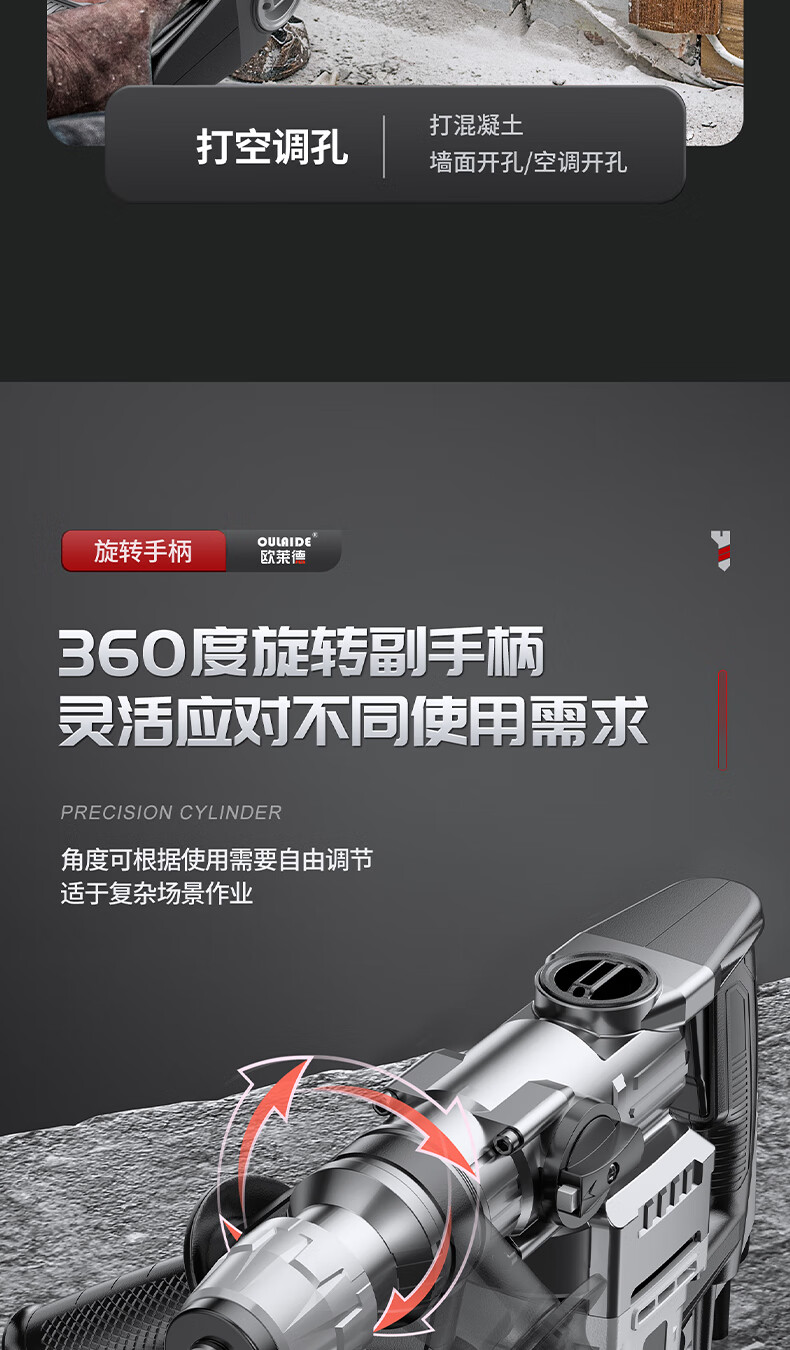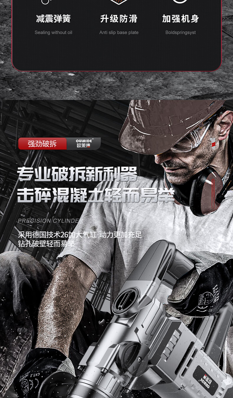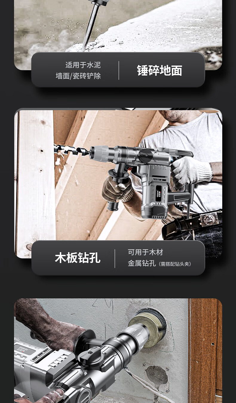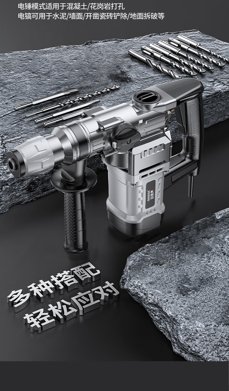 OLED Electric Hammer Impact Drill for Concrete Electric Pickaxe Drill Three-use Safety Clutch Multifunctional Concrete Electric Hammer Industrial Grade