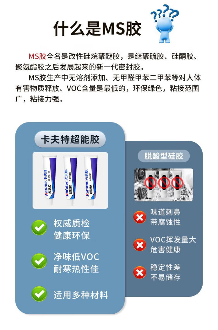 Kraft super glue MS environmentally friendly, odorless and powerful universal glue K-6001T car strip sealant metal glass bonding waterproof nail-free glue transparent 35g