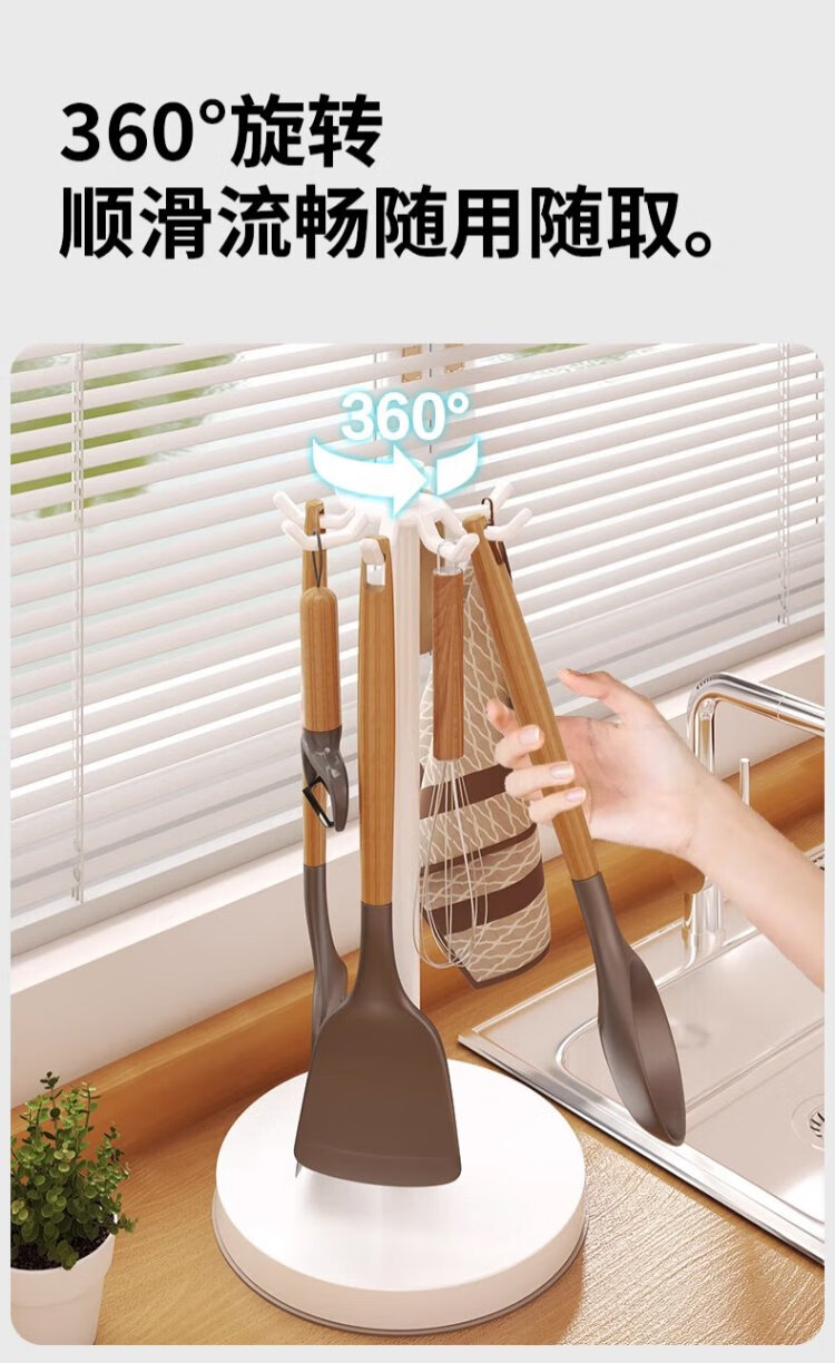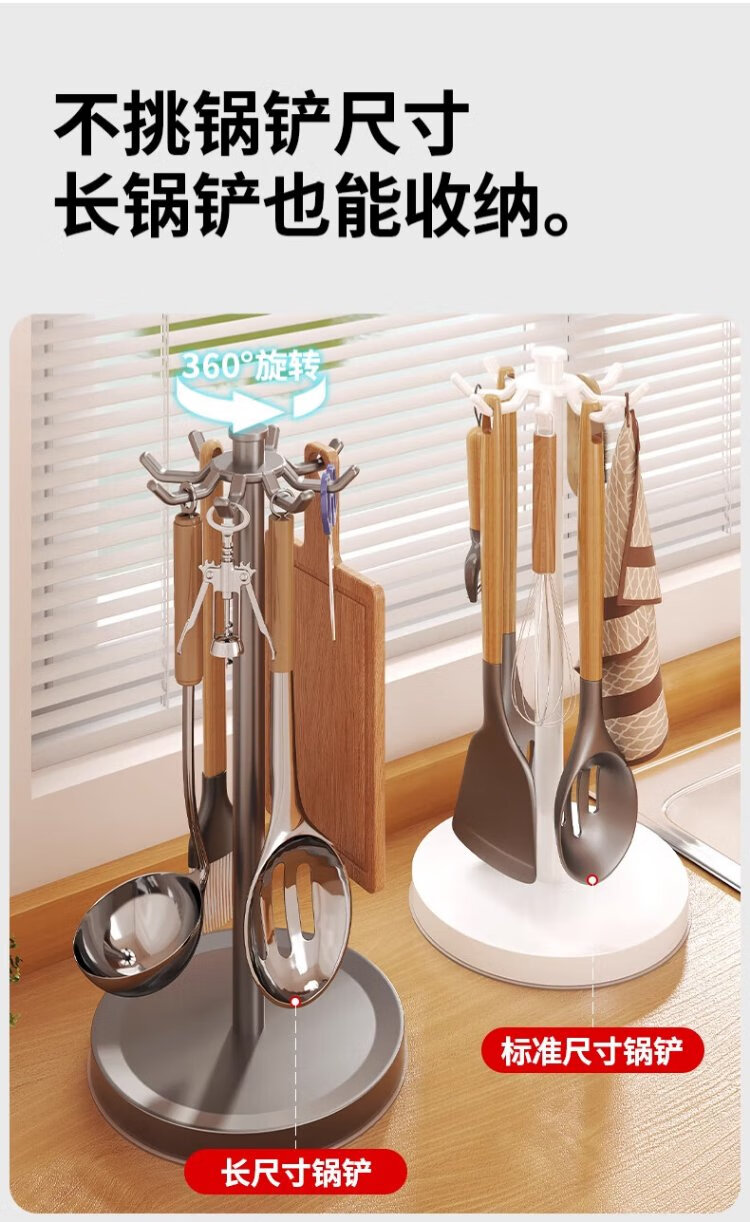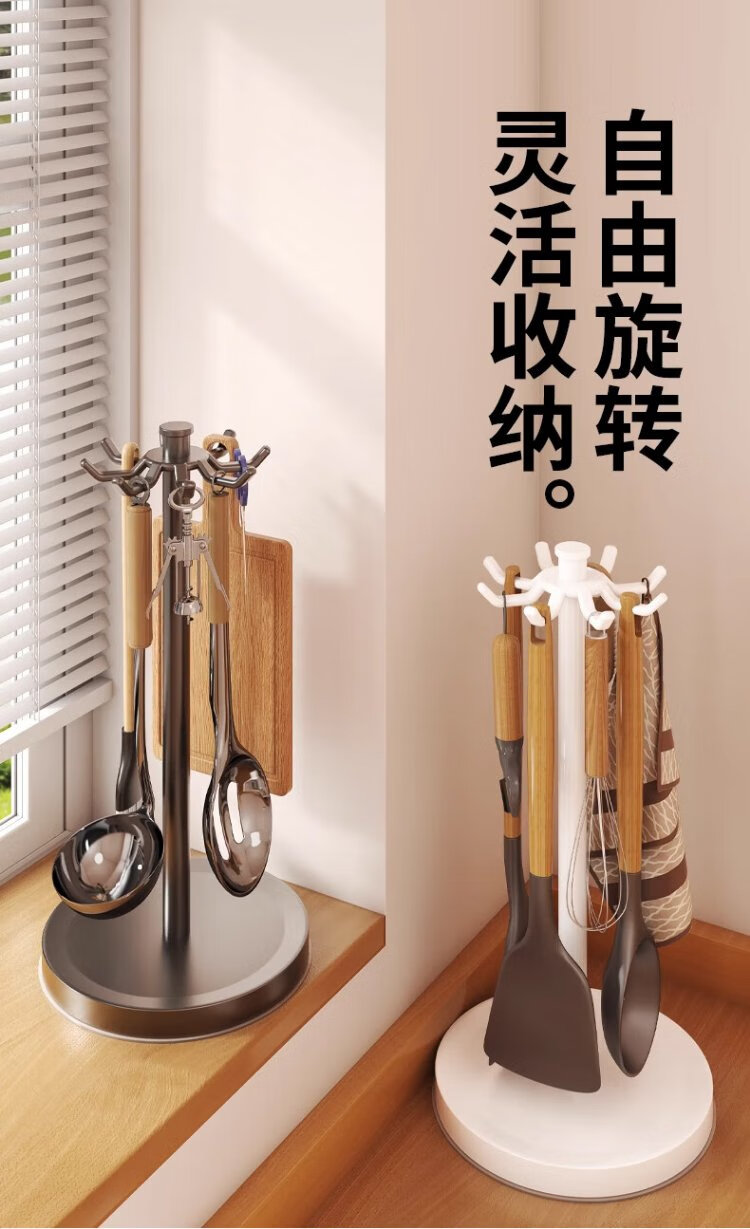 Hu Xiansen rotating spatula storage rack kitchen supplies hook rack household multi-functional countertop kitchen utensils spoon storage rack