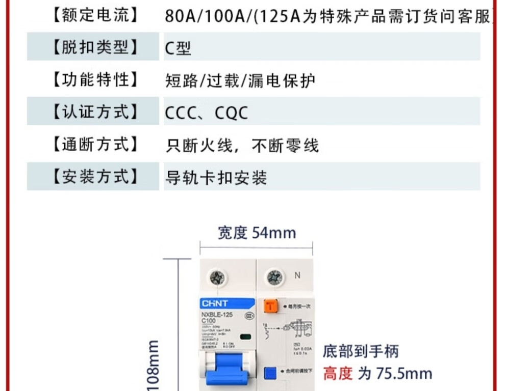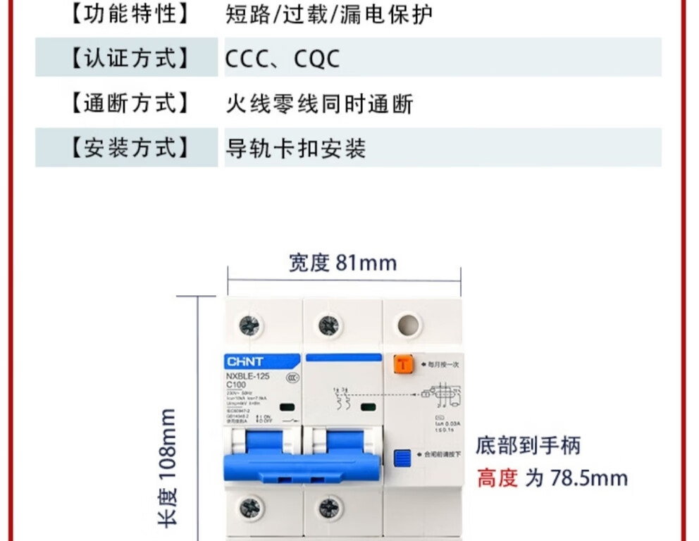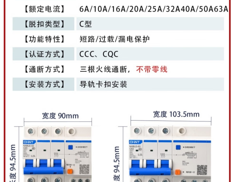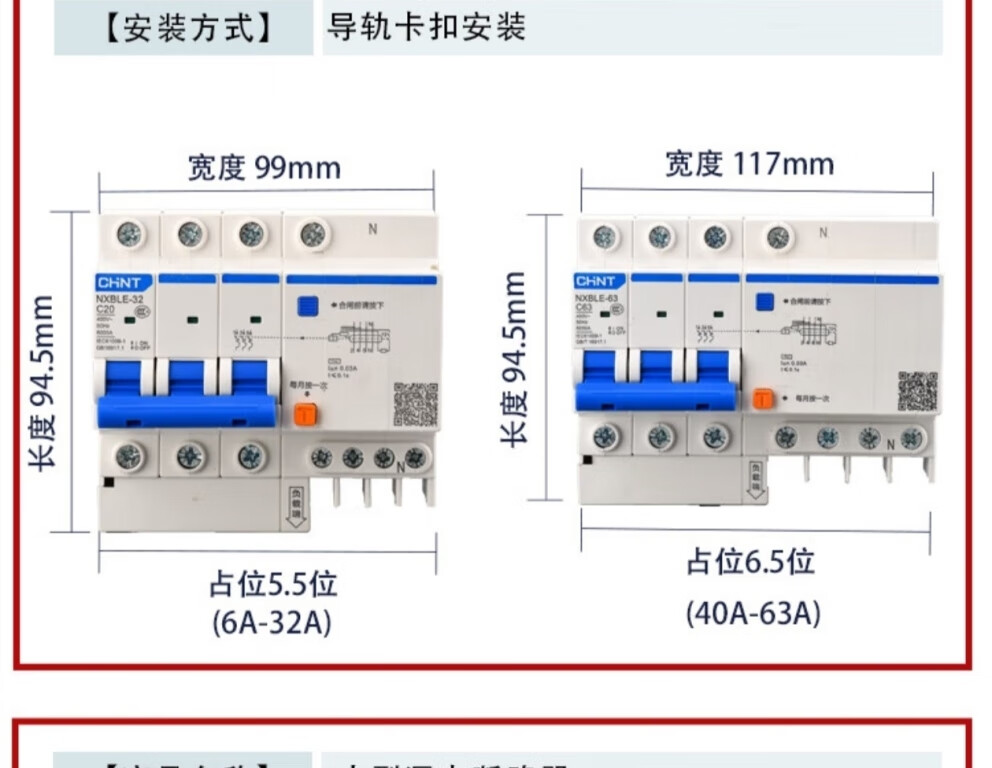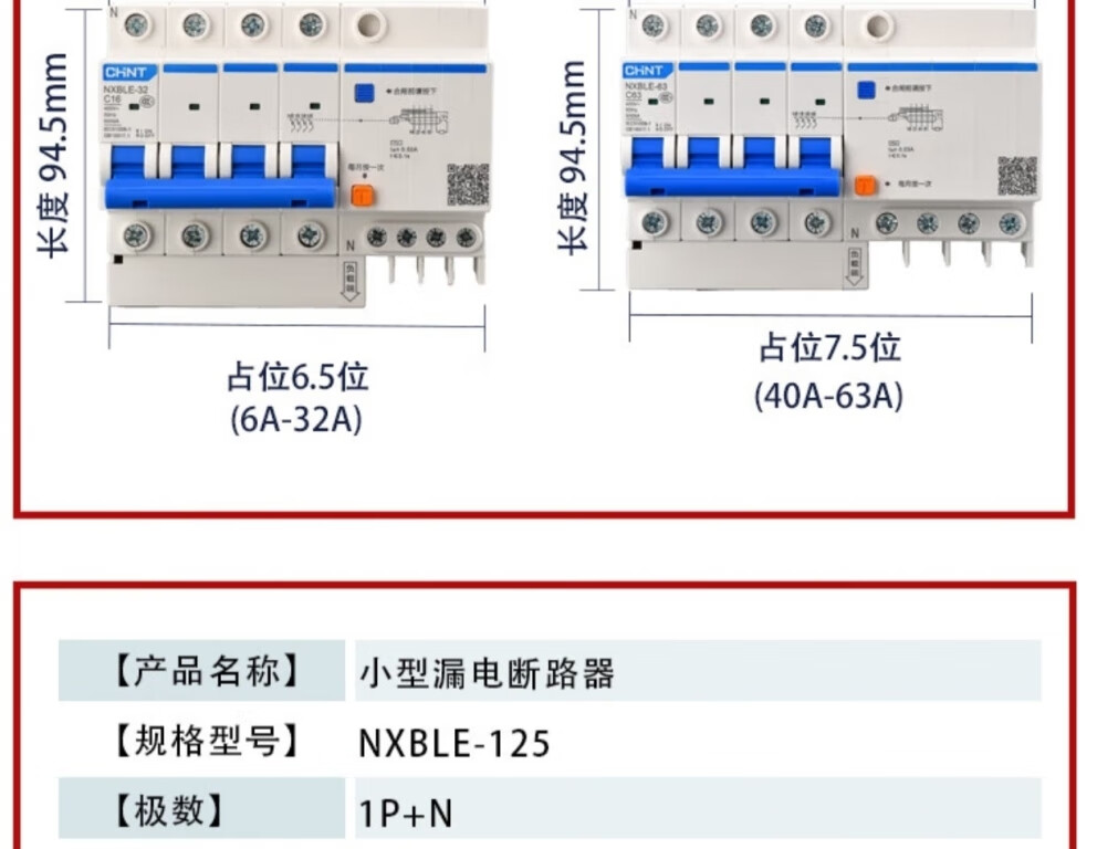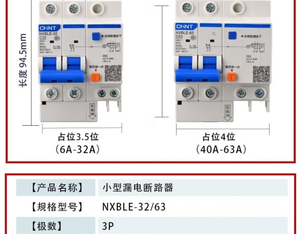 Chint (CHNT) small leakage protection circuit breaker NXBLE-32-4P-C32-30MA leakage protection air switch 4P 32A