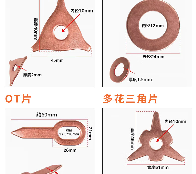 Deqi sheet metal plastic repair machine round gasket, triangular disc, OT sheet, multi-functional gasket, spot welding copper-plated repair gasket, OT sheet (100 pieces/pack) Jingcang