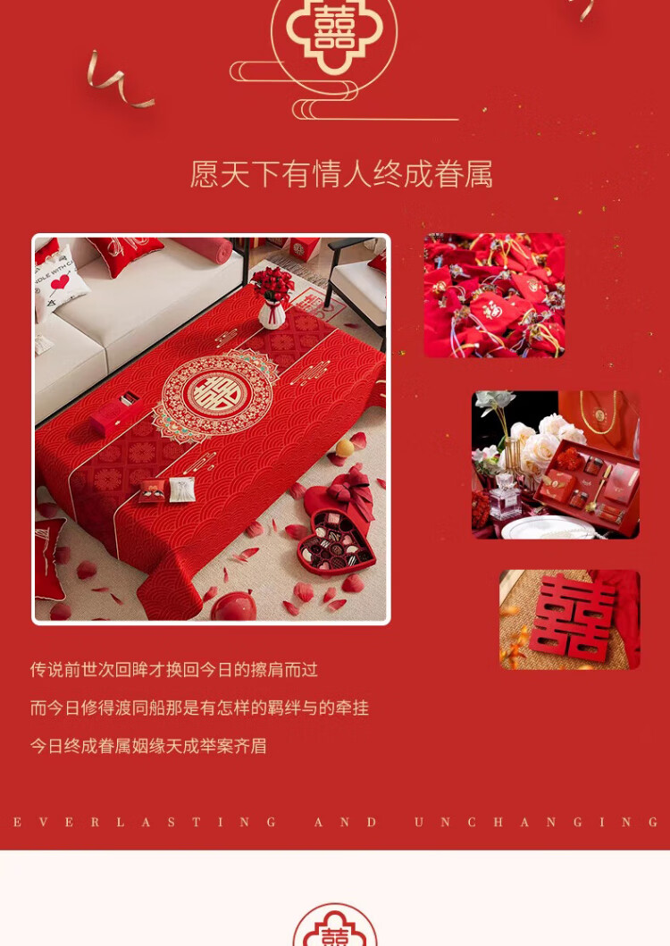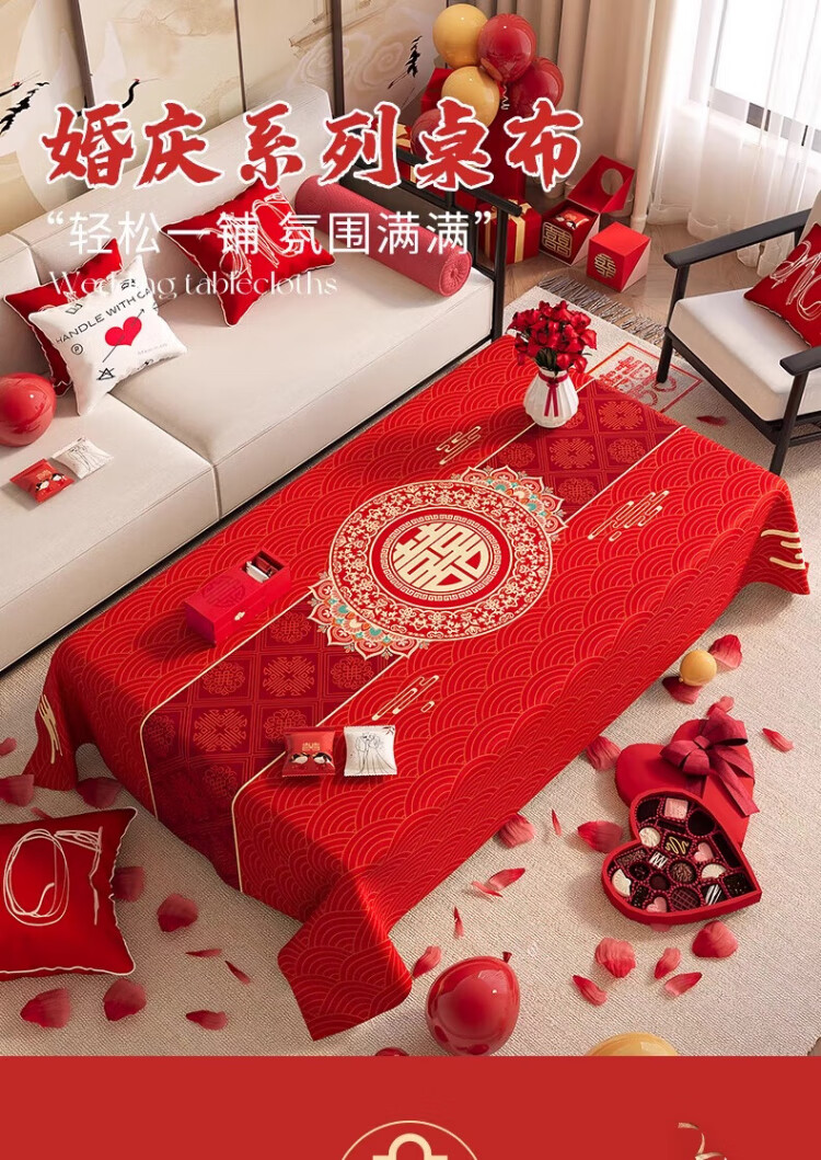 Jingxun tablecloth wedding red festive word engagement newlywed tablecloth wedding tea table cloth wedding room red cloth 1.4*1.8m
