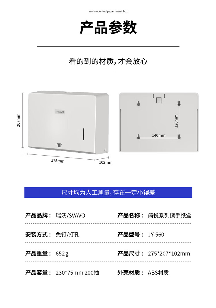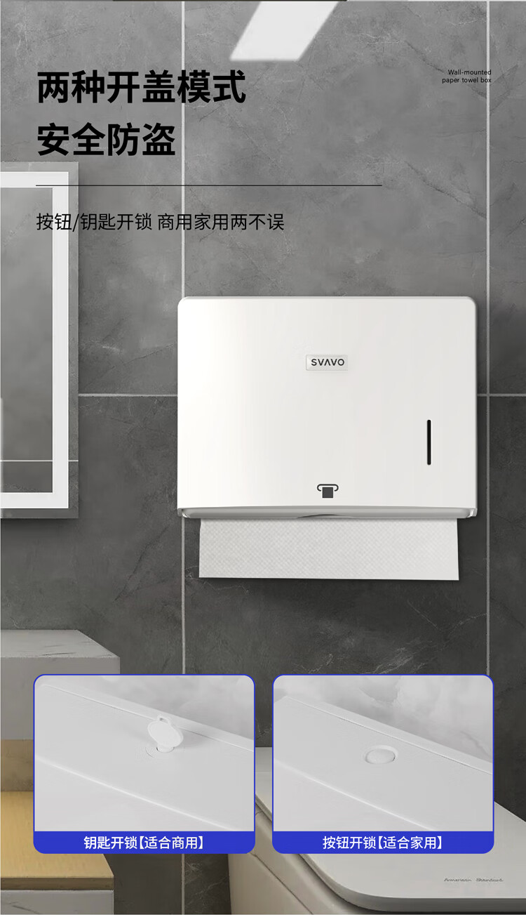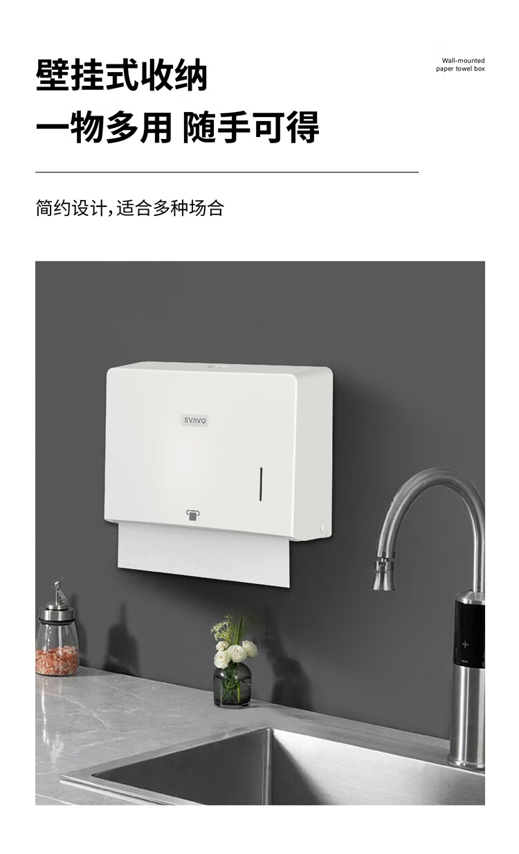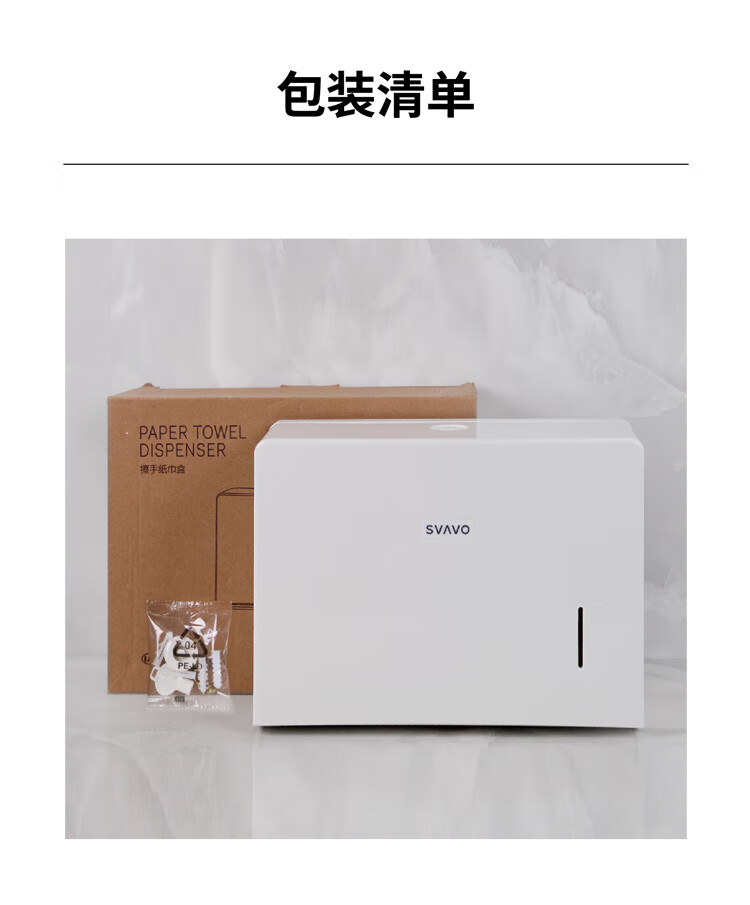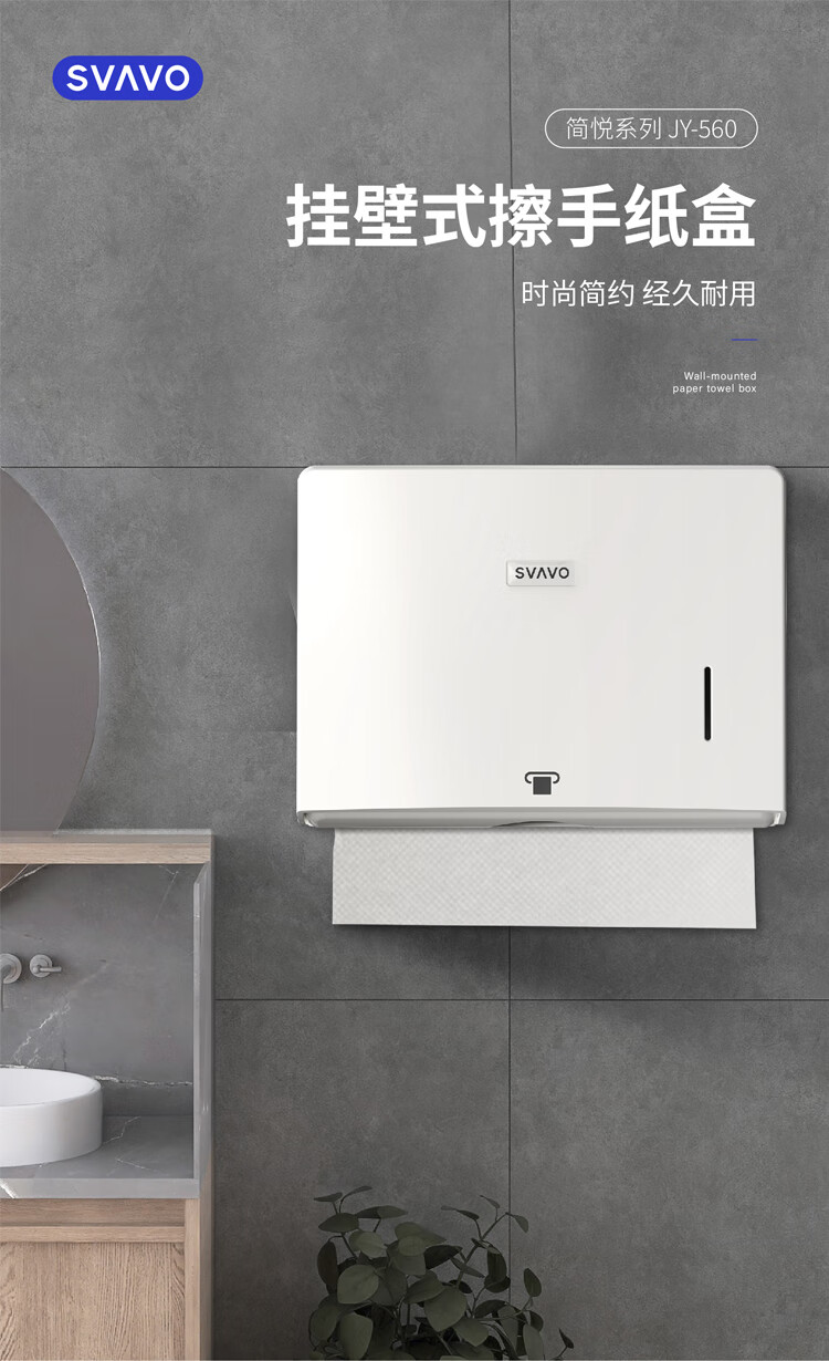 SVAVO hand towel box wall-mounted punch-free hand tissue box bathroom paper box JY-560 white